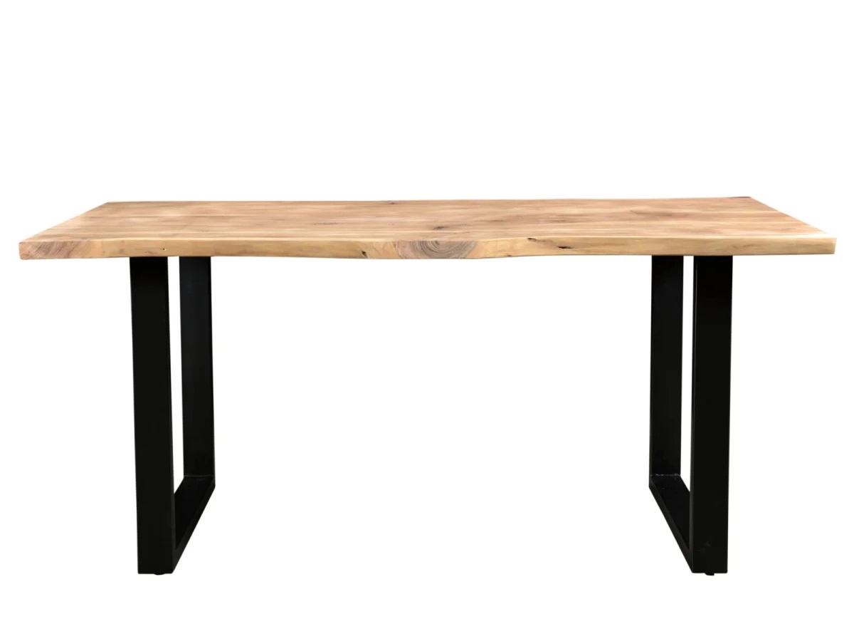 Zažijte kouzlo přírodních materiálů ve vaší jídelně s masivní jídelní sestavou Bullwer, která je doplněna o čtyři stylové židle Kenton. Tento set je výjimečný svou kombinací robustní akáciové dřeviny a elegantních černých kovových prvků, které společně vytvářejí harmonický a moderní designový celek. Povrch stolu i židlí je ošetřen kvalitním lakem, což zajišťuje dlouhou životnost a snadnou údržbu. Hnědá barva dřeva působí teple a přirozeně, a přitom vynikající ve své jednoduchosti.