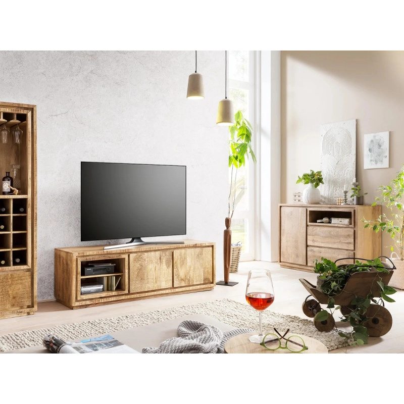 Tato skříň není jen nábytkem, ale také stylovým prvkem, který zútulní váš prostor a dodá mu charakter. S rozměry, které se přizpůsobí různým velikostem pokojů, se stane dominantou vašeho obývacího pokoje, zatímco její funkčnost oceníte při každodenním používání. Uložte si do ní vše, co potřebujete mít po ruce, a zároveň si užívejte pohled na nádherný přírodní materiál, který se v průběhu let bude stávat ještě krásnějším. Nechte se unést kouzlem mangového dřeva a vyberte si skříň Blackdale pro váš domov ještě dnes. Objevte harmonii mezi estetikou a praktičností, která vám zpříjemní každodenní život.