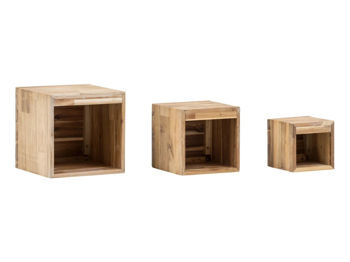 Objevte kouzlo rustikální elegance s naší sadou tří nástěnných polic Jolo, vyrobených z kvalitní lakované akácie v teplém hnědém odstínu. Tyto kubické police o rozměrech 25 cm × 25 cm × 25 cm přidají vašemu obývacímu pokoji šmrnc i praktičnost.