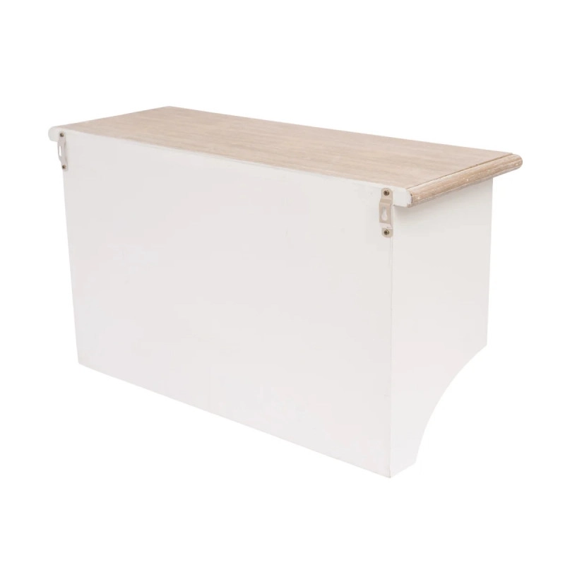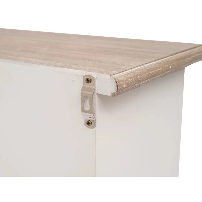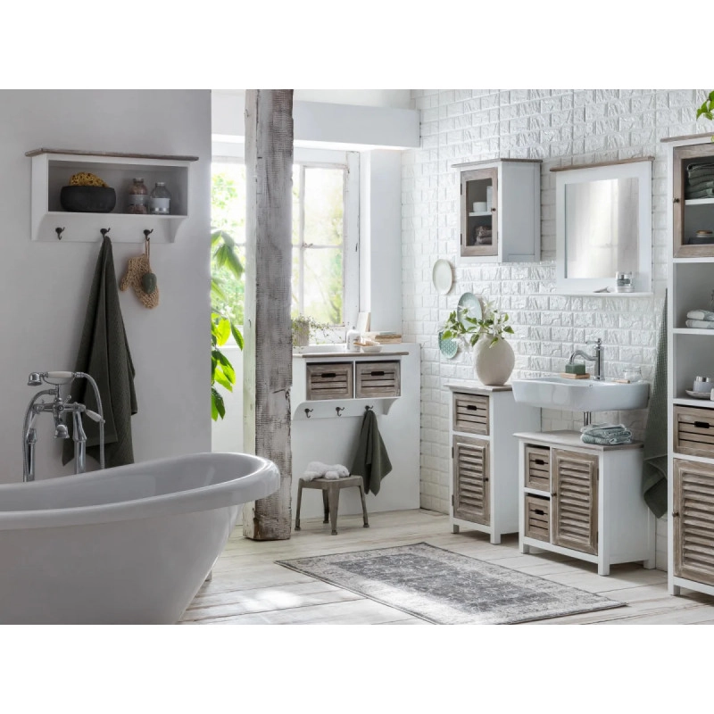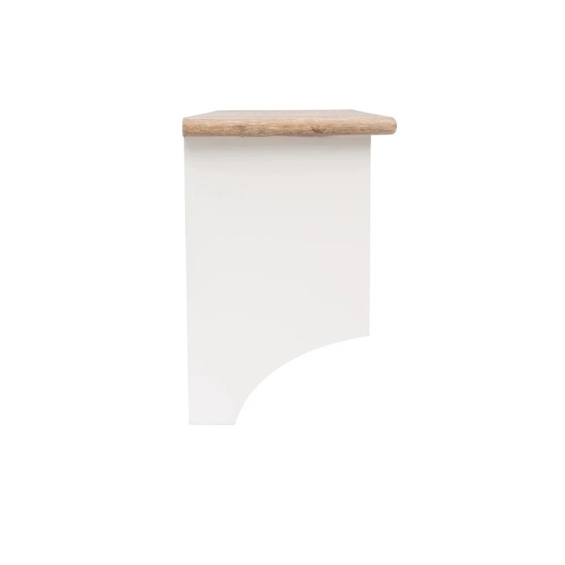 Její rozměry 63×24×36 cm dávají dostatek prostoru pro kreativní aranžmá, ať už ji využijete jako místo pro oblíbené dekorace, květiny nebo důležité drobnosti, které chcete mít stále na očích. Tvar police je navržen tak, aby se stal nenápadným, ale přesto výrazným prvkem, který přispívá k harmonii interiéru. Masivní konstrukce z paulovnie zaručuje dlouhou životnost a stabilitu, zatímco MDF zajišťuje příjemný vzhled a hladký povrch. Bílé provedení dodává místnosti svěžest a díky své univerzálnosti snadno doplní různé barevné kombinace a styly nábytku.