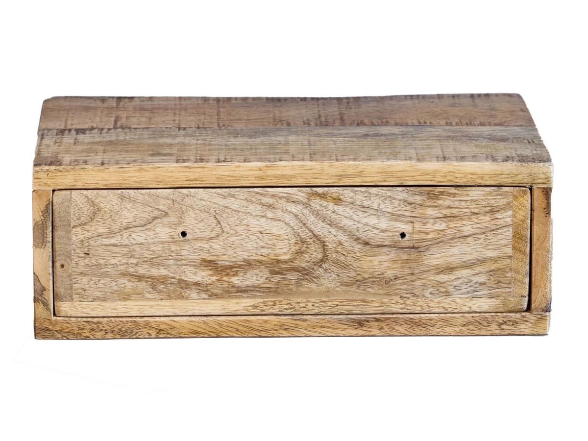 Přidejte teplý a přirozený prvek do svého obývacího pokoje s nástěnnou policí Mango, která kombinuje robustní masivní dřevo s elegantním lakovaným hnědým povrchem. Tato praktická police s přihrádkou nabízí ideální prostor pro vaše knihy, dekorace či drobnosti, a to vše v kompaktních rozměrech 35 cm×22 cm×11 cm.