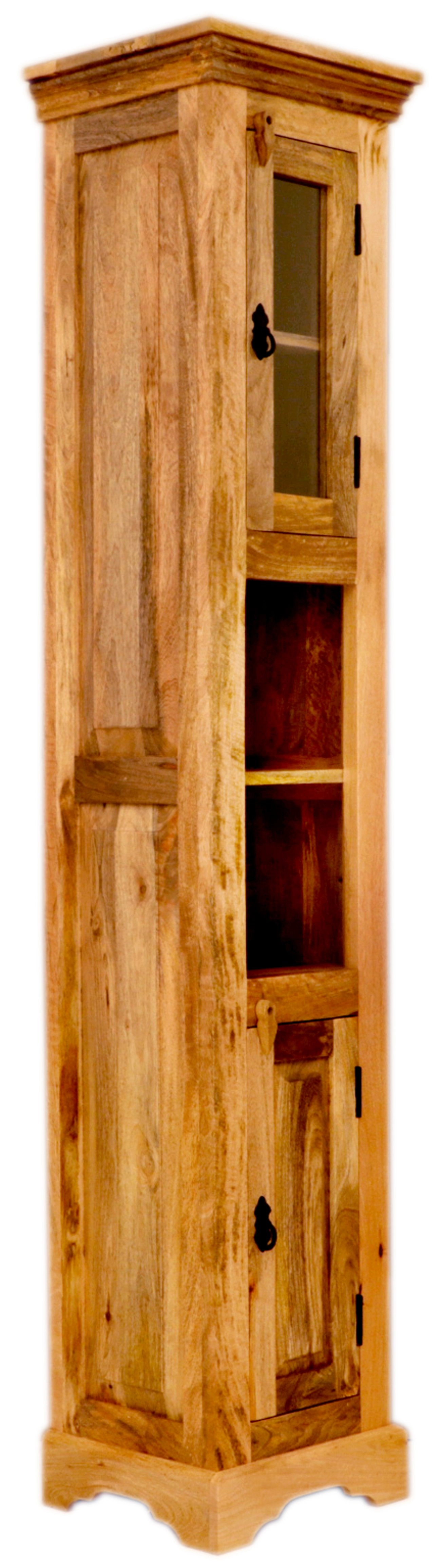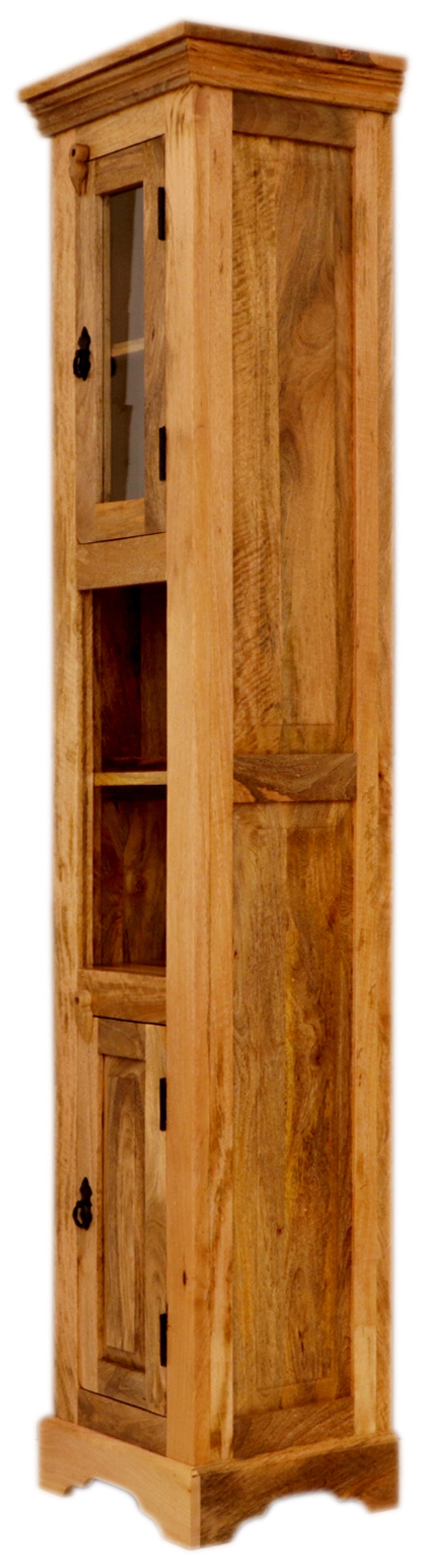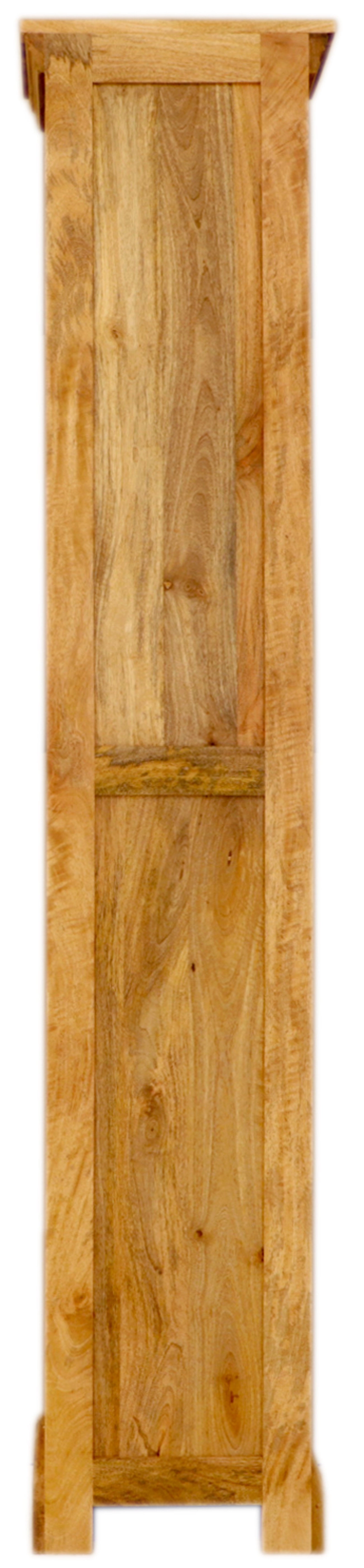 Dřevěná skříňka do koupelny z masivu mango o rozměrech 40x190x35 cm z kolekce GURU je dokonalým spojením funkčnosti a estetického designu. Tato skříňka vás zaujme svou precizní řemeslnou výrobou z kvalitního indického manga, které je nejen trvanlivé, ale také přidává vašemu interiéru přírodní a exotický vzhled. Skříňka nabízí kombinaci praktičnosti a elegance díky dvěma prostorným zásuvkám a dvířkům s úložným prostorem, které zajišťují dostatek místa pro všechny vaše koupelnové potřeby.