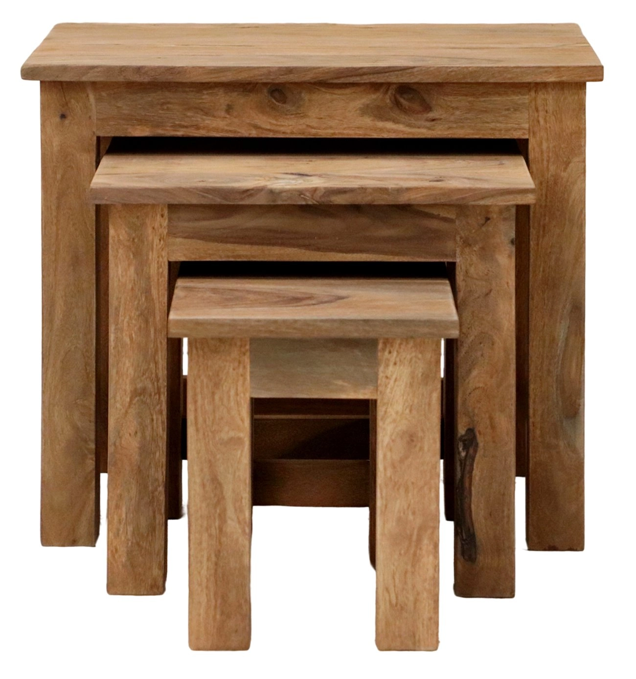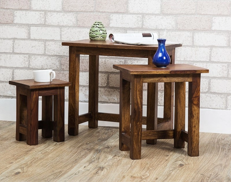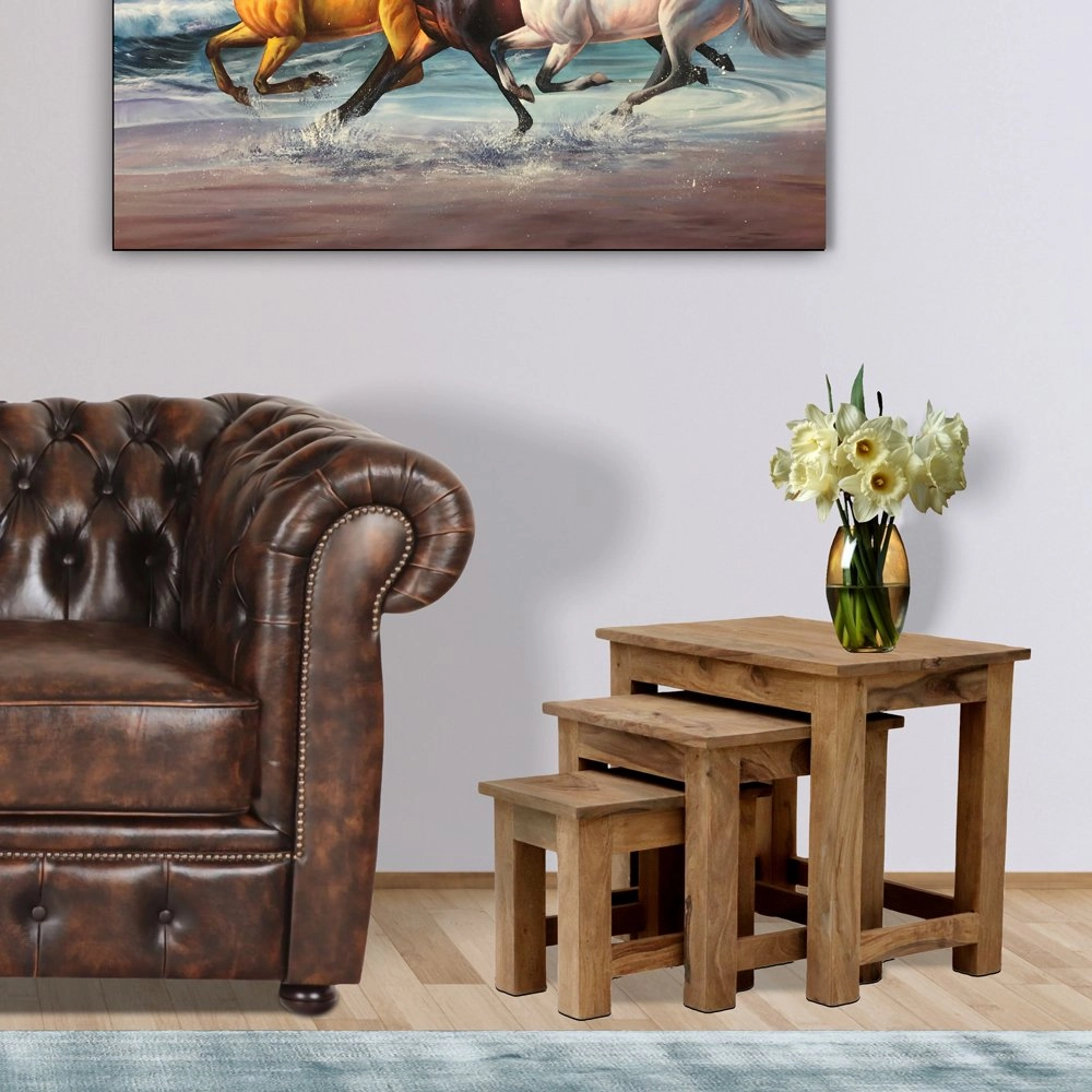 Odkládací stolky z masivu, sada 3 ks jsou vyrobeny z kvalitního masivního palisandrového dřeva. Odkládací stolky z masivu které máme skladem se dají prohlédnout osobně nebo objednat na zakázku v kterémkoliv z našich nabízených odstínů! Indický koloniální nábytek palisandr masiv.