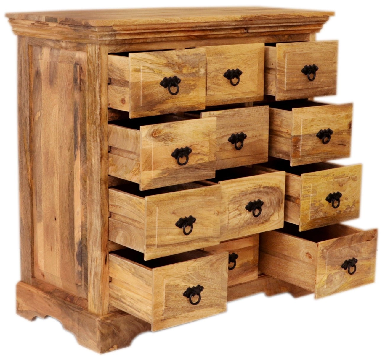 Komoda nabízí dostatek úložného prostoru díky dvanácti zásuvkám, které jsou ideální pro uložení nejrůznějších věcí. Ať už potřebujete schovat klíče, drobné doplňky nebo jiné předměty, tato komoda z masivu vám poskytne vše potřebné. Díky svému elegantnímu designu a kvalitnímu zpracování je ideální volbou pro ty, kteří ocení tvrdý, ale krásný nábytek z masivu.