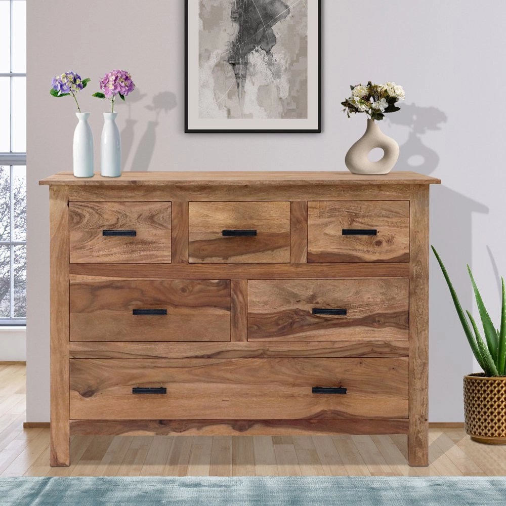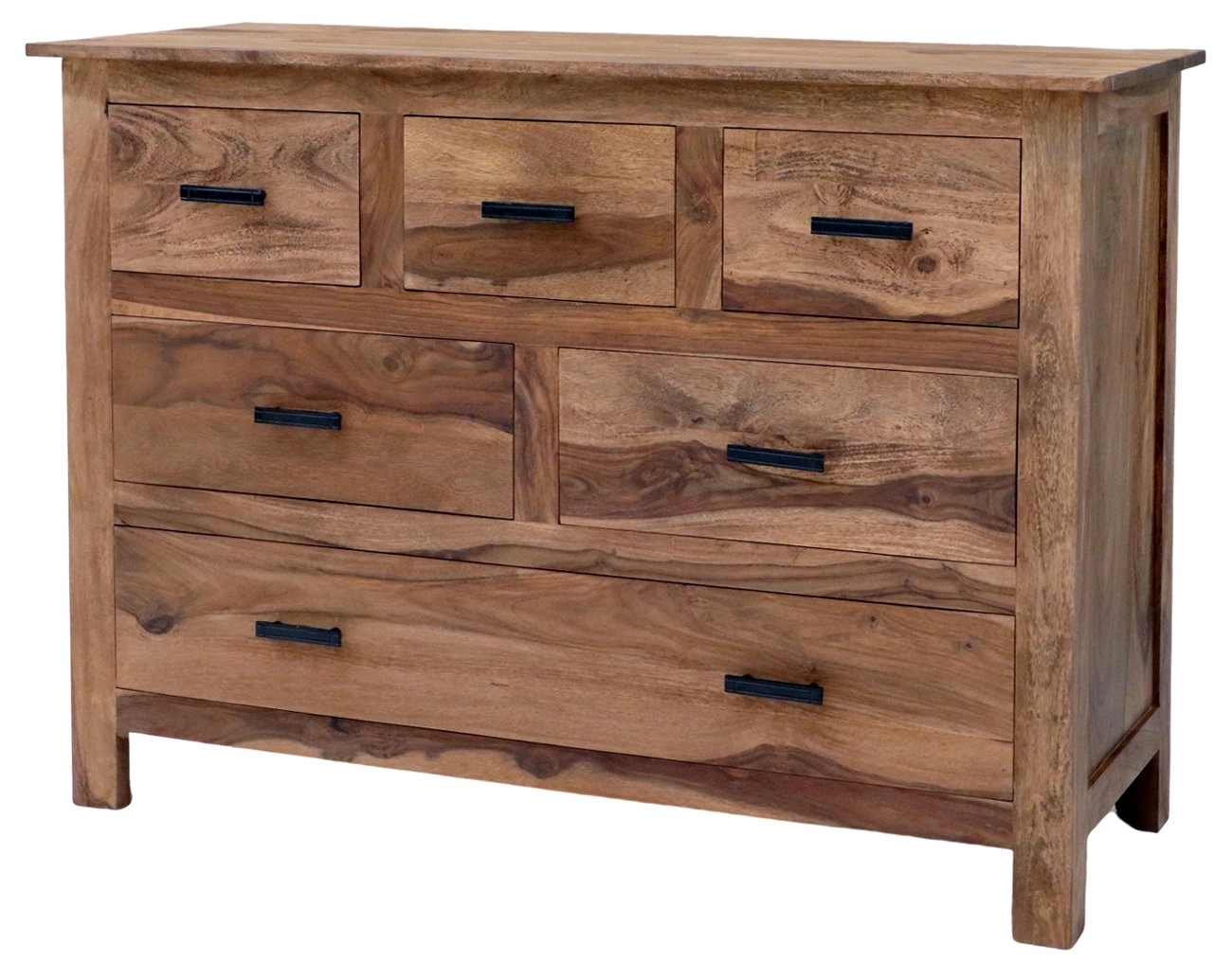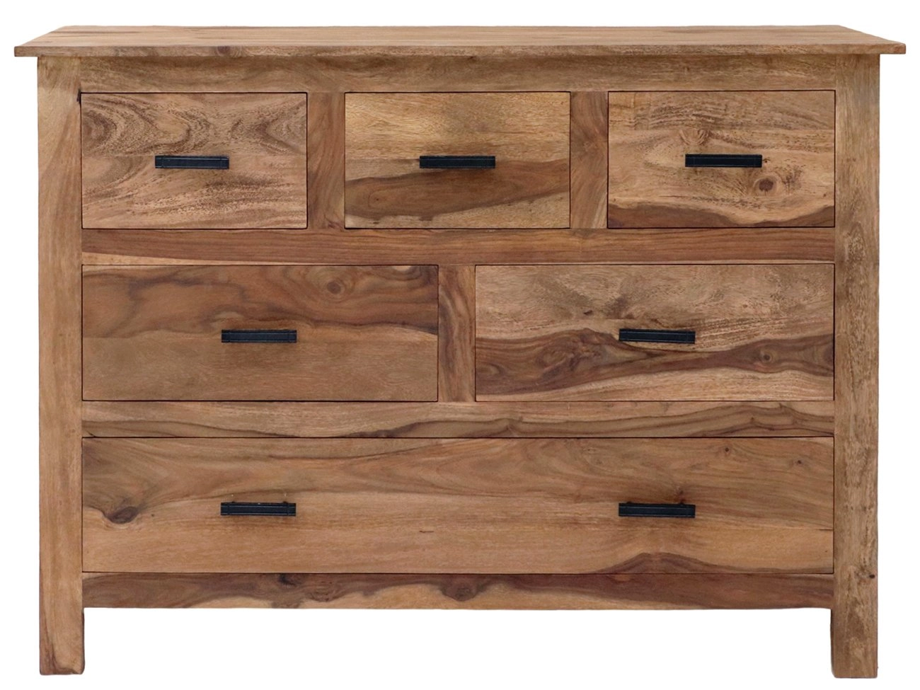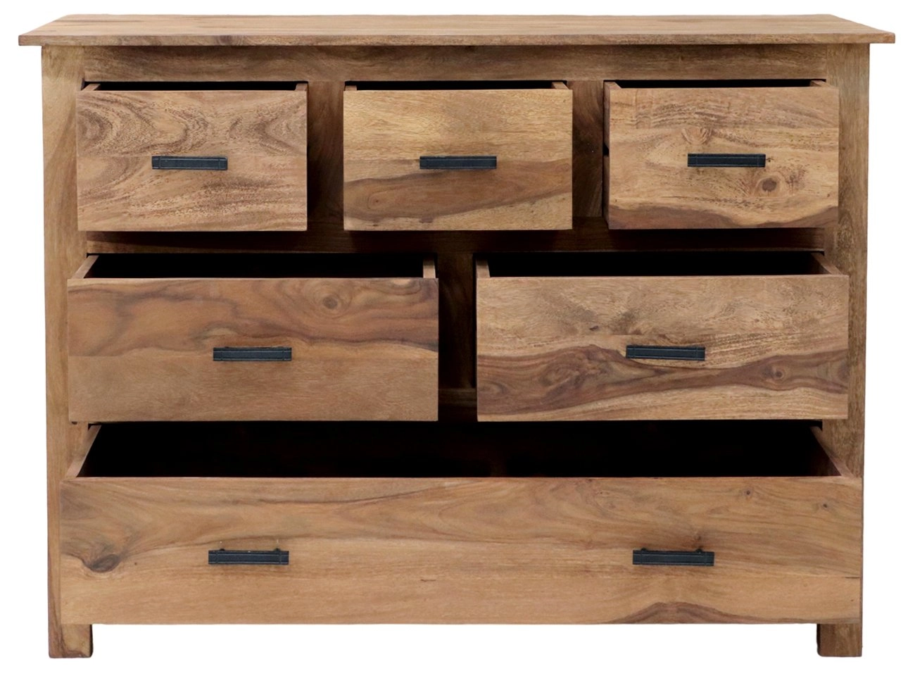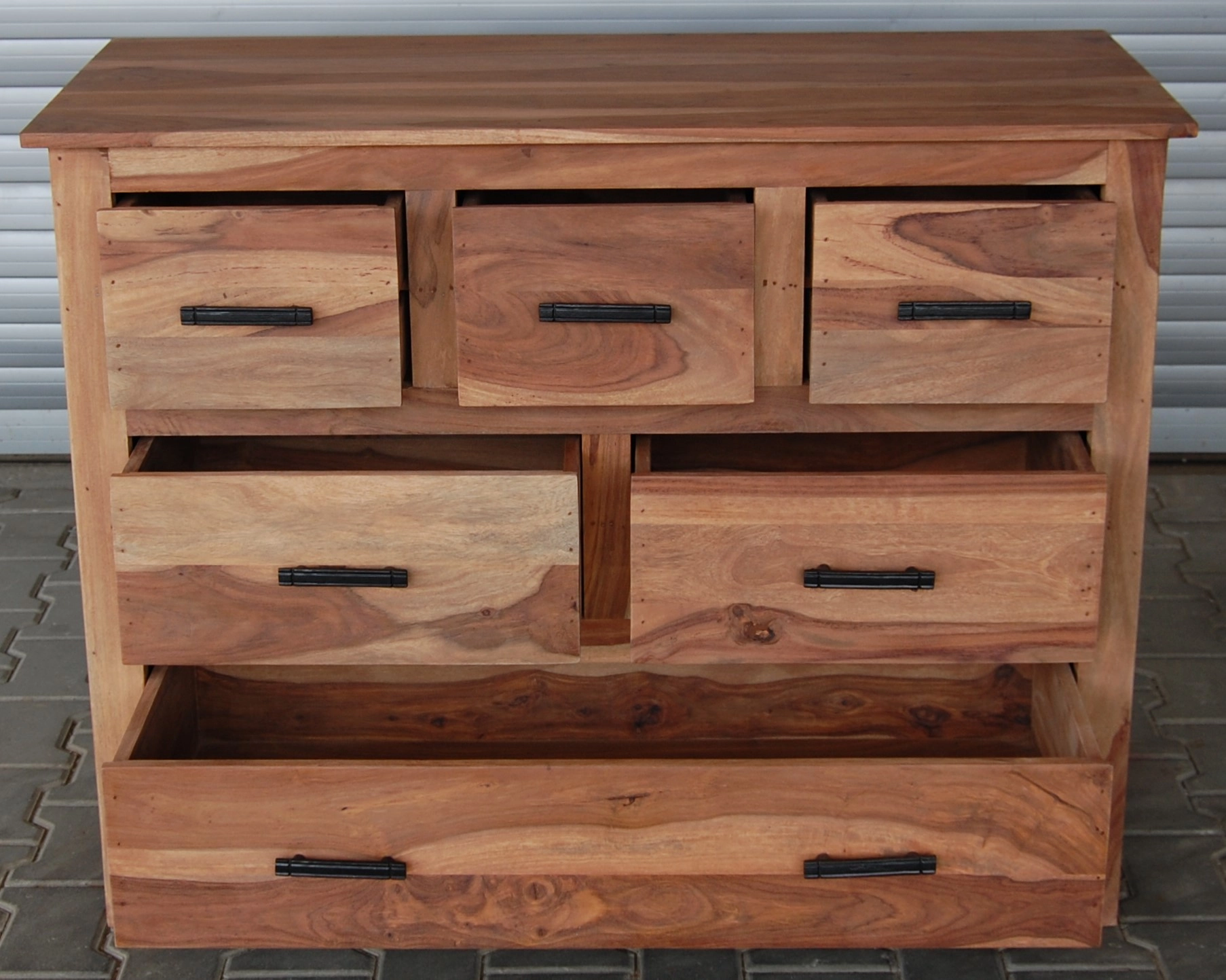 Obohaťte svou předsíň o eleganci a působivý řemeslný um s naším kvalitním produktem – Dřevěnou komodou z masivu palisandr o rozměrech 115x50x90 cm. Tato krásná dřevěná komoda zachycuje jedinečný charakter indického palisandru, známého nejen svou pevností, ale také nádhernou dřevitou strukturou a teplými tóny. Dřevěná komoda se šesti prostornými zásuvkami je nejen estetickým doplňkem, ale také praktickým úložným prostorem, který vám pomůže udržet veškeré nezbytnosti vždy po ruce a organizované.