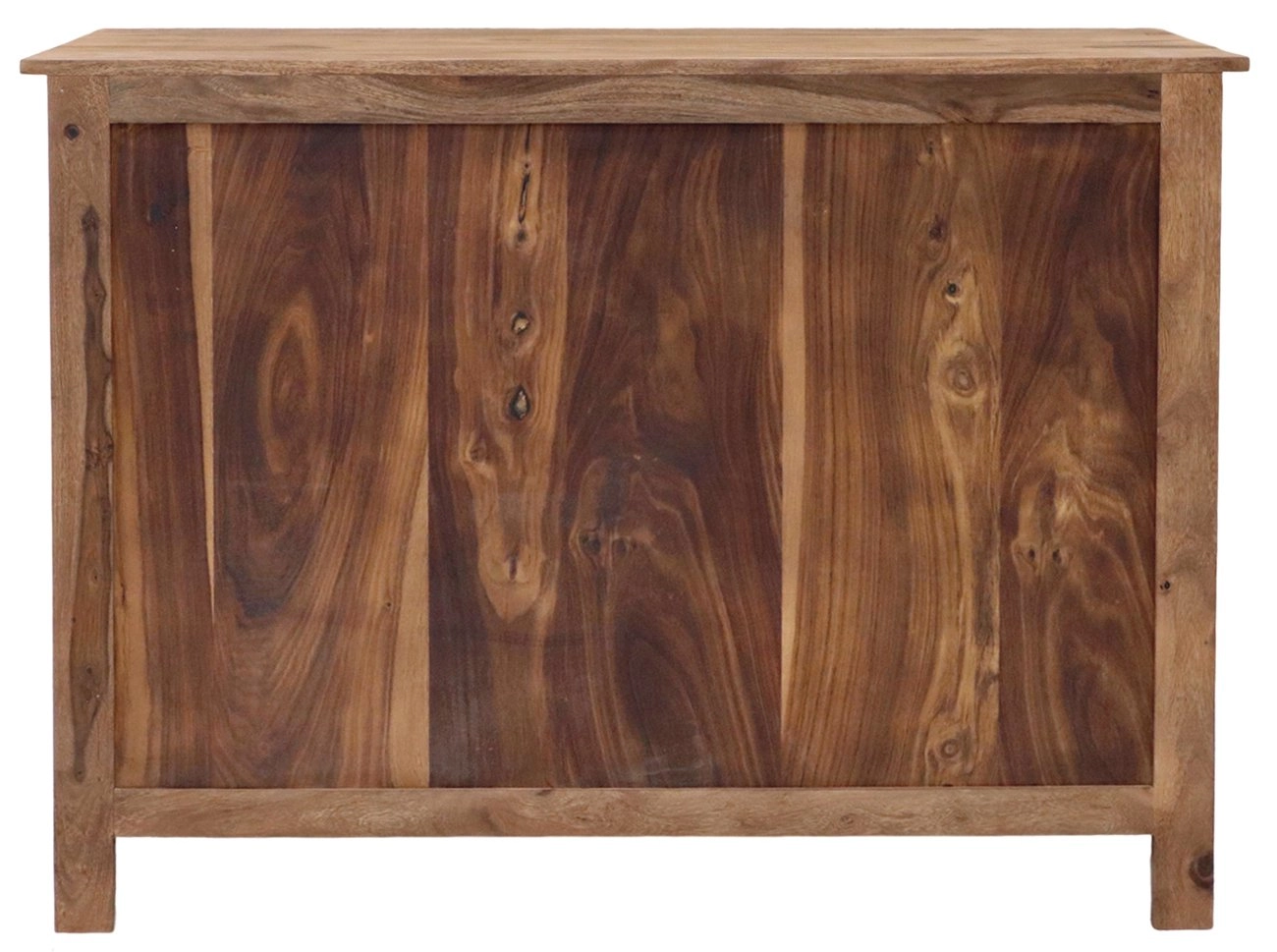 Dřevěný nábytek, jako je tato komoda, je ideální volbou pro ty, kteří oceňují spojení kvality a přirozené krásy. Díky svým rozměrům 115 cm na šířku, 50 cm na hloubku a 90 cm na výšku, je komoda dostatečně objemná na to, aby nabídla dostatek úložiště, a zároveň dostatečně kompaktní, aby našla své místo i v menších interiérech. Přirozený, teplý vzhled a autentický původ z Indie dodávají každému kousku jedinečnou osobitou atmosféru.