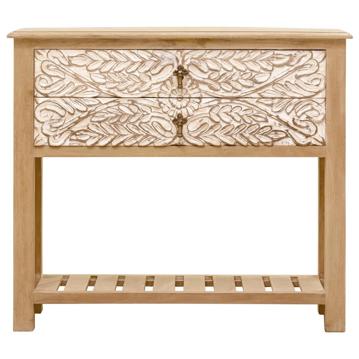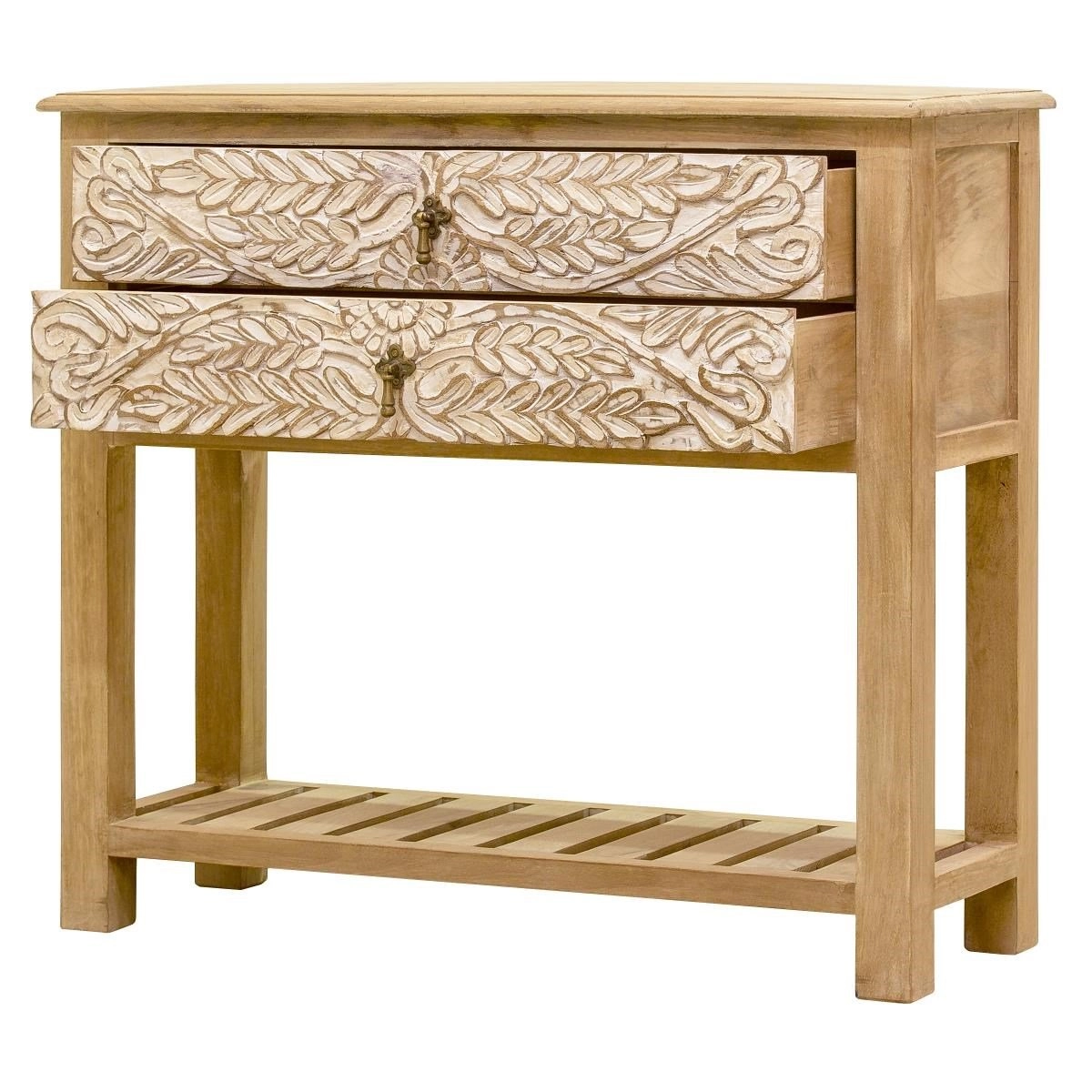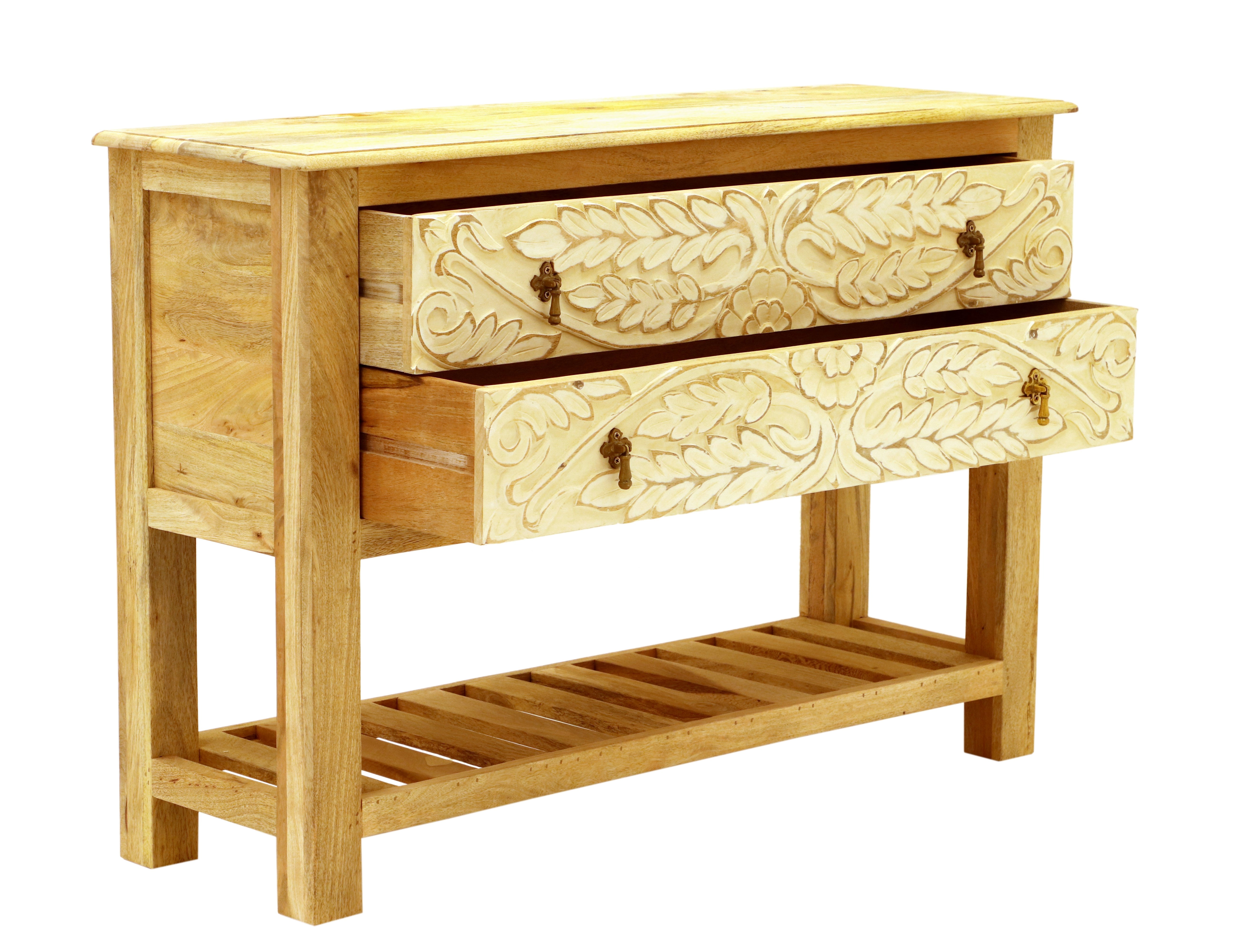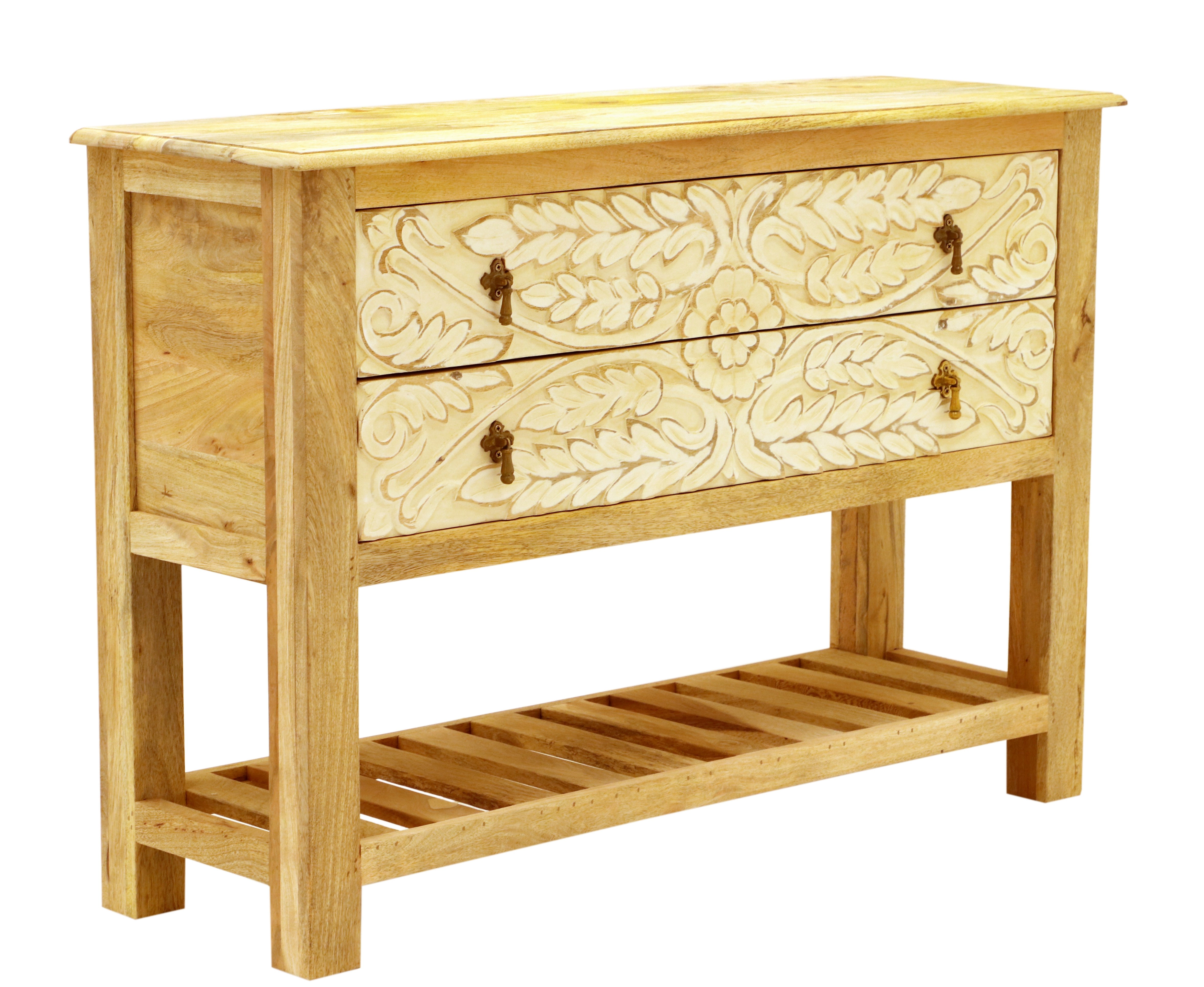 Představujeme vám náš jedinečný Dřevěný toaletní stolek z masivu mango 110x76x35, který přináší do vašeho domova kus exotiky a přírodní krásy. Tento stolek je pečlivě vyroben z vysoce kvalitního indického manga, což mu zajišťuje dlouhou životnost a odolnost. Ručně vyřezávaný design v boho stylu dodává stolku unikátní vzhled, který obohatí každý interiér. Díky šířce 110 cm, hloubce 35 cm a výšce 76 cm poskytuje dostatek prostoru pro vaši kosmetiku, knihy, nebo dekorace. Prostorné šuplíky jsou praktické pro ukládání všech drobností, které chcete mít po ruce. Dřevěný toaletní stolek z masivu mango nejenže pomůže udržet pořádek ve vašem domově, ale také vnese do místnosti pohodu a klid. Ideálně se hodí nejen do předsíně, ale také jako botník, příborník nebo jako kosmetický stolek ve vaší ložnici. Tento konzolový stolek dodá vašemu domovu nezaměnitelný dotek elegance.