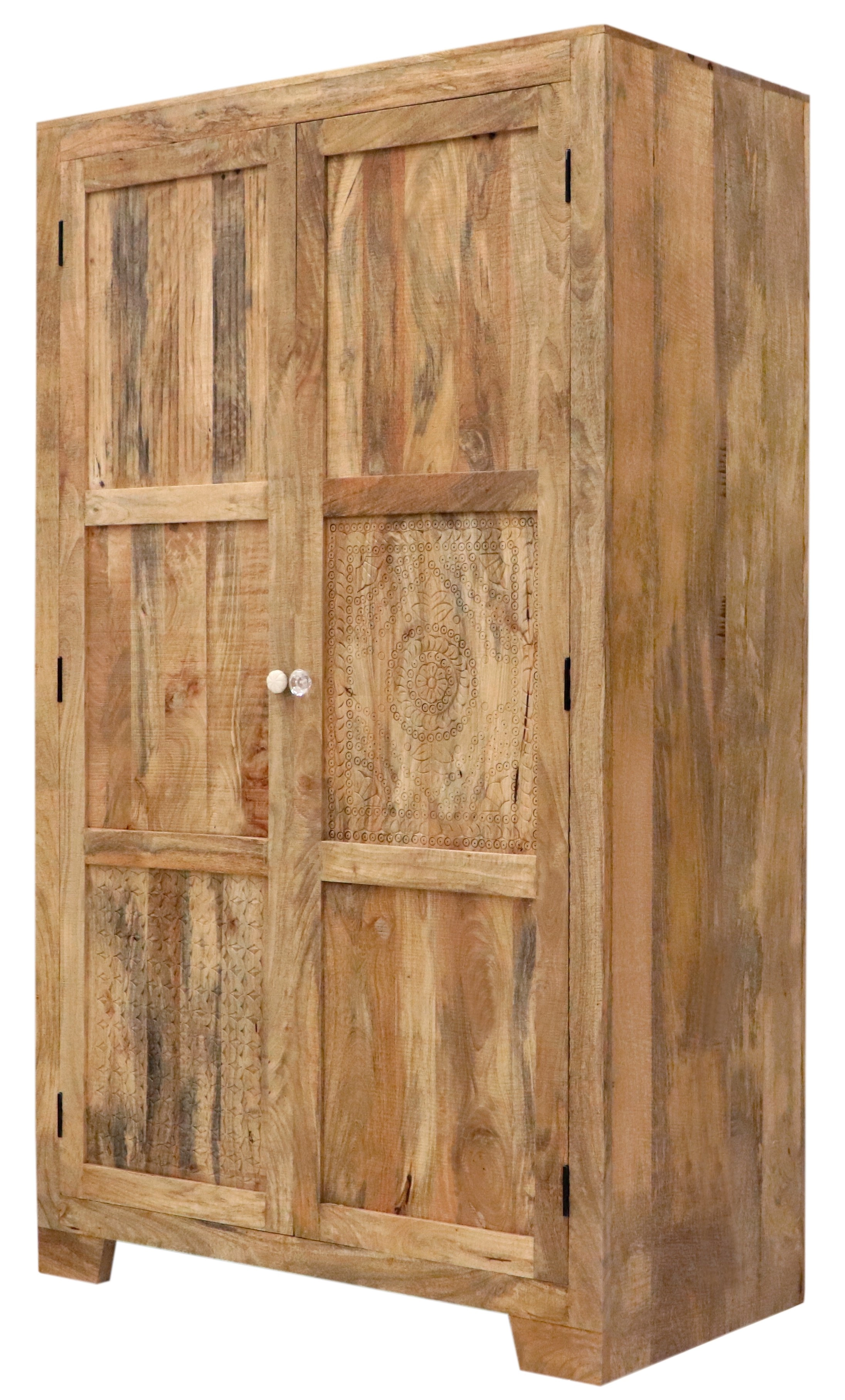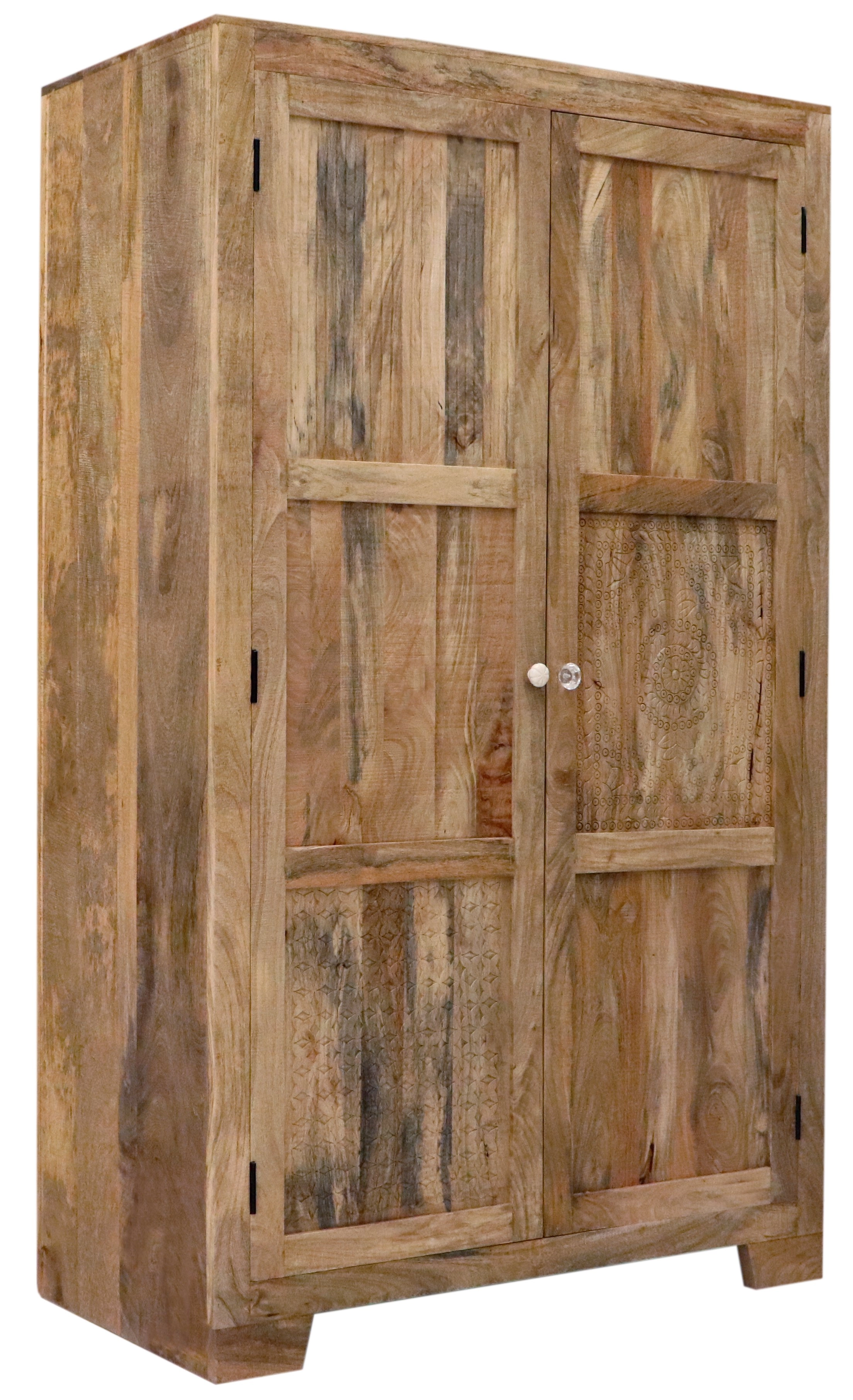 Rozměry skříně 120 cm šířka, 200 cm výška a 60 cm hloubka poskytují dostatek prostoru pro uložení vašeho oblečení a doplňků. Interiér skříně nabízí jeden velký prostor s tyčí na zavěšení pro kabáty a bundy, což vám umožní udržovat vaše oblečení úhledně uspořádané. Tato skříň z masivu je vhodná nejen do ložnice, ale také do vstupní haly nebo kanceláře. Indický nábytek je známý svým jedinečným stylem a tato skříň nenabízí jen funkčnost, ale také kousek exotické krásy, který oživí každý interiér.