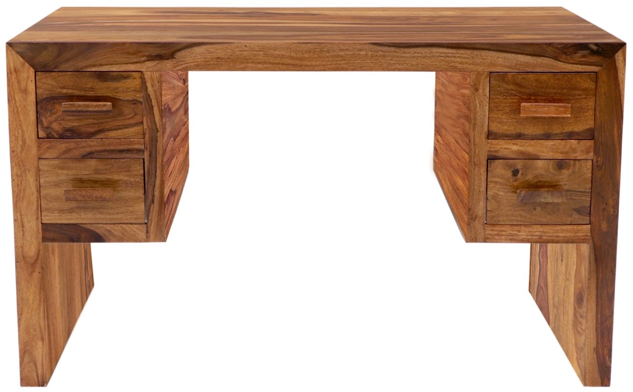 Masivní psací stůl je obohacen o čtyři praktické zásuvky, které poskytují dostatek prostoru pro uložení všech vašich kancelářských potřeb. Každý detail, od hladkých křivek po precizně zpracované zásuvky, svědčí o pečlivosti a lásce, která byla vložena do jeho výroby v Indii.