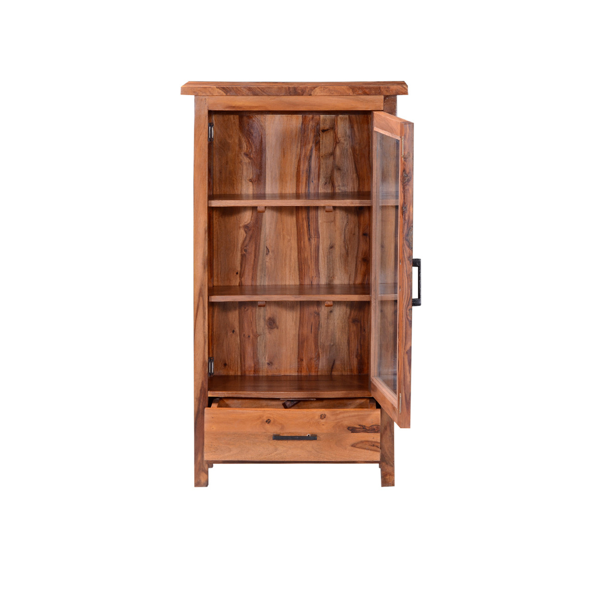 Vitrína z masivu s prosklenými dvířky má uvnitř několik pořadacích polic a 1 zásuvku. Vyrobena z kvalitního masivního palisandrového dřeva. Vitríny z masivu které máme skladem dá se prohlédnout osobně nebo objednat na zakázku v kterémkoliv z našich nabízených odstínů! Indický koloniální nábytek palisandr masiv.