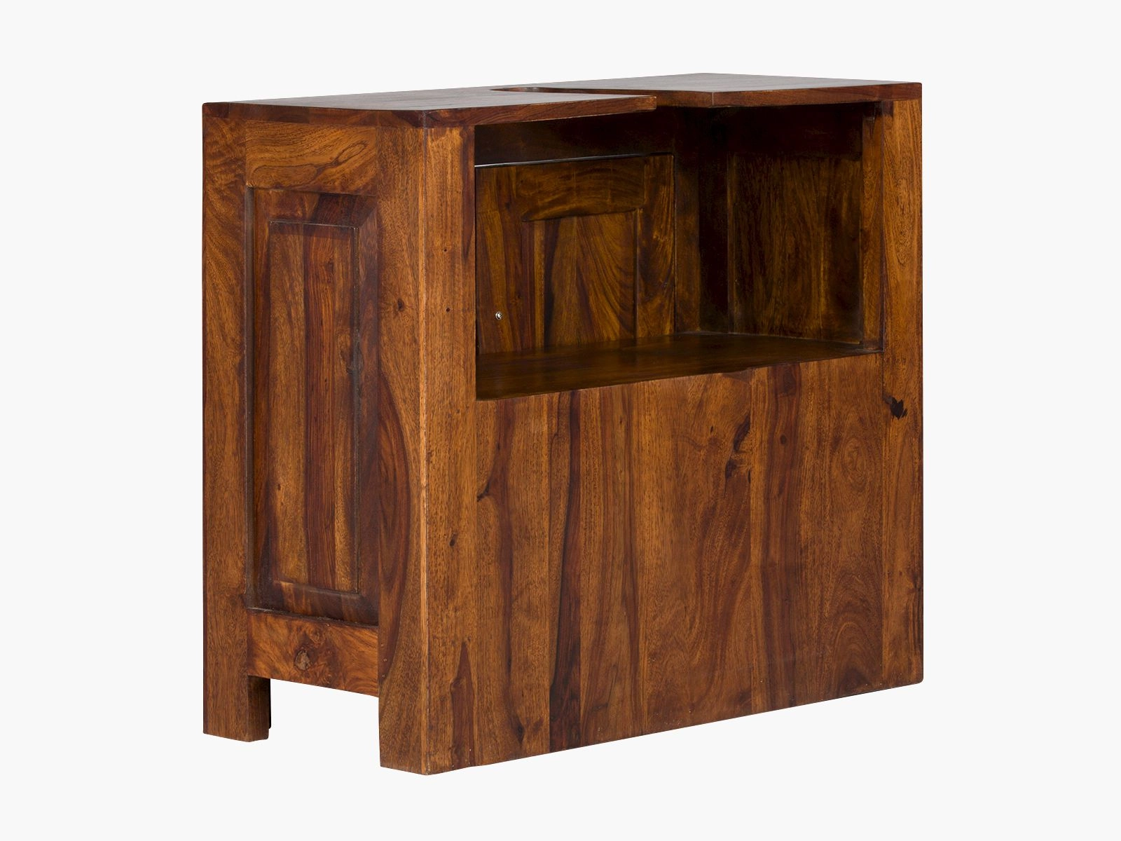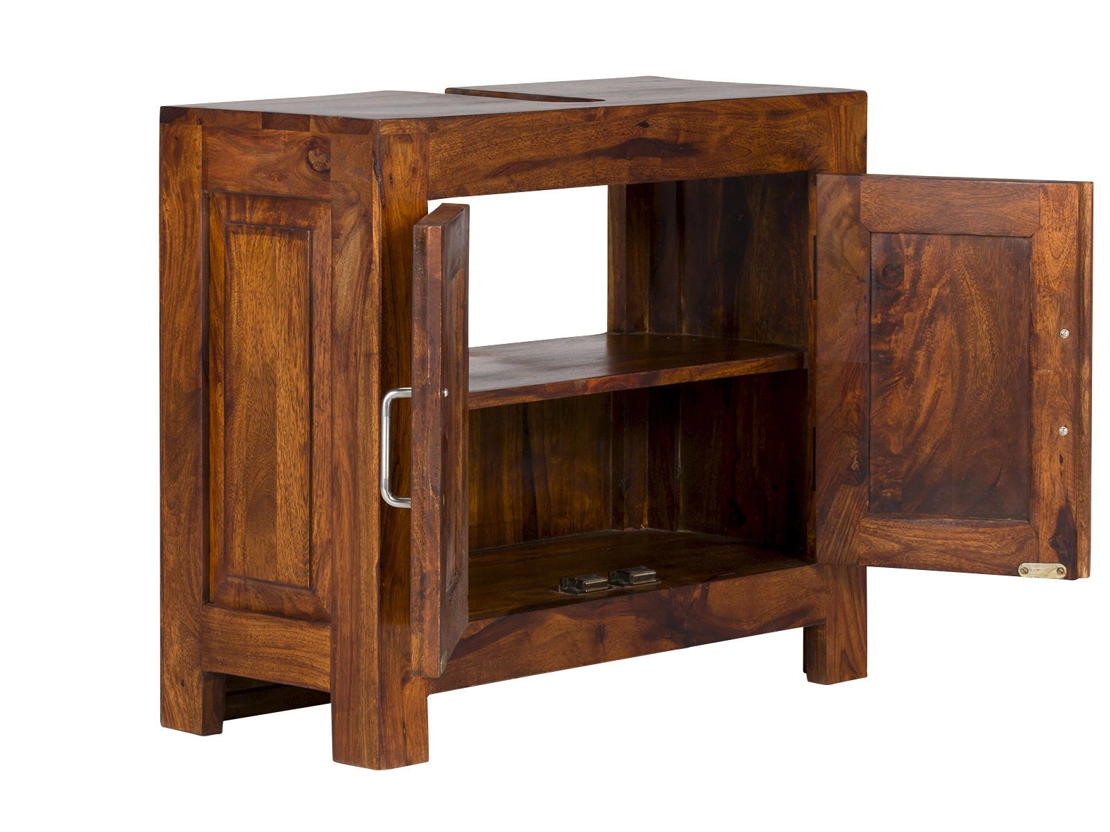 Tato stylová dřevěná skříňka pod umyvadlo masív je nejen praktickým, ale také designovým prvkem vaší koupelny. Vyrobená z kvalitního palisandru, tento kus nábytku přináší exotickou atmosféru přímo z Indie do vašeho domova. S rozměry 65x60x35 cm se jedná o ideální úložné řešení pro každou koupelnu, které navíc vypadá skvěle.