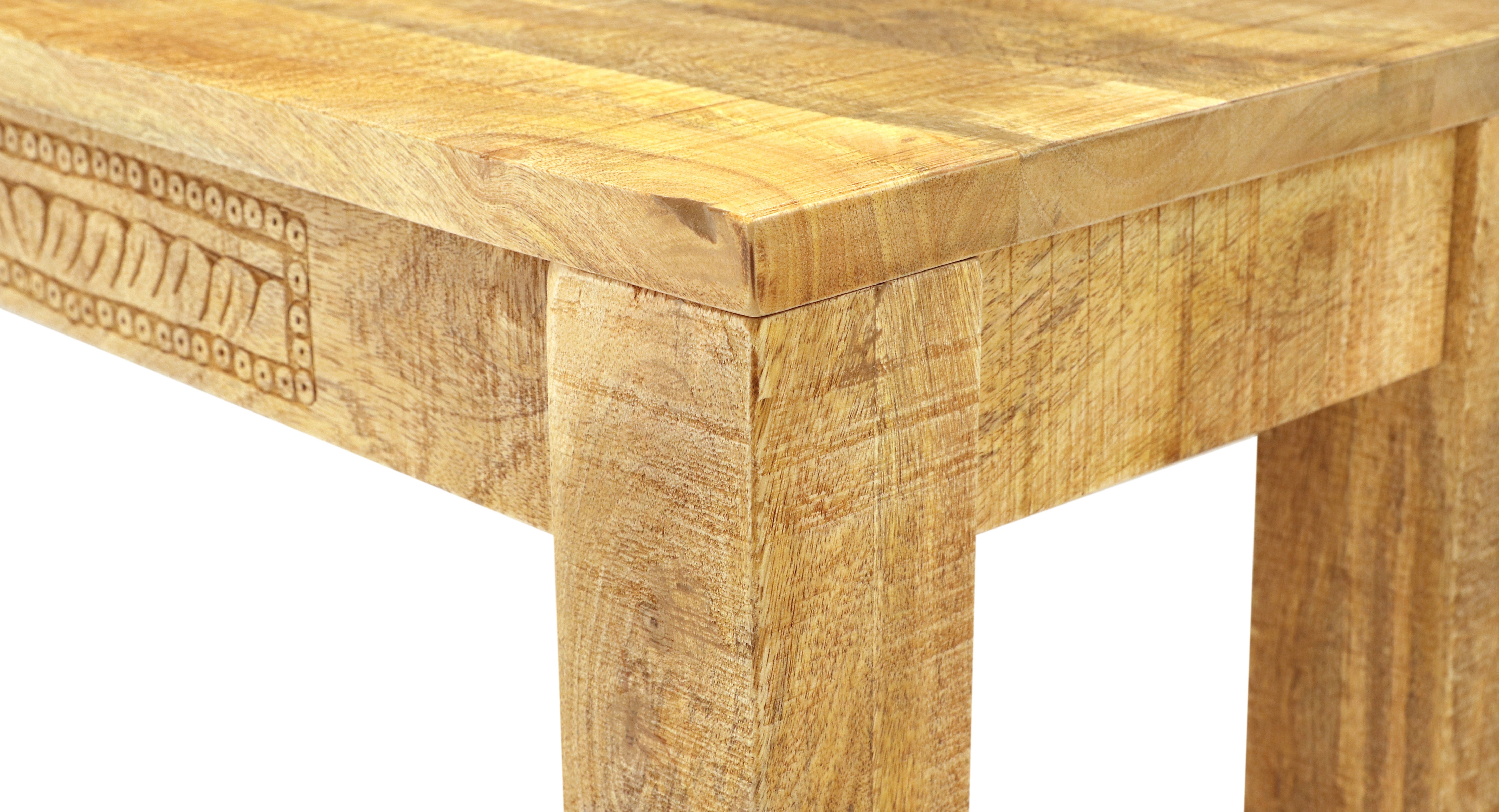 Naše dřevěná lavice do předsíně z masivu mango o rozměrech 140x40 cm je ideálním doplňkem pro každou předsíň. Tento dřevěný nábytek je vyroben z vysoce kvalitního mangového dřeva pocházejícího z Indie, což mu dodává jedinečný charakter a odolnost. Lavice nabízí dostatečnou šířku 140 cm a hloubku 40 cm, poskytující komfortní a praktický prostor pro sezení nebo odkládání věcí. Výška 45 cm je perfektně přizpůsobena pro snadné vstávání a pohodlné užívání. Díky svému exotickému původu a přírodnímu vzhledu se skvěle hodí do moderních i tradičně zařízených prostor. Kromě toho, že lavice sama o sobě vytváří elegantní prvek v předsíni, často bývá doplněna o další dřevěný nábytek, jako jsou dřevěné botníky, dřevěné věšáky, komody nebo skříně z mangového dřeva.