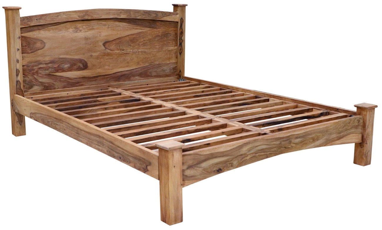 Postel z masívu z dřeva palisandr o rozměrech 200x180 cm je symbolem elegance a kvality. Tento výjimečný kousek, původem z Indie, je vyroben z pečlivě vybraného palisandrového dřeva, které je známé svou pevností a nádherným vzorem. Postel z masívu nabízí velkorysé rozměry, které zajišťují komfortní spánek pro dvě osoby.