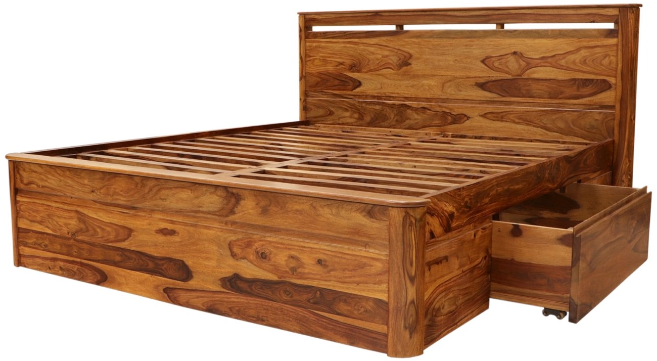 Objevte kouzlo rustikálního stylu s naší postelí z masivu s úložným prostorem 180x200 cm, která je vyrobena z kvalitního dřeva palisandru. Tento nábytek z masivu přináší nejen eleganci a tradiční šarm do vaší ložnice, ale také praktická řešení pro úložné prostory. Postel z masivu s úložným prostorem je ideální volbou pro ty, kteří chtějí využít každičký prostor v místnosti. S dvěma prostornými zásuvkami, které se nacházejí po stranách postele, nabízí ideální prostor pro uschování ložního prádla, sezónního oblečení či jiných osobních věcí.