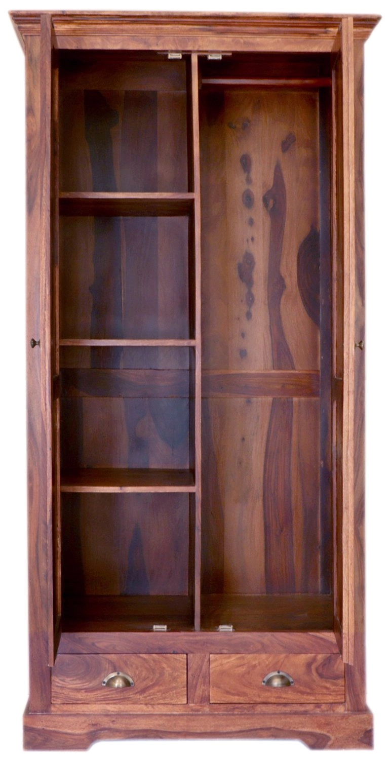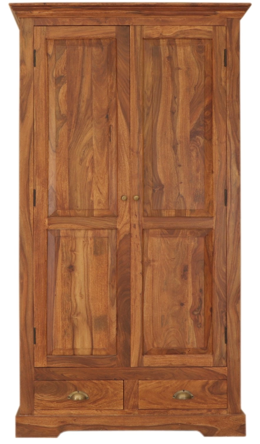 Uložte si oblečení s elegancí a stylem díky Dřevěné skříni masiv 120x200x60, která se stane dominantou každé ložnice. Tato šatní skříň z masivu je pečlivě vyrobena z prémiového indického palisandru, což je materiál známý svou výjimečnou odolností a krásnou texturou. Díky šířce 120 cm, hloubce 60 cm a výšce 200 cm nabízí skříň dostatek prostoru pro vaše oblečení a další předměty. Vnitřní rozložení skříně zahrnuje několik prostorných regálů, které zajišťují snadnou organizaci, a ve spodní části naleznete dvě praktické zásuvky s kovovými úchyty pro drobnosti.