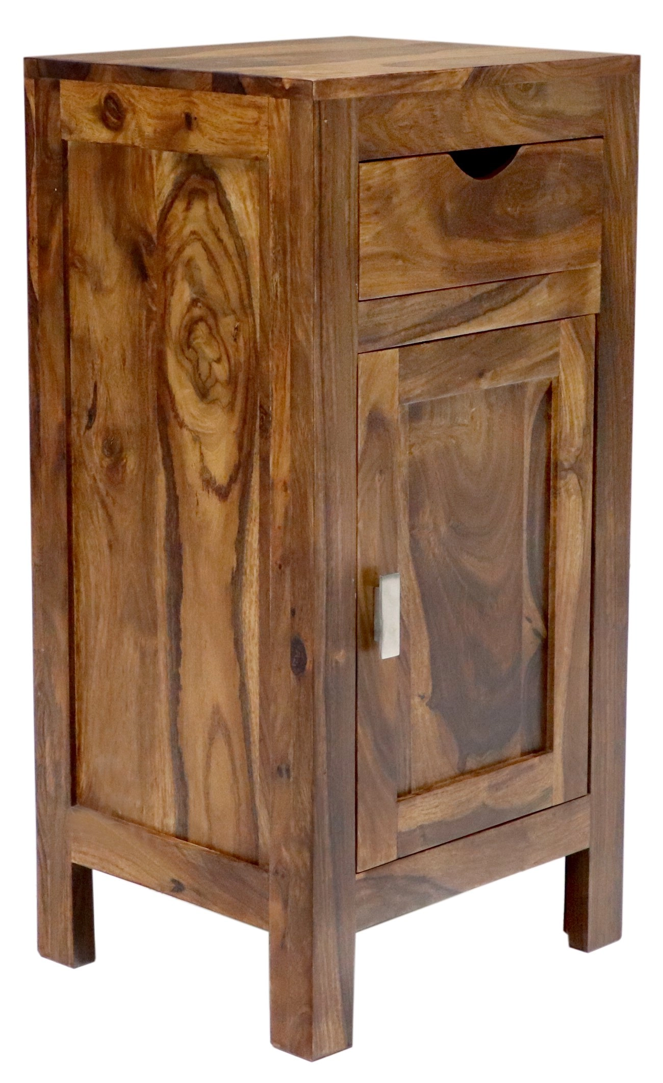 Objevte eleganci a nadčasovost, kterou v sobě skrývá skříňka masiv 40x80x35 z dřeva palisandr. Tato skříňka do koupelny je skvělým příkladem toho, jak spojit funkčnost a estetiku, a je vyrobena z prvotřídního masivního dřeva indického palisandru. S šířkou 40 cm, hloubkou 35 cm a výškou 80 cm, se tato skříňka stane praktickým doplňkem každé koupelny. Vybavena je jednou zásuvkou a jednou uzavíratelnou skříňkou, které poskytují dostatek úložného prostoru pro vaše potřeby.