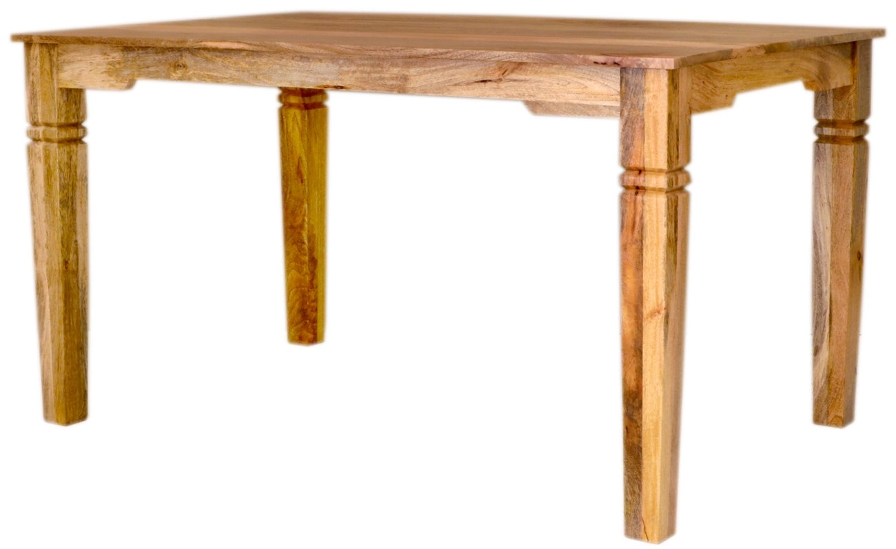 Jídelní stůl Guru 120x90 z masivu mango je dokonalým spojením elegance a funkčnosti, které vnese do vaší jídelny nádech přírodní krásy a exotiky. Tento jedinečný dřevěný jídelní stůl, vyrobený z kvalitního mangového dřeva pocházejícího z Indie, je ideální volbou pro ty, kteří hledají stylový a odolný stůl z masivu. Mangové dřevo se vyznačuje svou pevností a odolností, což zajišťuje dlouhou životnost stolu, při zachování nádherného vzhledu a přírodní struktury dřeva.