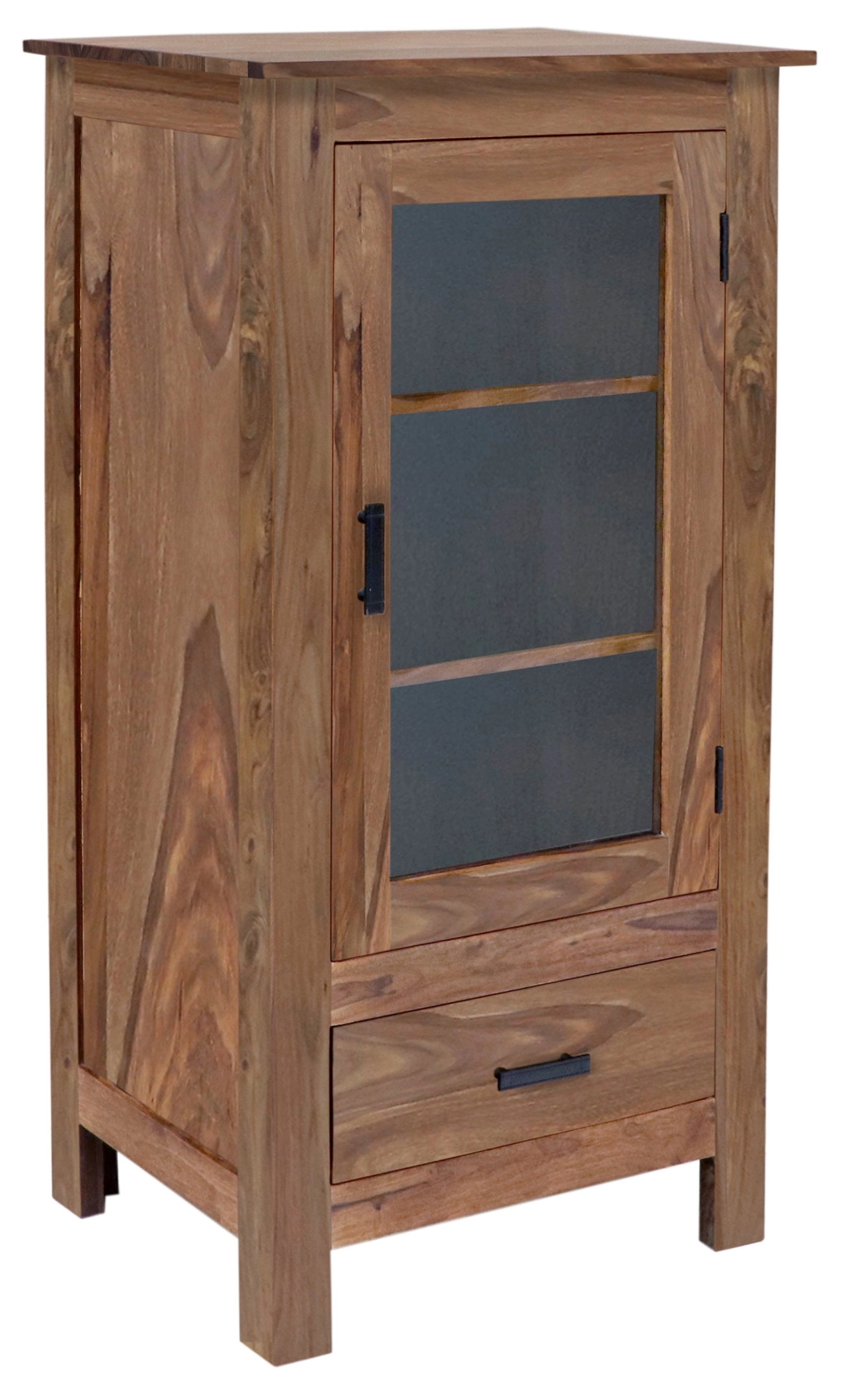 Dřevěná vitrína z masivu palisandru 60x120x45 je dokonalým doplňkem pro každý obývací pokoj, kde elegance a funkčnost jdou ruku v ruce. Tento kousek indického nábytku z masivu přináší do vašeho interiéru kousek exotiky a kvality, jakou může nabídnout pouze dřevěný nábytek z masivu. Ručně vyrobená z vysoce kvalitního indického palisandrového dřeva, tato multifunkční vitrína je nejen krásná, ale i vysoce praktická.