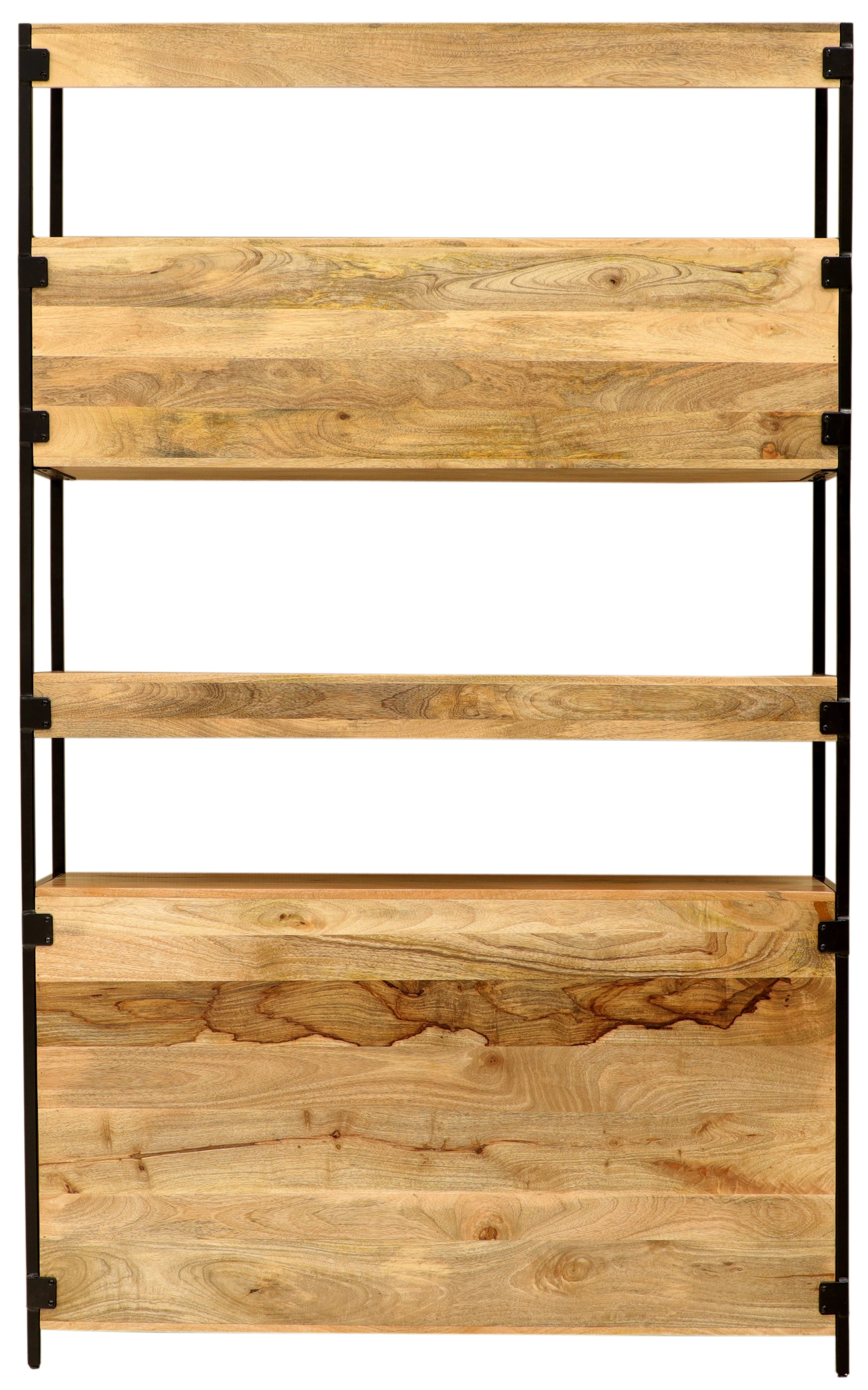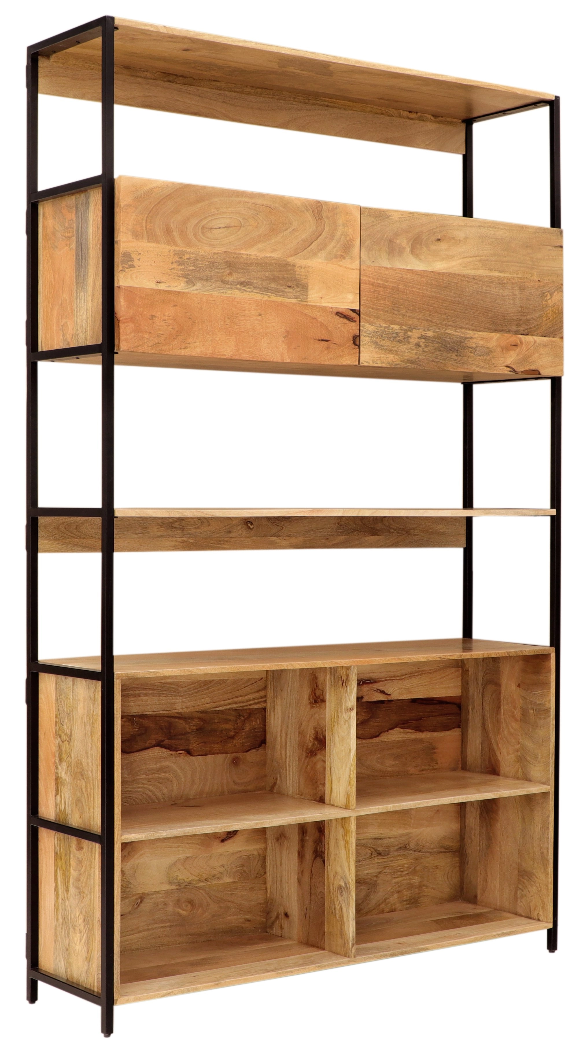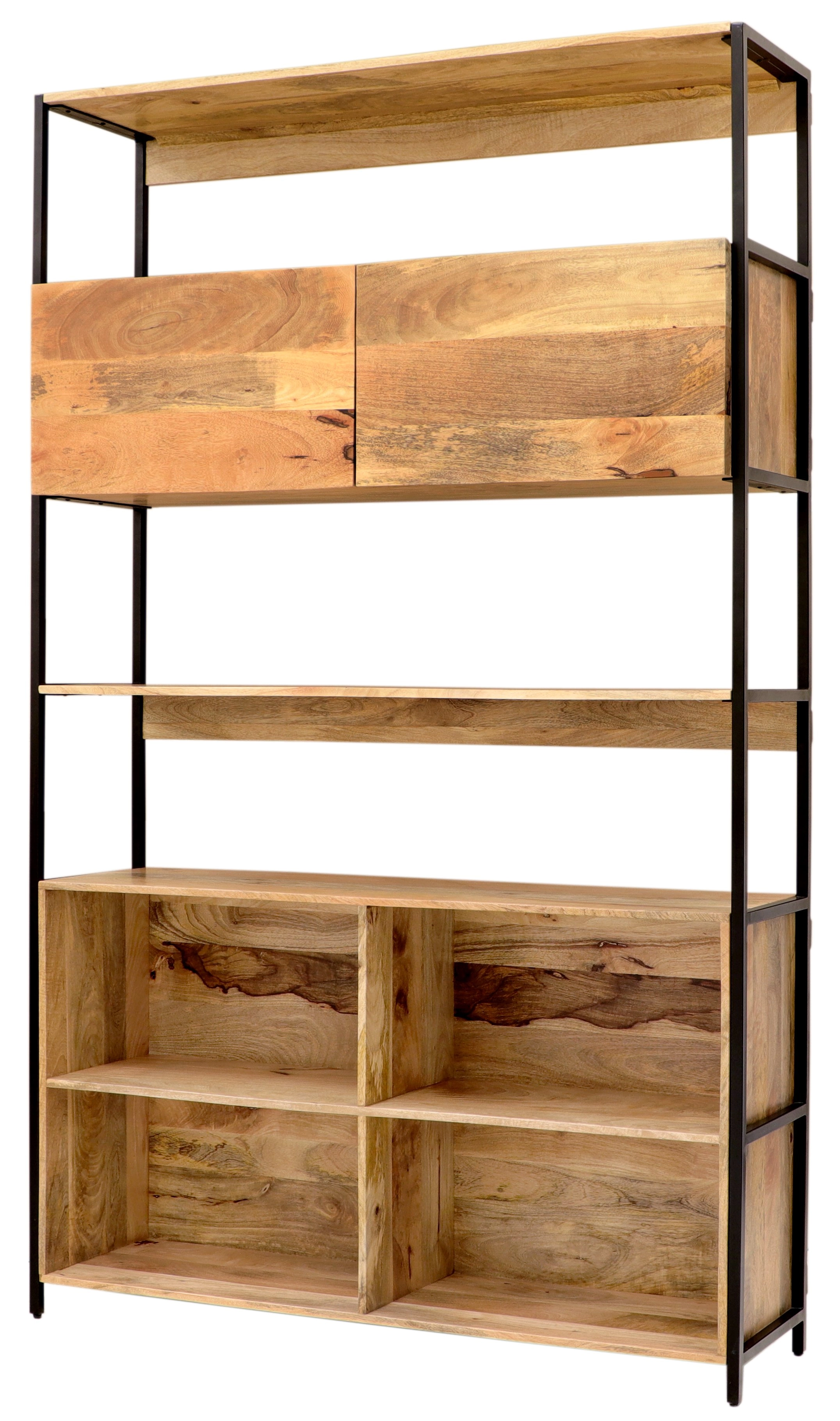 Představujeme vám naši kovovou knihovnu v kombinaci s dřevem mango, která přináší do vašeho domova okouzlující špetku indického nábytku s industriálním nádechem. Tato masivní knihovna z mangového dřeva je mistrovským dílem, které zaujme na první pohled díky své jedinečné kombinaci přírodních materiálů a pečlivého zpracování. S celkovou výškou 213 cm, šířkou 130 cm a hloubkou 35 cm nabízí dostatek prostoru pro umístění vašich oblíbených knih, dekorací či suvenýrů.