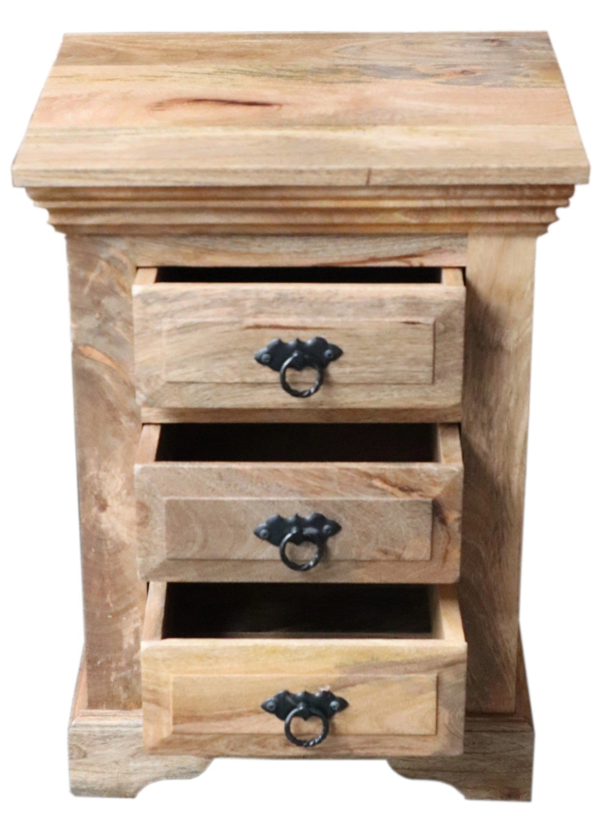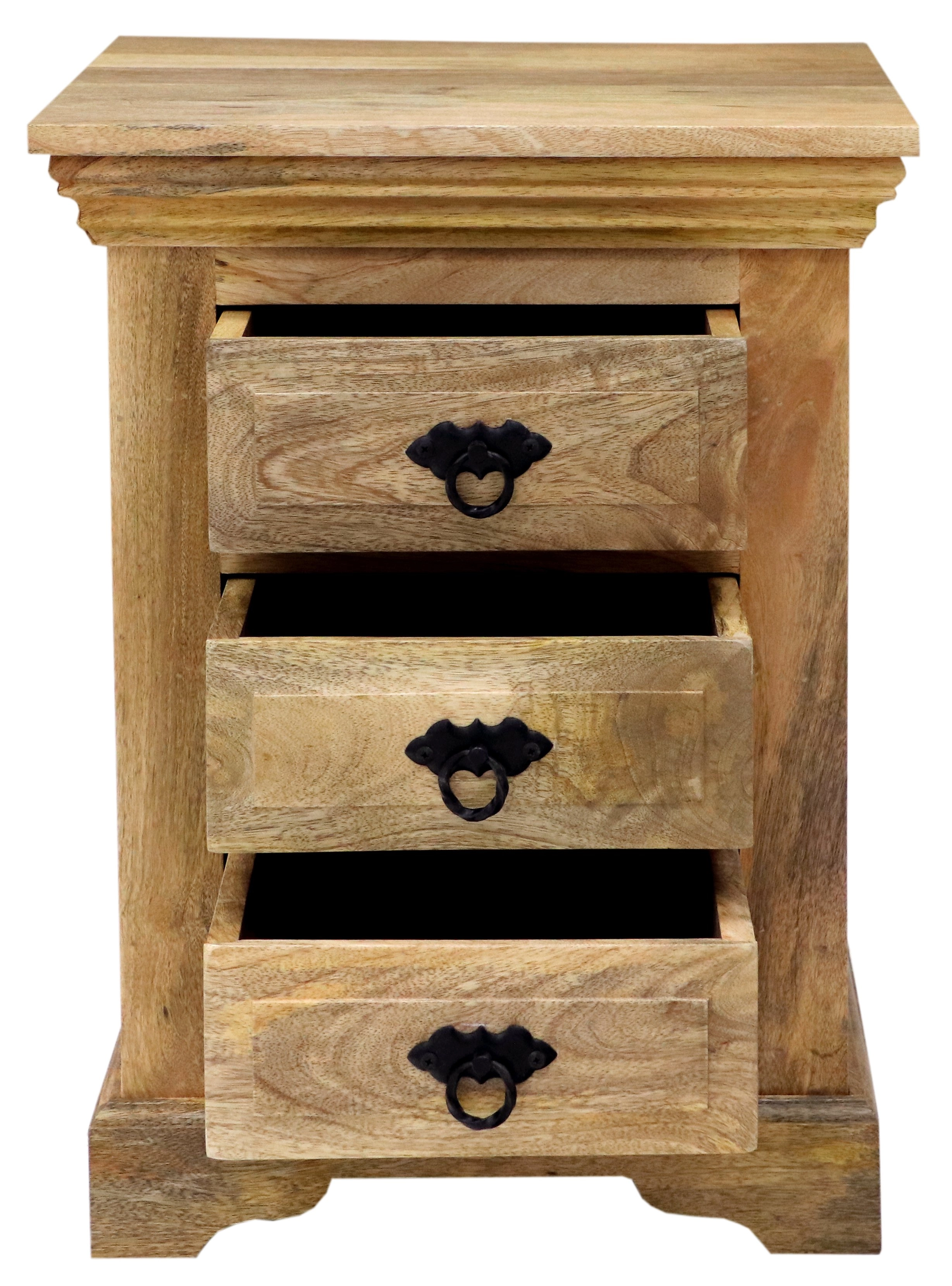 Objevte kouzlo přírodní elegance s naším nočním stolkem masiv z dřeva mango, který se stane středobodem vaší ložnice. S rozměry 45 x 60 x 40 cm poskytuje dostatek prostoru pro vaše každodenní nezbytnosti a díky třem prostorným šuplíkům si můžete snadno uspořádat své věci. Každý kus je vyroben s pečlivostí a láskou k řemeslu z exotického masivního dřeva mango pocházejícího až z daleké Indie. Díky unikátnímu designu a přírodnímu vzhledu dodá noční stolek vašemu interiéru osobitý charakter a teplo. Masivní dřevo zajišťuje dlouhodobou odolnost a kvalitu, což z něj činí skvělou investici pro váš domov.