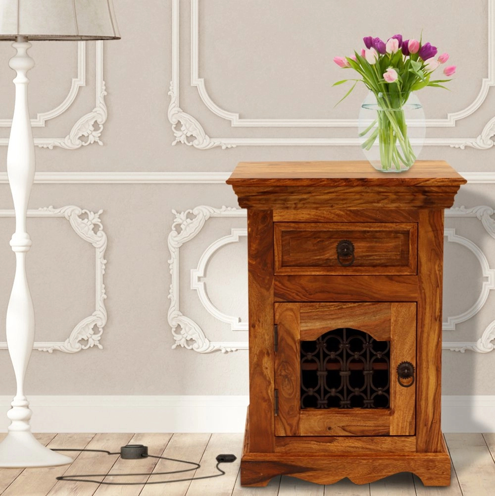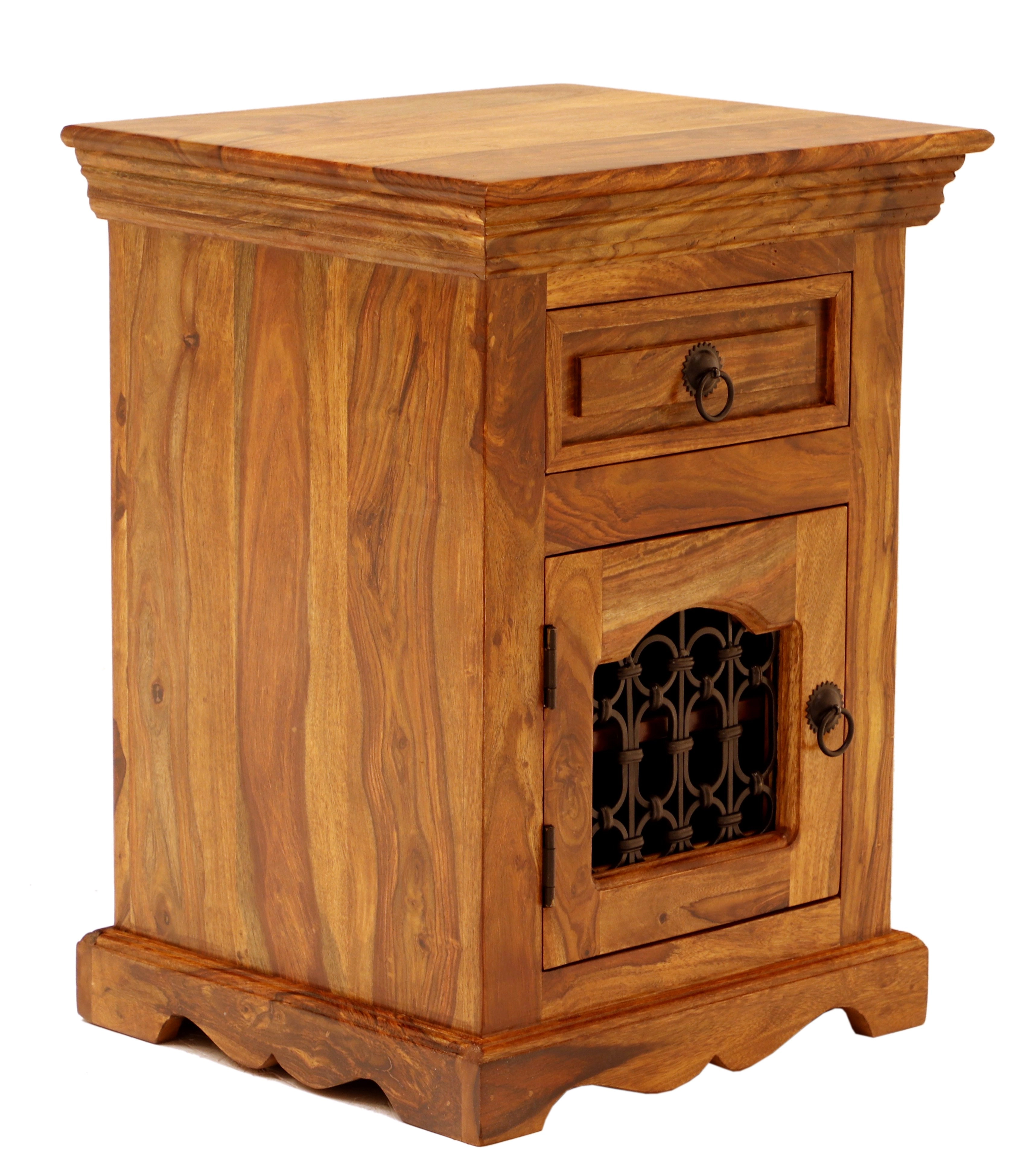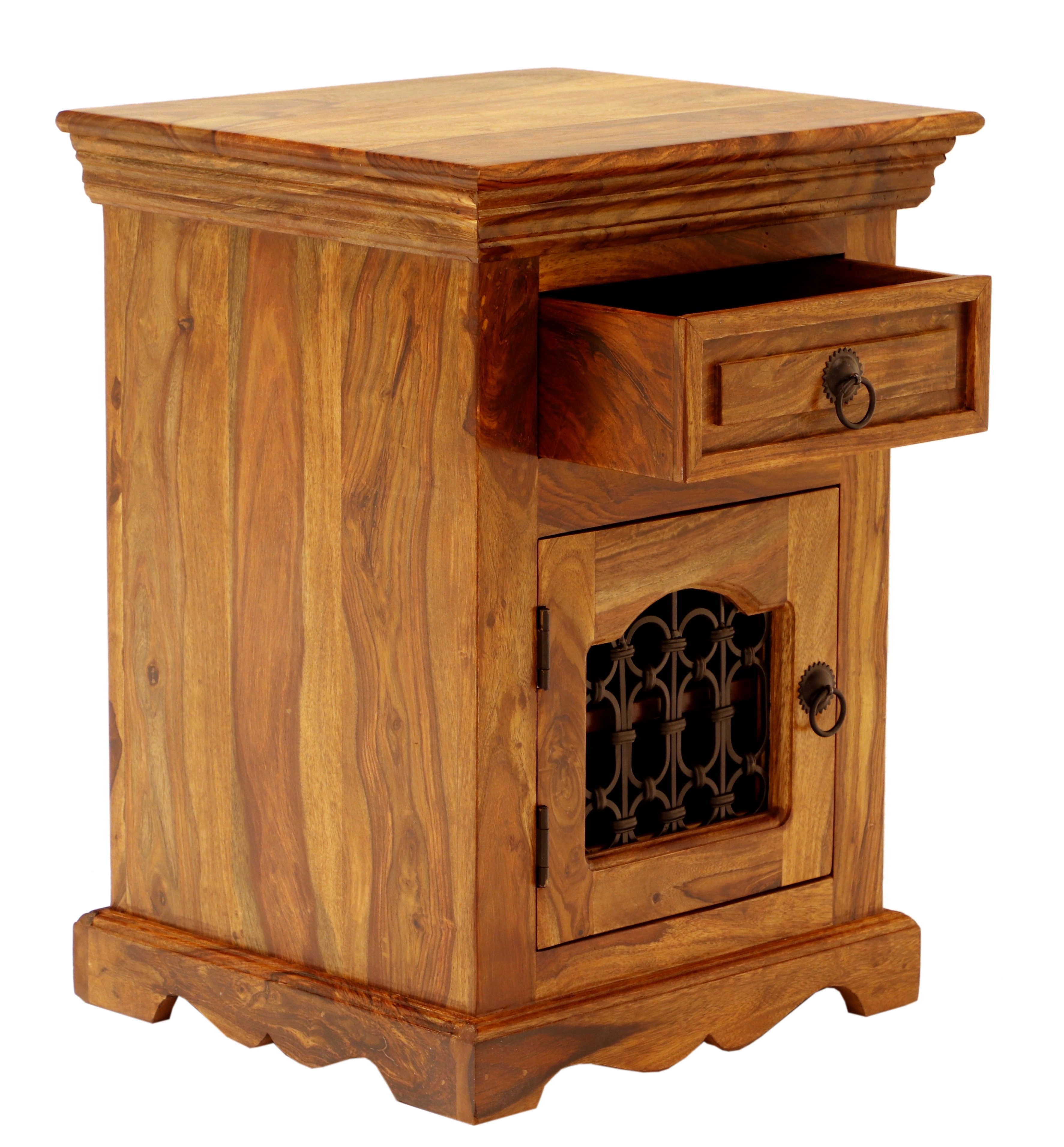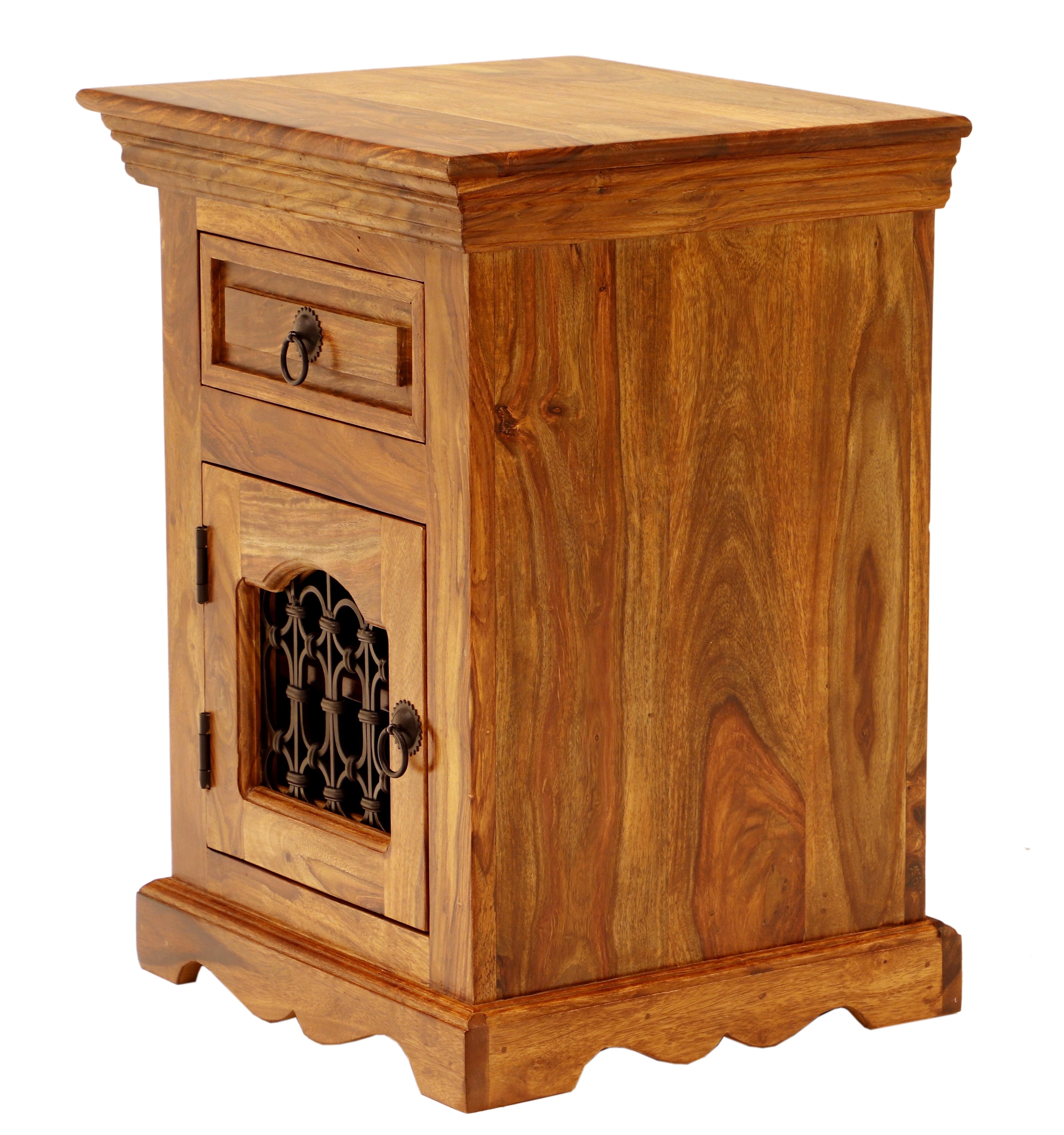 Noční stolek z masivu z palisandrového dřeva o rozměrech 45x60x40 cm je nejen estetickým, ale i praktickým doplňkem do Vaší ložnice. Vyrobený s pečlivostí a důrazem na detail přímo v srdci Indie, tento noční stolek z masivu nabízí teplý, exotický dotek vašeho interiéru díky bohatým a výrazným tónům palisandru. Noční stolek je ideálním doplňkem k masivnímu nábytku a je výjimečný díky jedinečné kresbě dřeva, která z něj činí artefakt s vlastním příběhem.