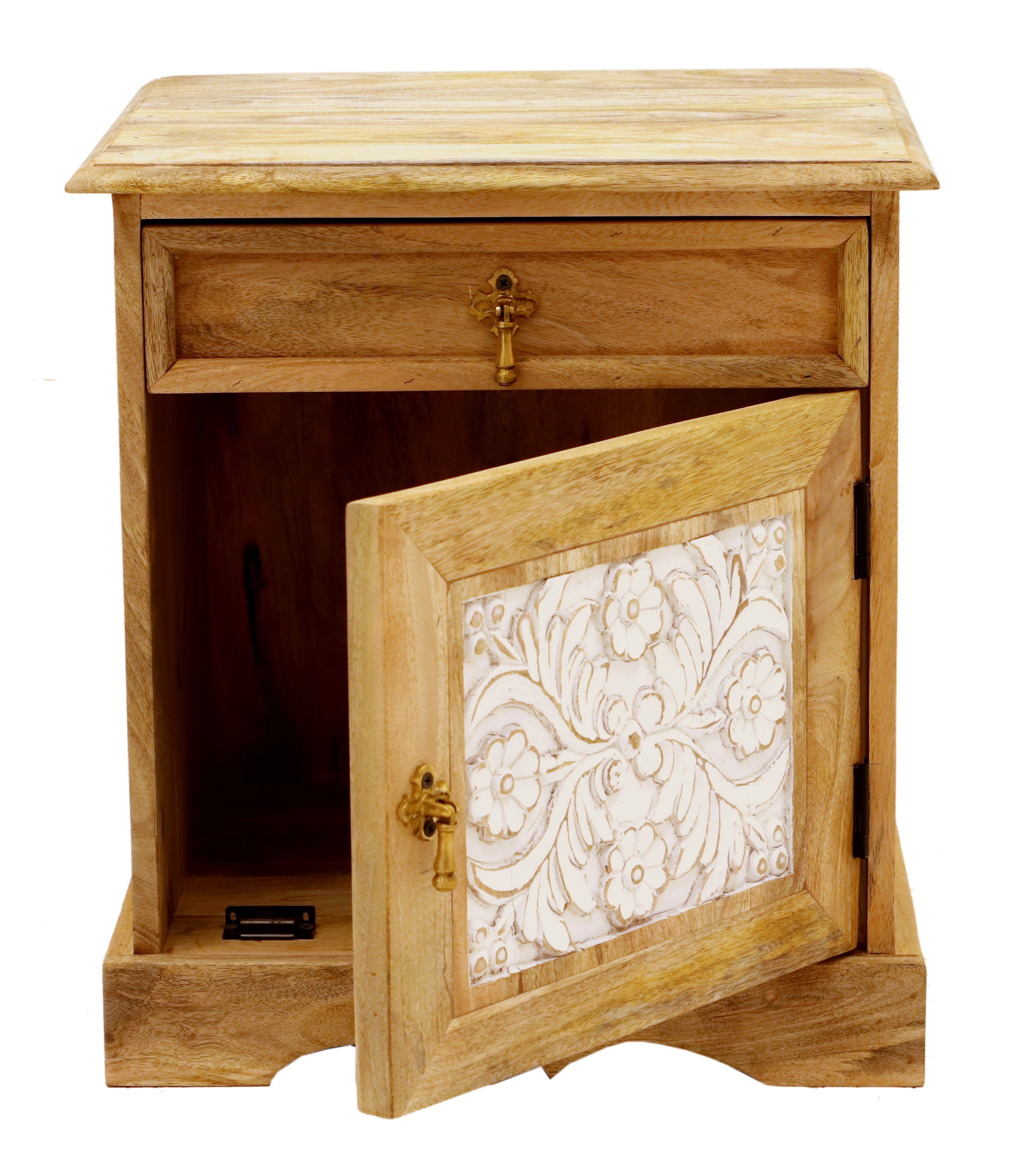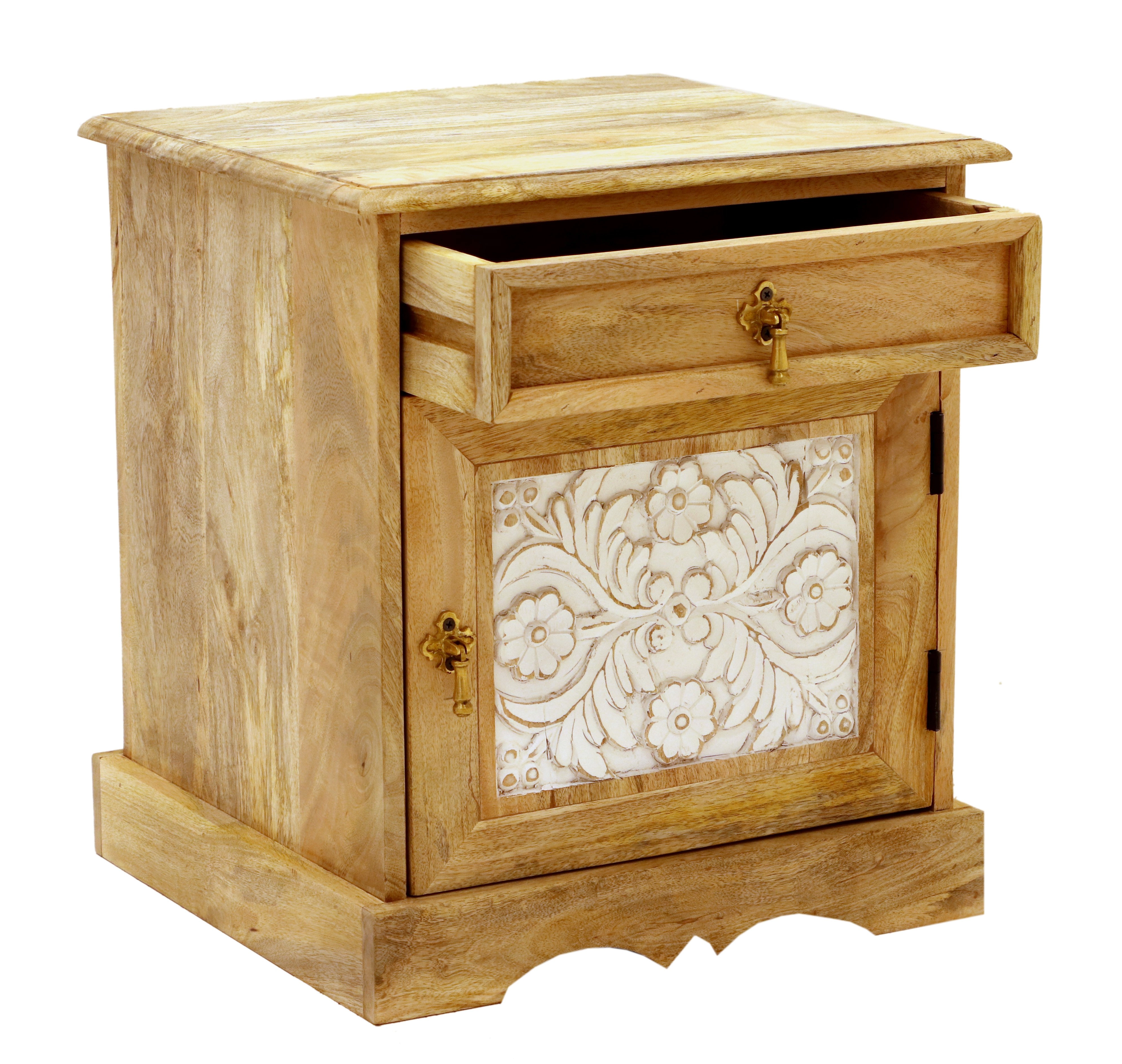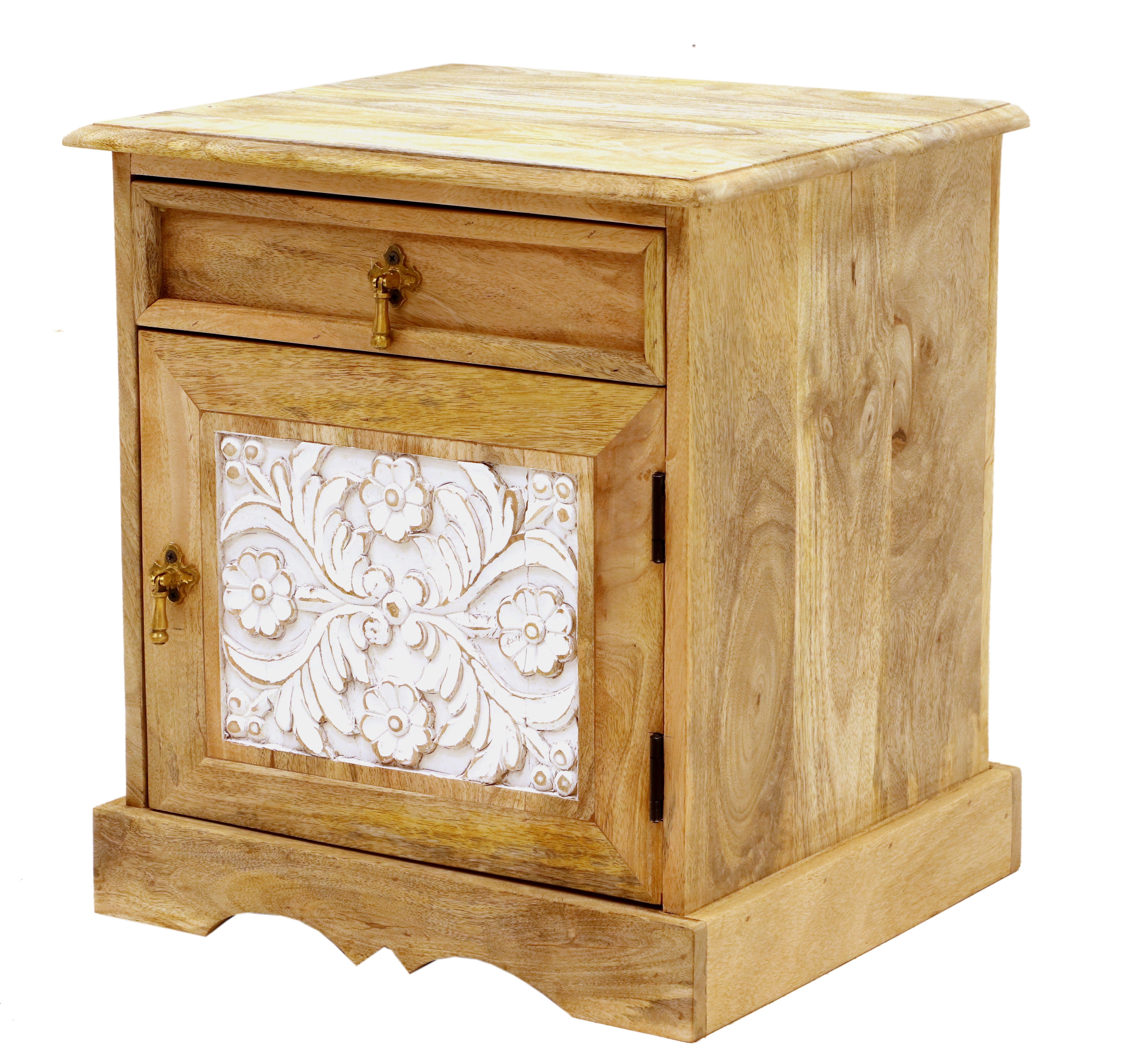 Noční stolek z masivu z dřeva mango 45x50x40 je nádherný kus nábytku, který přinese do vašeho interiéru nádech exotiky a elegance. Tento noční stolek z masivu je pečlivě vyroben z kvalitního mangového dřeva, které je ceněno pro svou odolnost a jedinečný vzhled. Stylový design nočního stolku v kombinaci s přírodními teplými tóny dřeva vytváří útulnou atmosféru ve vaší ložnici.