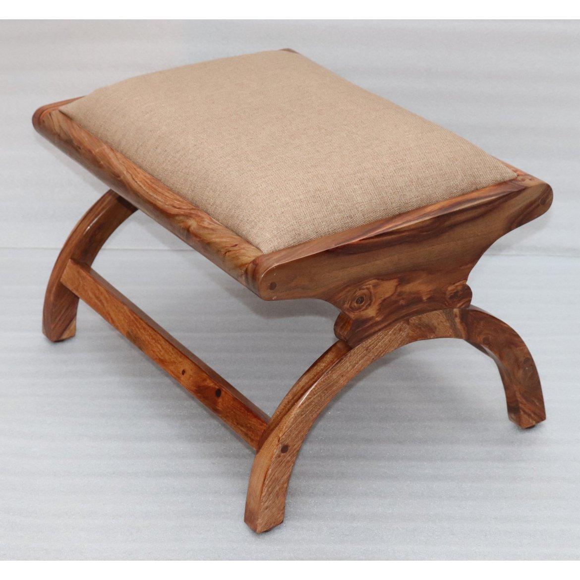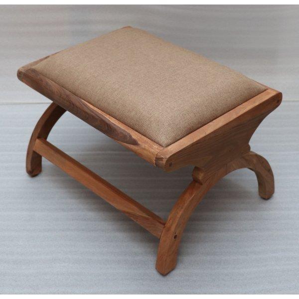 Der gepolsterte Hocker mit Bezug ist aus indischem Palisander gefertigt. Die massiven Hocker, die wir auf Lager haben, können Sie in unserem Showroom besichtigen. Indermöbel aus Palisander (Sheesham) massiv im kolonialen Stil.