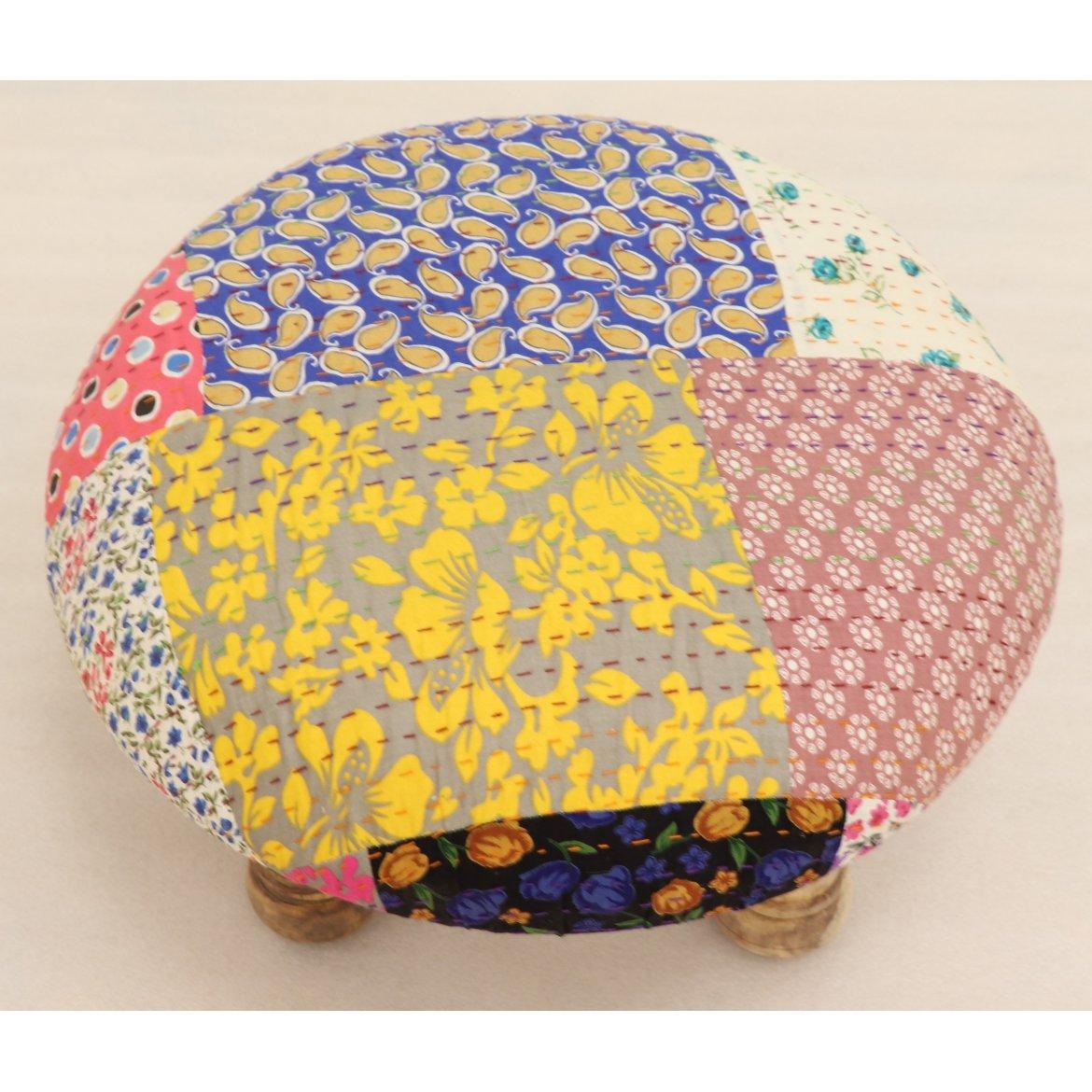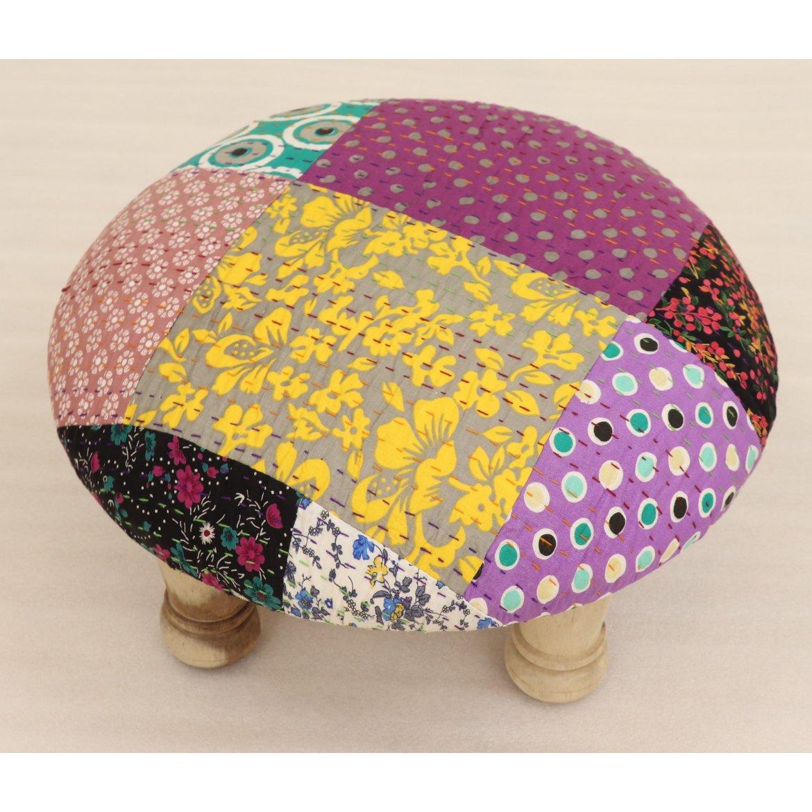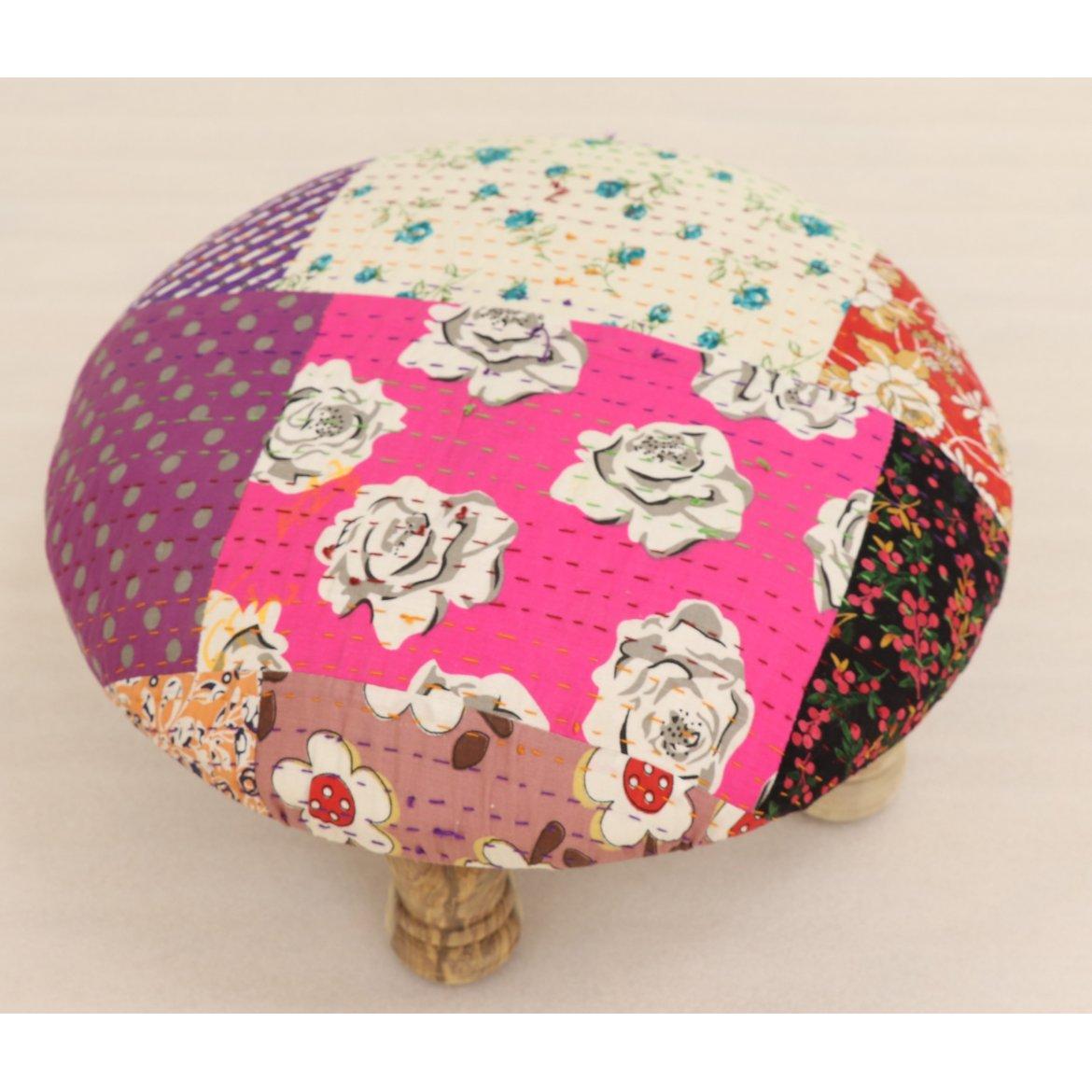 Der gepolsterte Pouf mit buntem Bezug ist aus hochwertigem massivem Palisanderholz gefertigt. Der Pouf ist ein praktisches Möbelstück für den Haushalt, das in jeden Raum transportiert werden kann. Die Poufs, die wir auf Lager haben, können Sie persönlich besichtigen oder auf Bestellung bestellen. Indische Kolonialmöbel aus massivem Palisander.