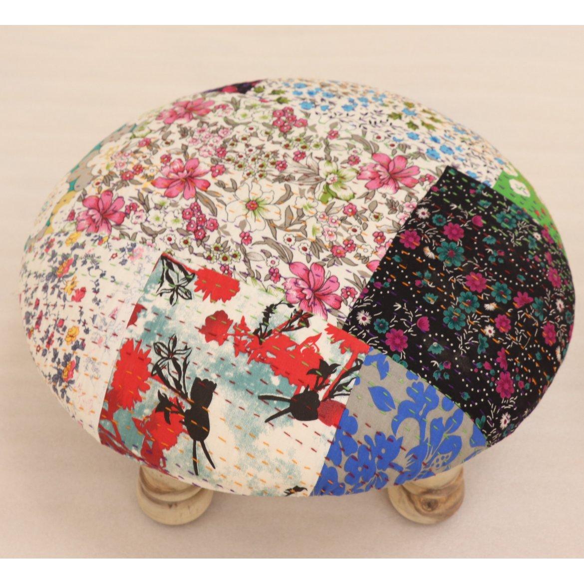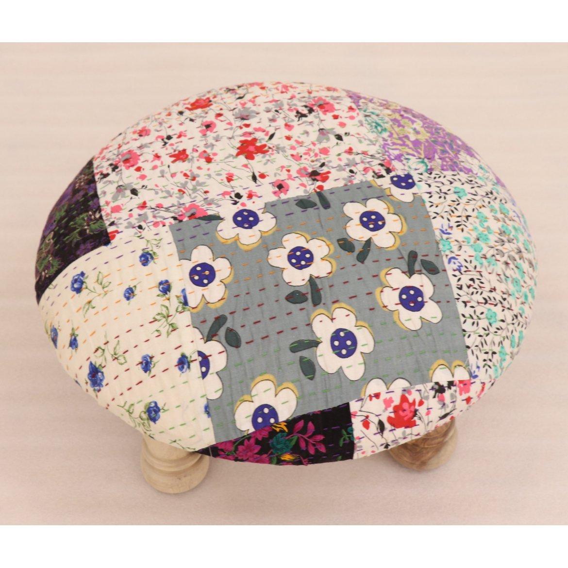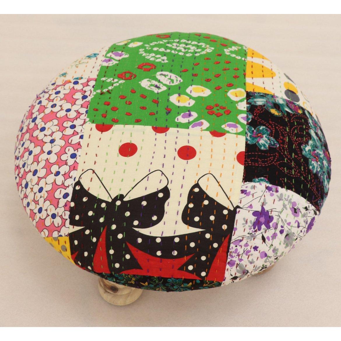Der gepolsterte Pouf mit buntem Bezug ist aus hochwertigem massivem Palisanderholz gefertigt. Der Pouf ist ein praktisches Möbelstück für den Haushalt, das in jeden Raum transportiert werden kann. Die Poufs, die wir auf Lager haben, können Sie persönlich besichtigen oder auf Bestellung bestellen. Indische Kolonialmöbel aus massivem Palisander.