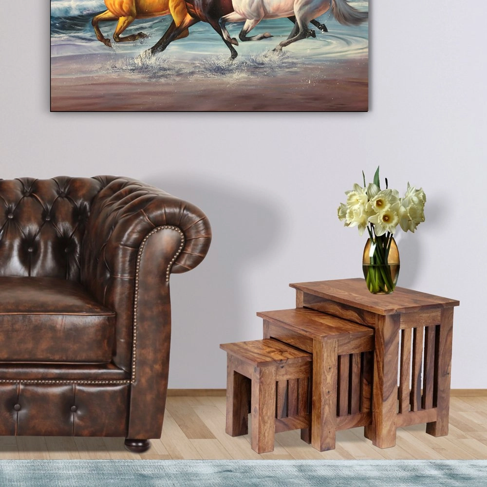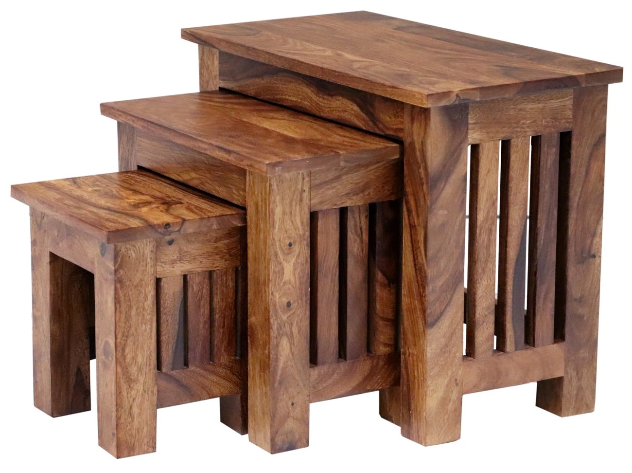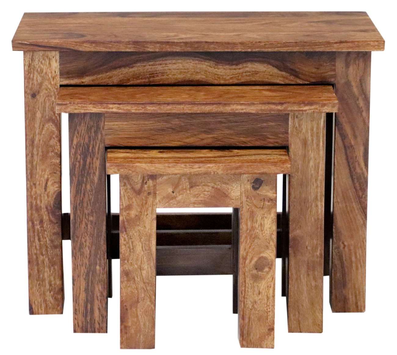 Odkládací stolky masiv Rami sada 3 ks jsou vyrobeny z kvalitního masivního palisandrového dřeva. Odkládací stolky z masivu které máme skladem se dají prohlédnout osobně nebo objednat na zakázku v kterémkoliv z našich nabízených odstínů! Indický koloniální nábytek palisandr masiv.