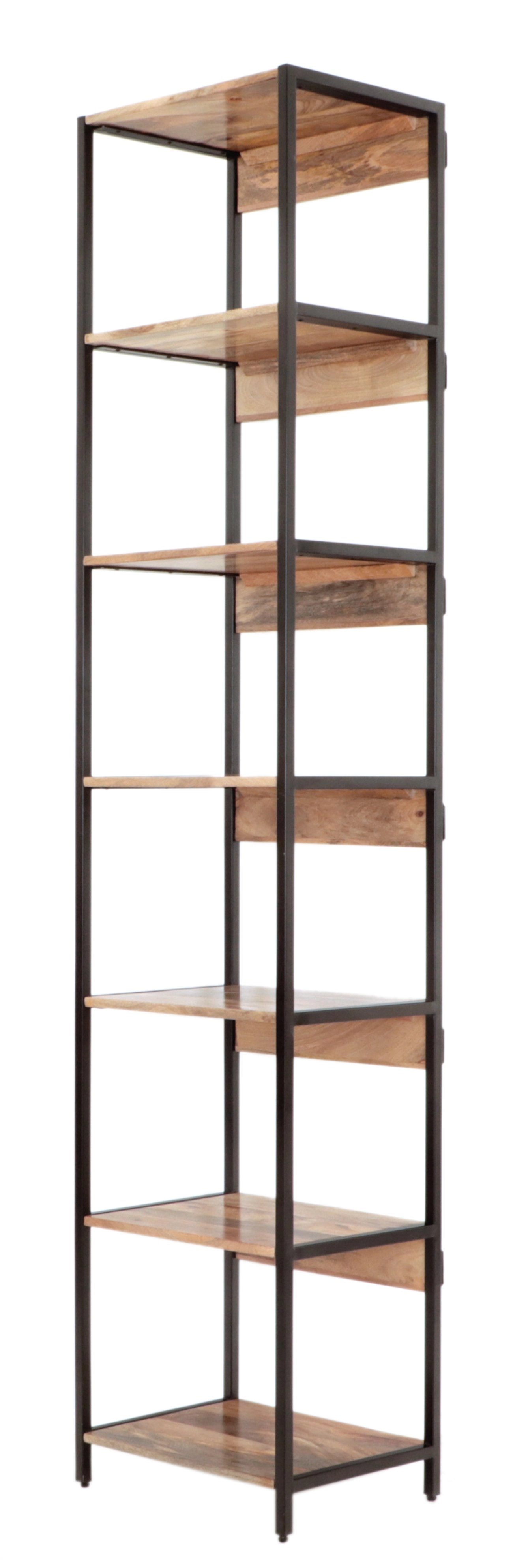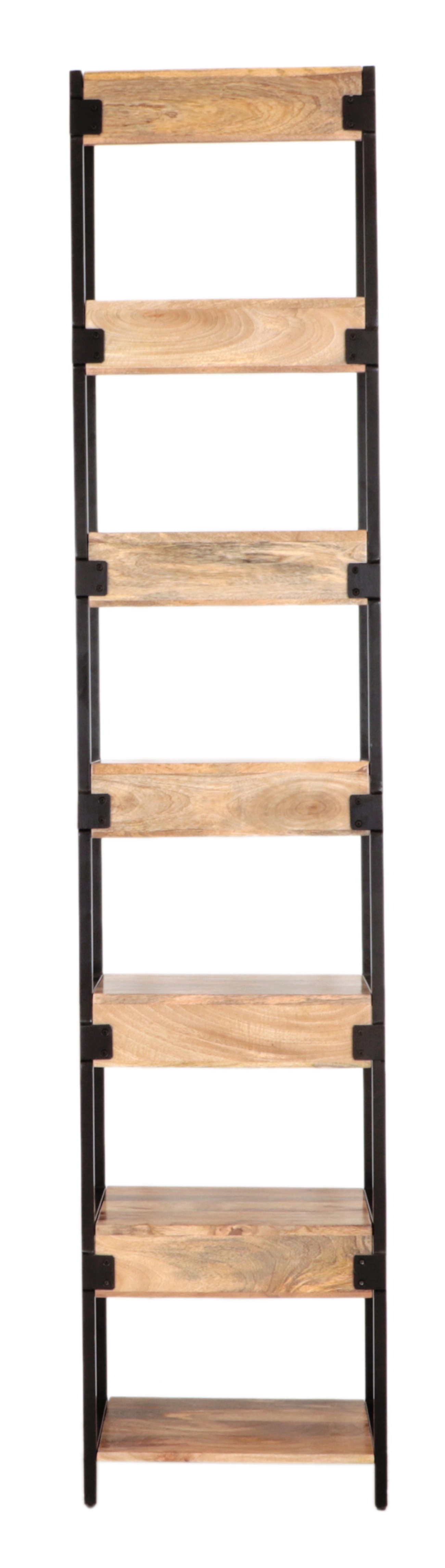 Otevřená regálová knihovna 45x213x35, vyrobená z kvalitního indického mangového dřeva, přináší kousek exotiky do vašeho domova. Díky svému unikátnímu industriálnímu designu, který kombinuje teplé tóny masivního dřeva s robustní kovovou konstrukcí, se stává nejen praktickým, ale i stylovým prvkem vaší domácnosti. Každý regál a police z masivu jsou originální díky přírodním vzorům a tvarům, které mangové dřevo nabízí.