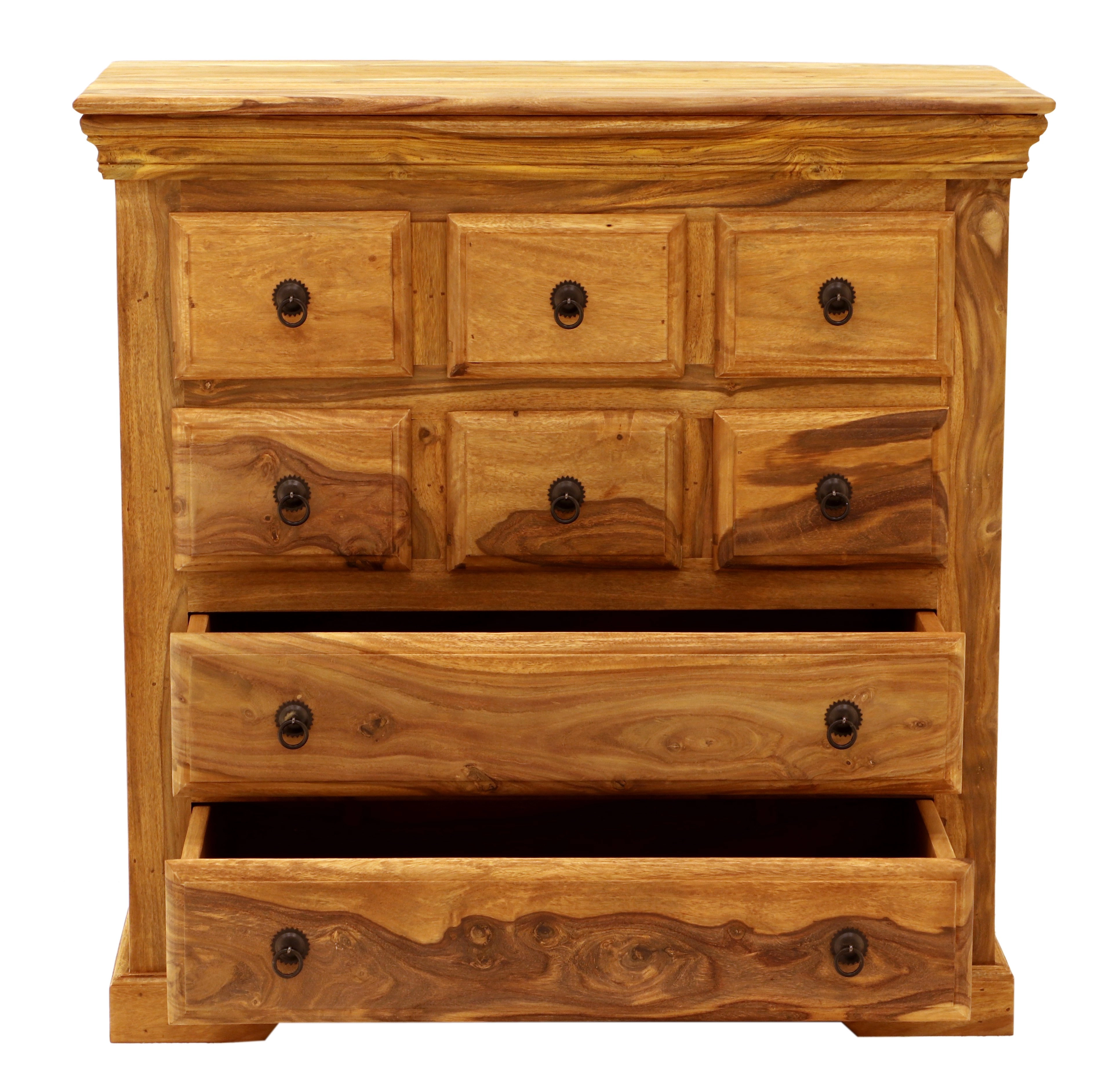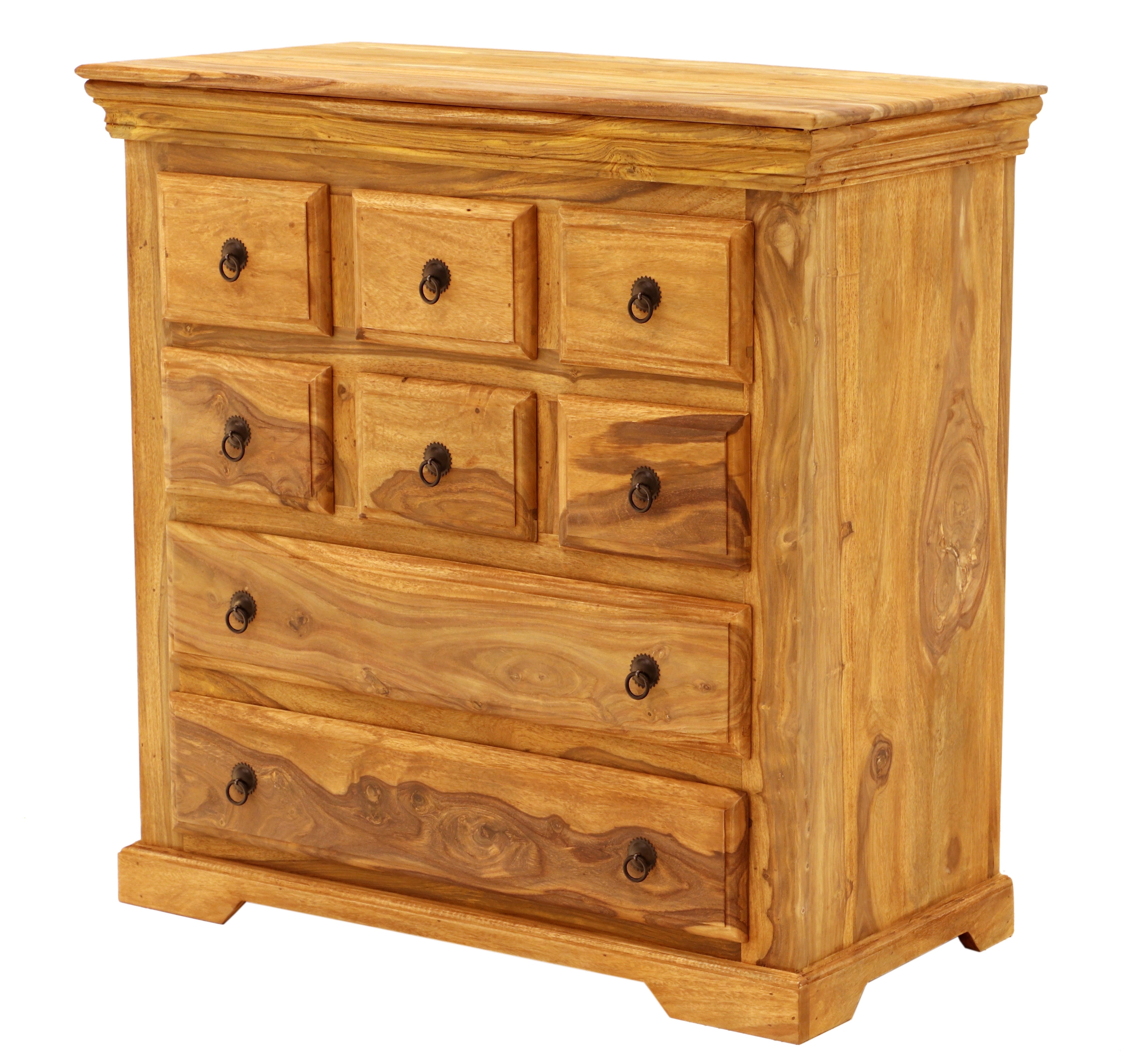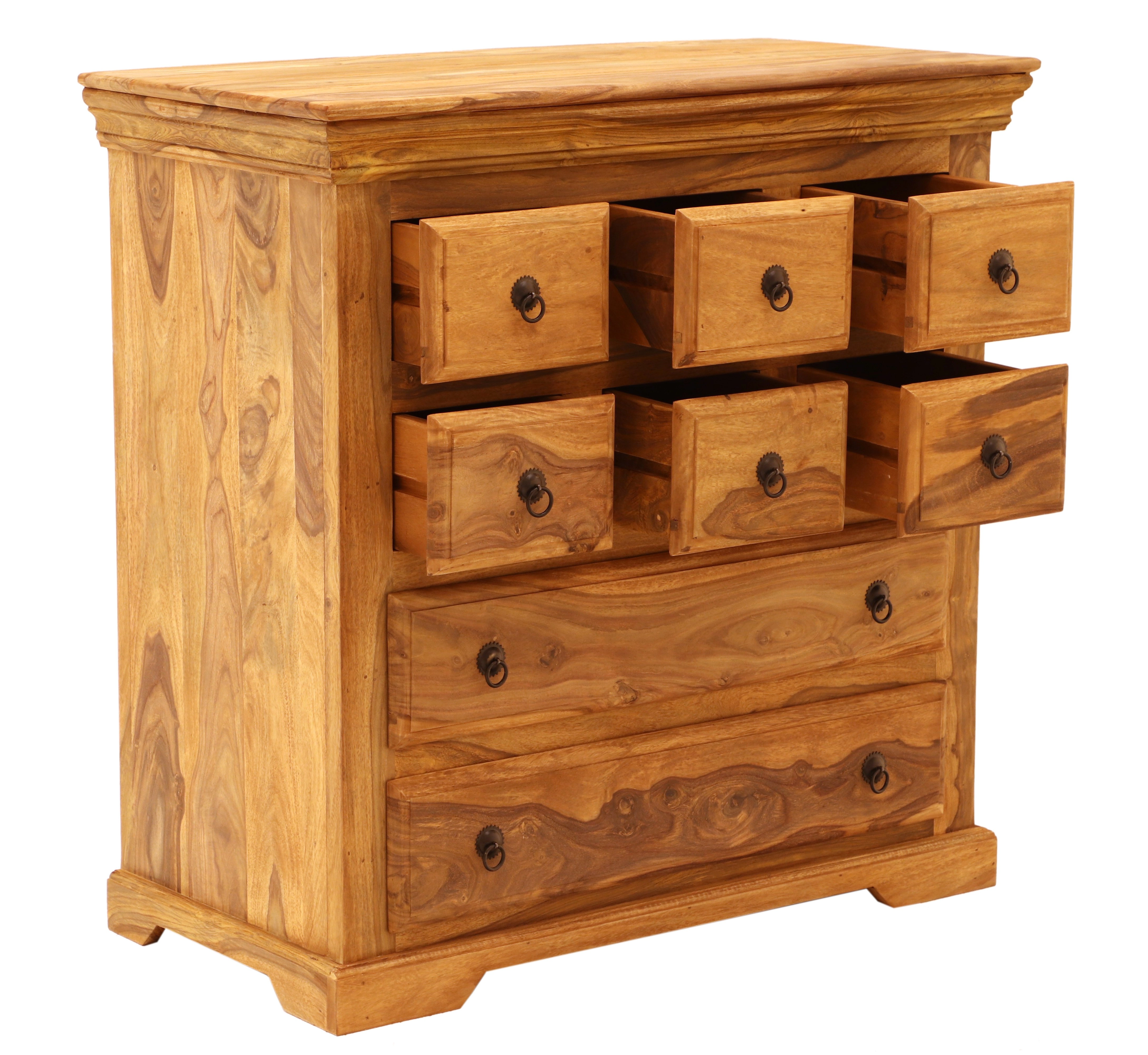 Představujeme vám jedinečnou rustikální komodu z dřeva palisandr o rozměrech 90x90x45 cm, která se stane skvělým doplňkem vaší předsíně. Tento rustikální nábytek je nejen esteticky přitažlivý, ale také vysoce funkční díky svým 8 zásuvkám, které nabízí dostatek úložného prostoru pro vaše potřeby. Vyrobená z kvalitního palisandru, který je známý svou odolností a krásnou texturou, komoda přináší do vašeho domova kousek indické elegance a nadčasového designu. Skvěle se hodí do rustikálních interiérů, kde vytvoří harmonický a útulný prostor. Díky své universální velikosti a stylu může být tato rustikální komoda snadno kombinována s dalšími prvky rustikálního nábytku, jako jsou rustikální jídelní stoly, rustikální knihovny, rustikální židle a rustikální vitríny. Komoda z Indie je nejen praktická, ale také jedinečná díky přirozené kresbě dřeva, která z každého kusu činí originální a neopakovatelný kousek.