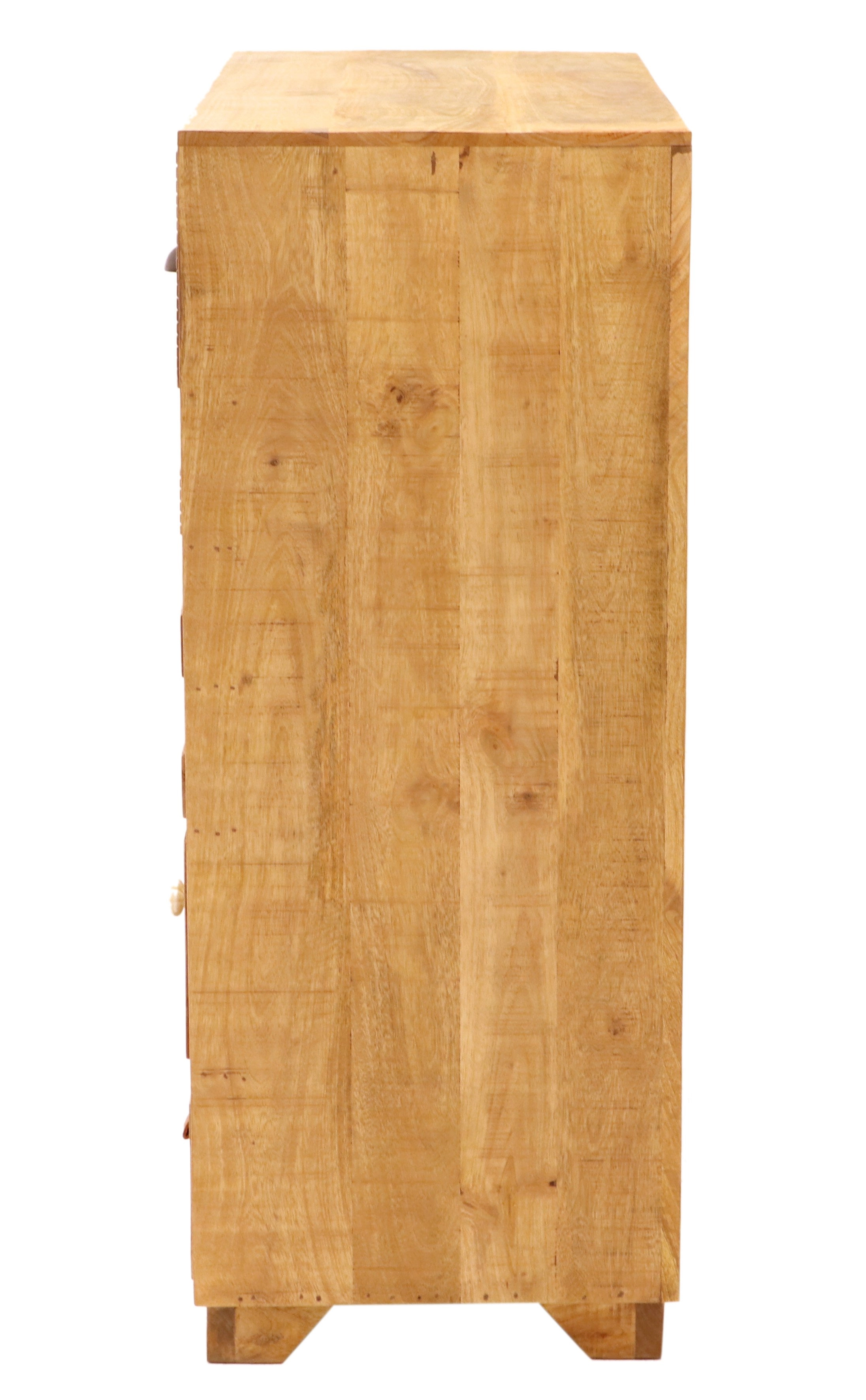 Obohaťte svůj domov o kus rustikálního šarmu s naší komodou rustikální z manga, která okamžitě přináší atmosféru klidu a elegance do vašeho interiéru. Tato nádherná komoda, vyrobená z kvalitního mangového dřeva, které je známé svou odolností a jedinečnou texturou, pochází přímo z Indie – země bohaté na tradice a řemeslné umění.