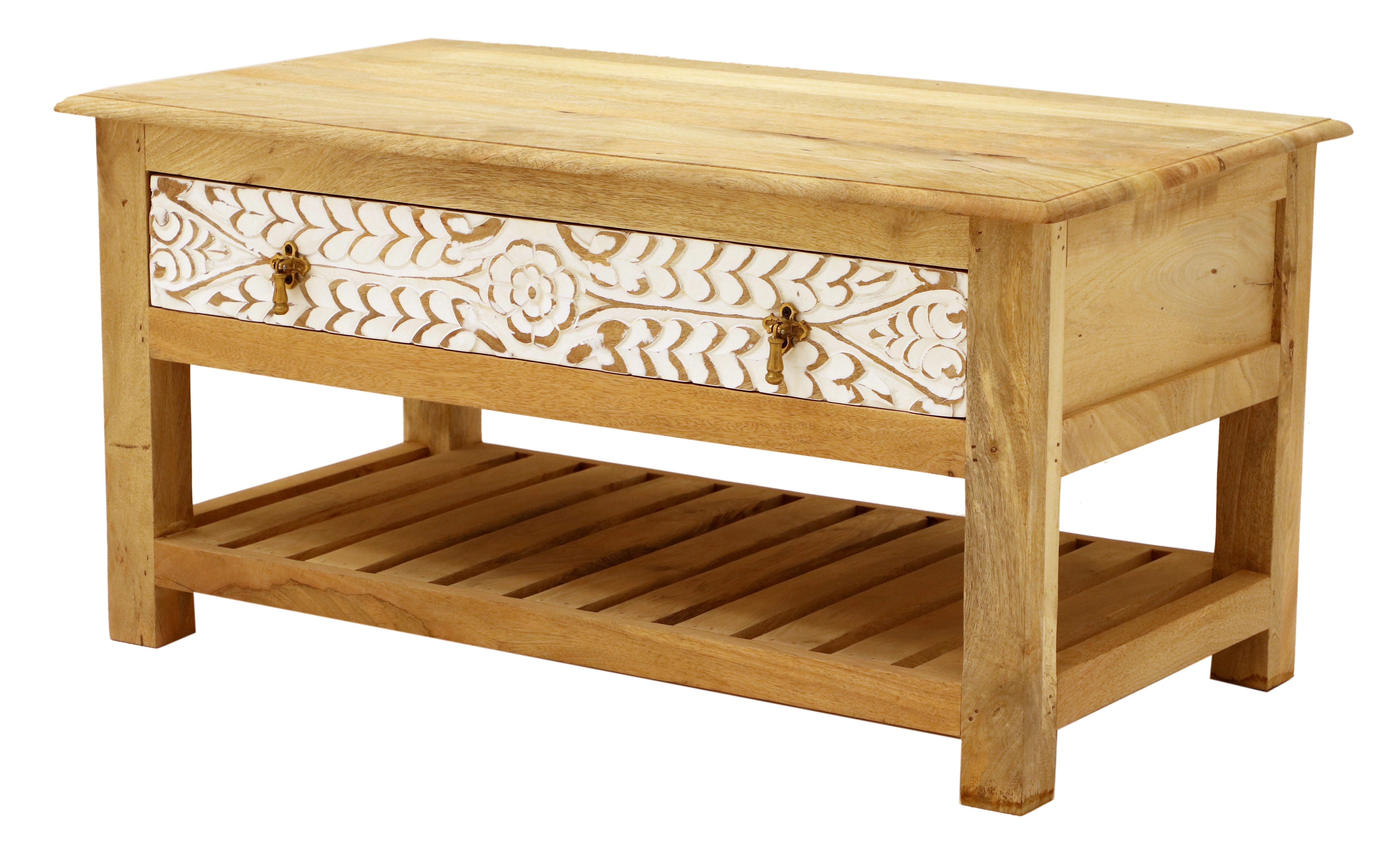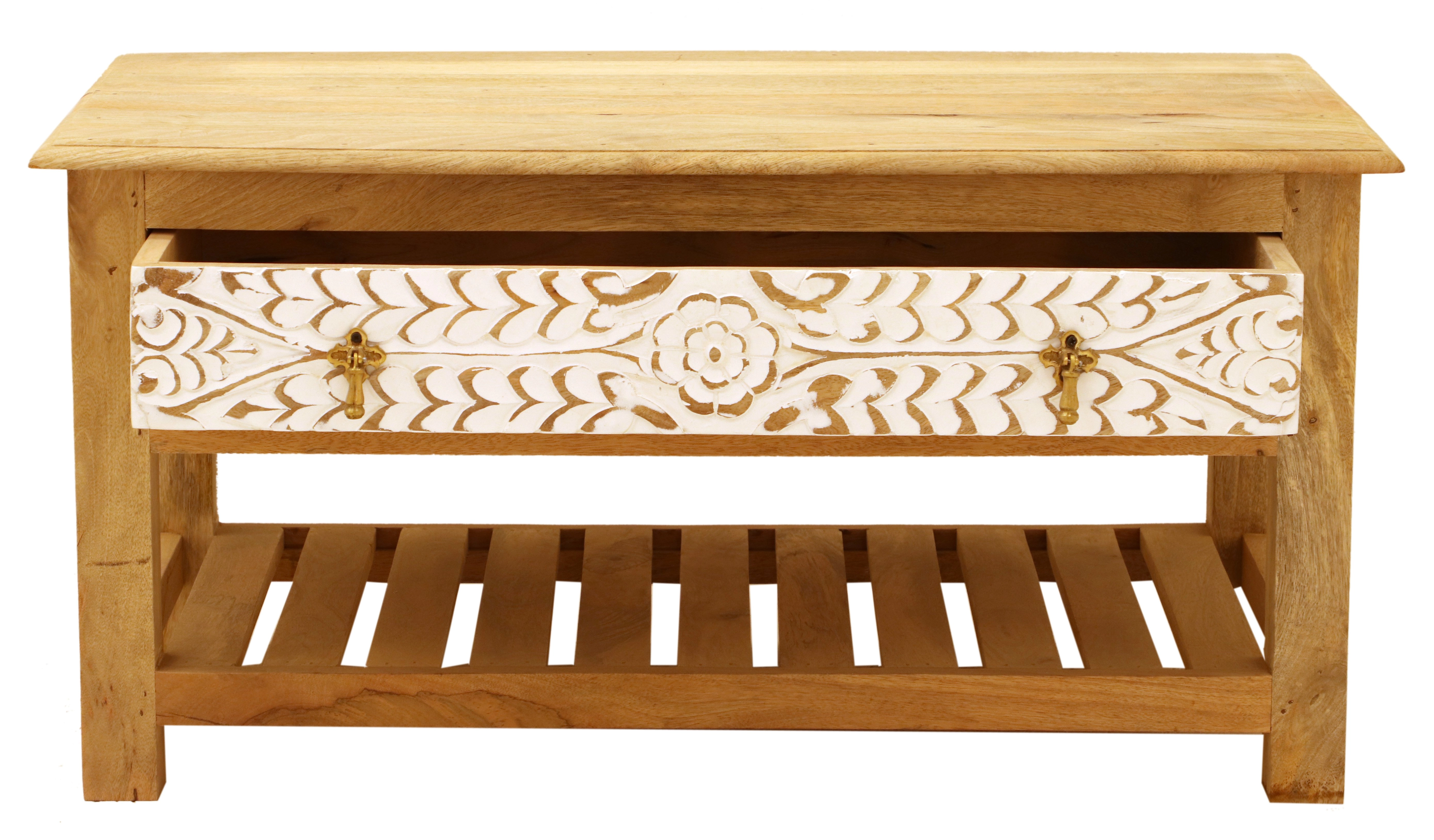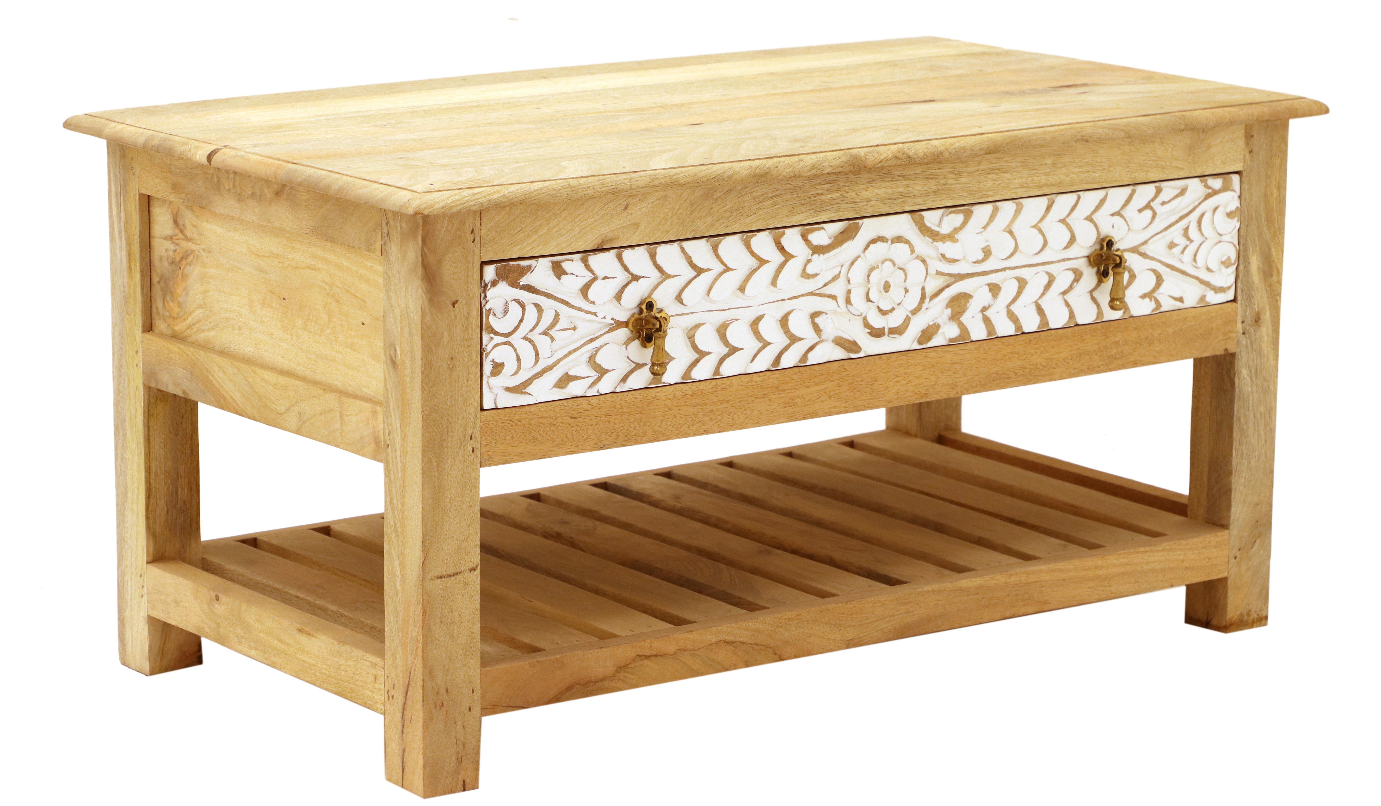 Stolek je vybaven dvěma praktickými zásuvkami, díky kterým budete mít své nezbytnosti vždy po ruce. Odkládací deska nabízí dostatek prostoru pro umístění časopisů, ovladačů nebo dekorativních předmětů. Toto rustikální mistrovské dílo se skvěle hodí k dalším kouskům rustikálního nábytku, jako jsou rustikální skříňka, knihovna z masivu, dřevěná lavice a dřevěný jídelní stůl.