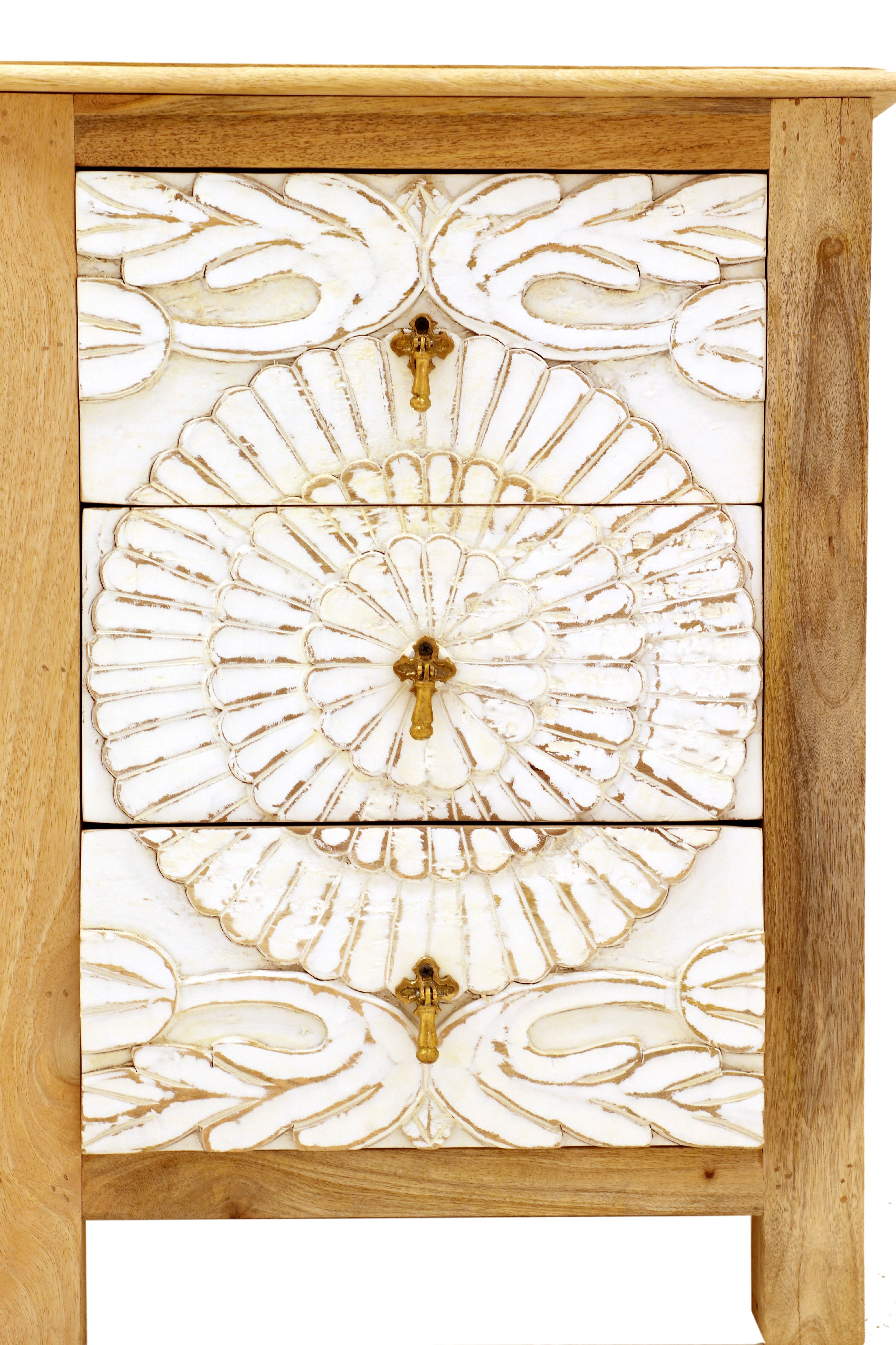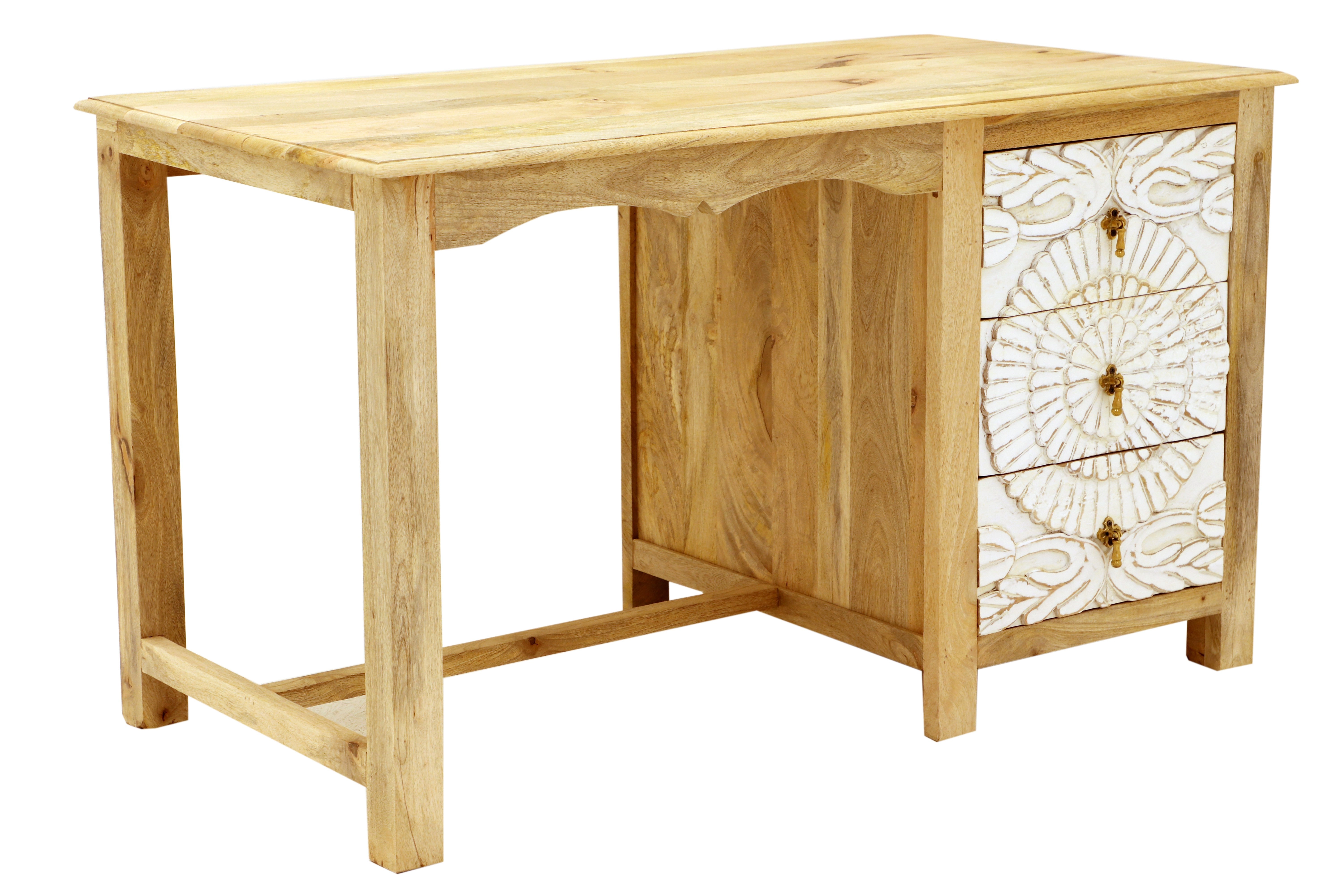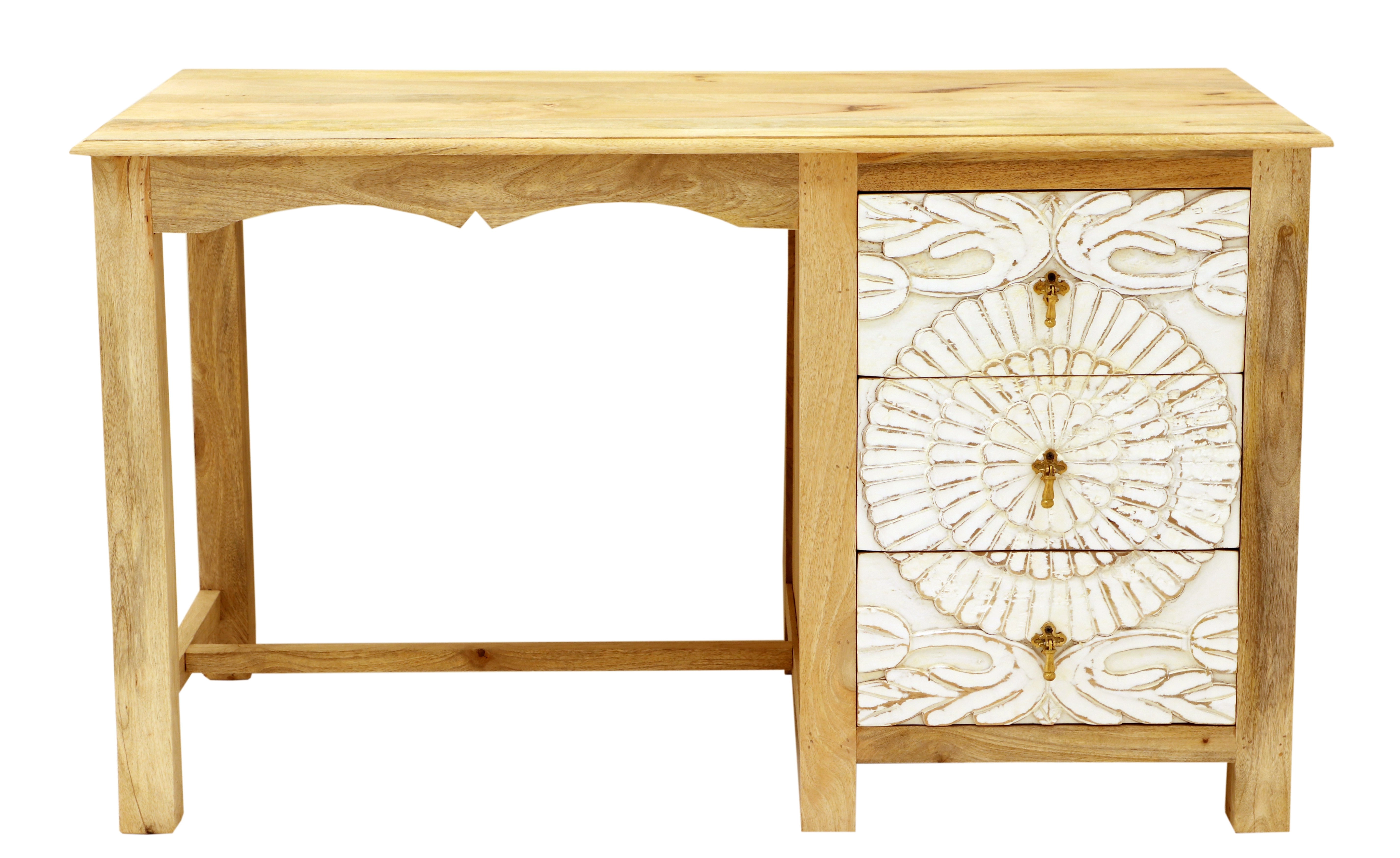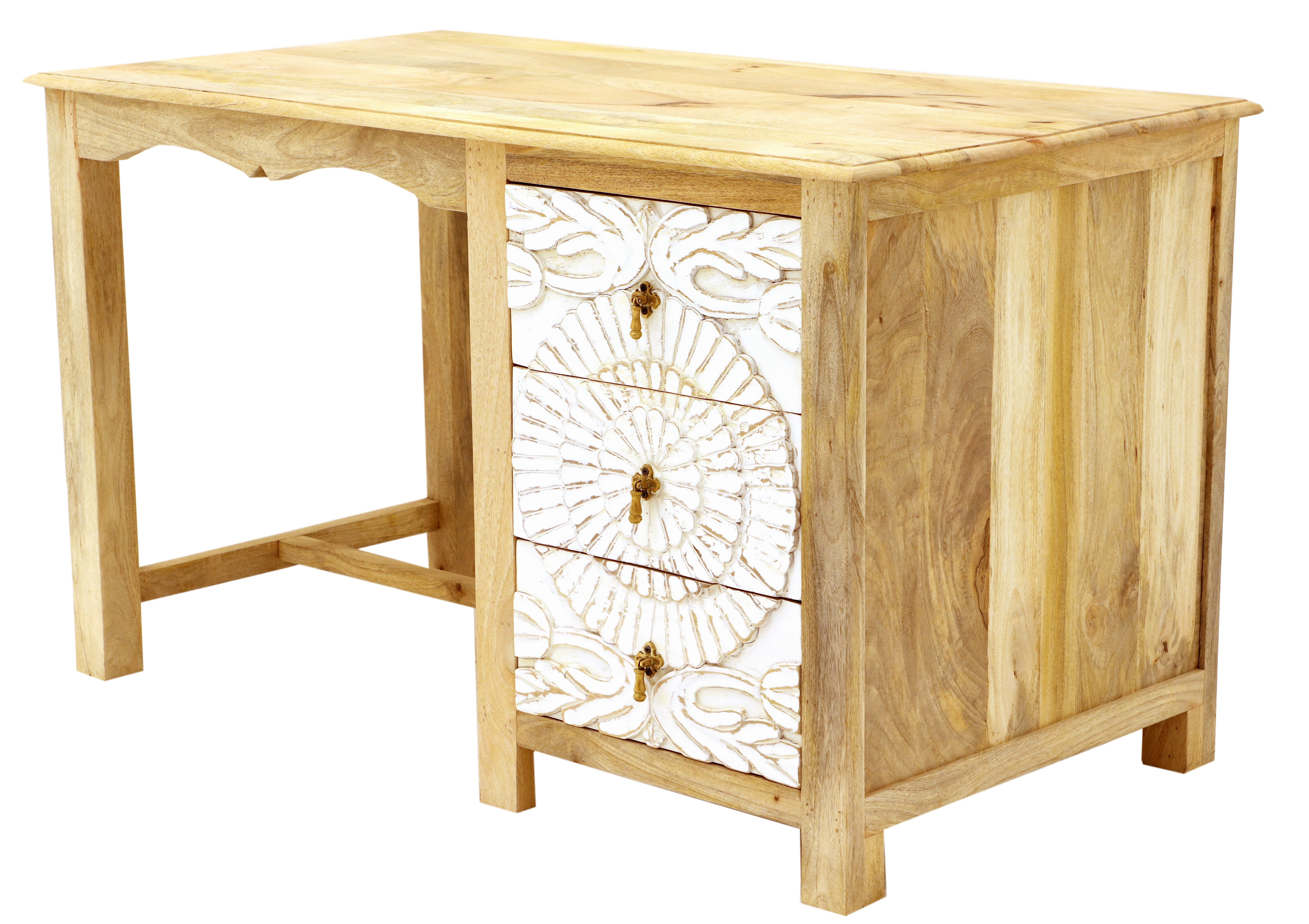 Zažijte kouzlo exotické elegance s naším Psacím stolem rustikálním z dřeva mango o rozměrech 130x76x70 cm. Tento jedinečný kus patří do naší Kolekce SITA a pochází z daleké Indie, kde byl pečlivě vyřezán z vysoce kvalitního masivu indického manga. Díky svému unikátnímu designu, který kombinuje přírodní krásu dřeva s praktickými bílými prvky a elegantními kovovými úchyty, se tento stůl stane středobodem vaší rustikální pracovny nebo kanceláře. Tři prostorné zásuvky poskytují dostatek úložného prostoru pro všechny vaše kancelářské potřeby, což z tohoto stolu činí nejen stylový, ale i funkční doplněk vašeho interiéru. Psací stůl rustikální je ideální volbou pro ty, kteří chtějí svůj domov obohatit o kousek s příběhem a charakterem, a zároveň hledají praktické řešení pro své pracovní prostředí.