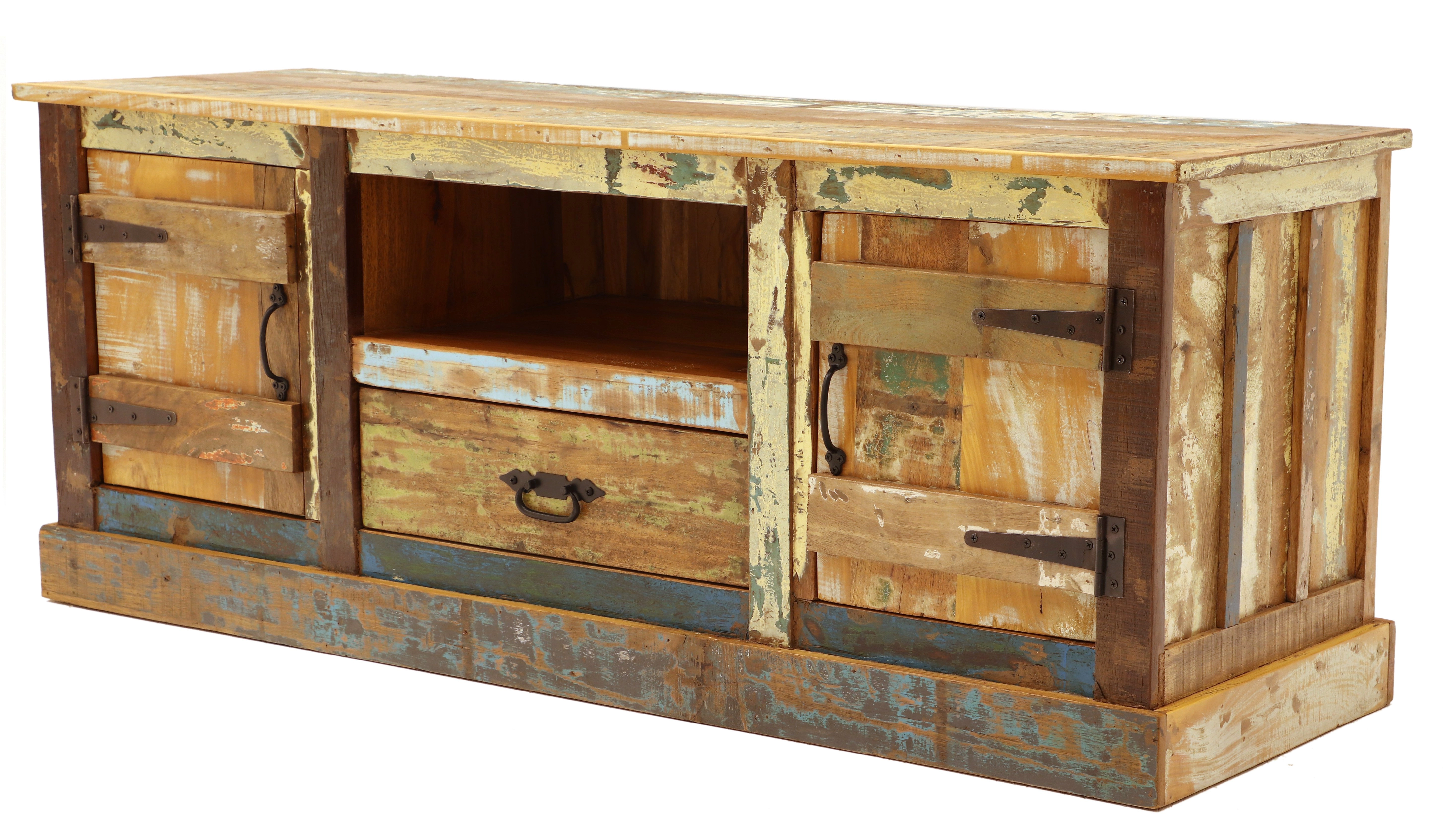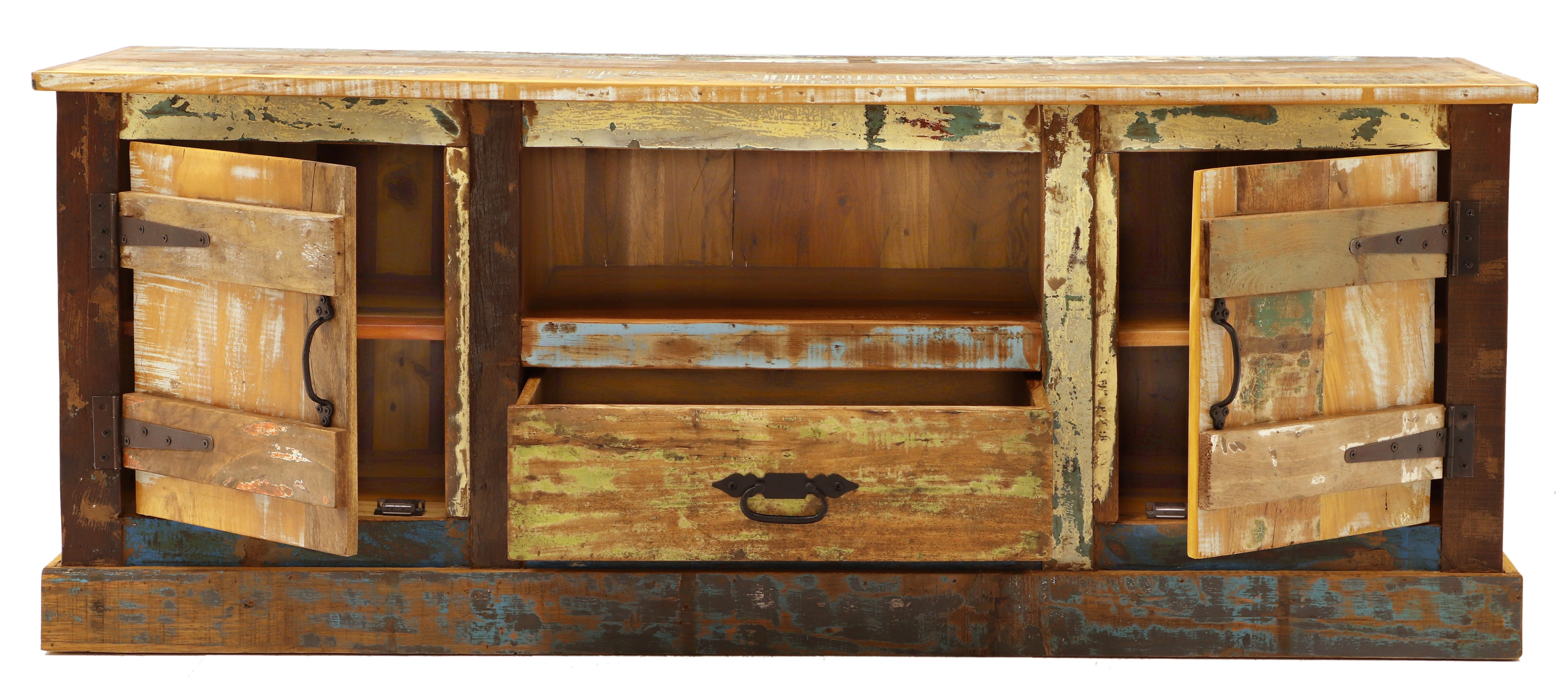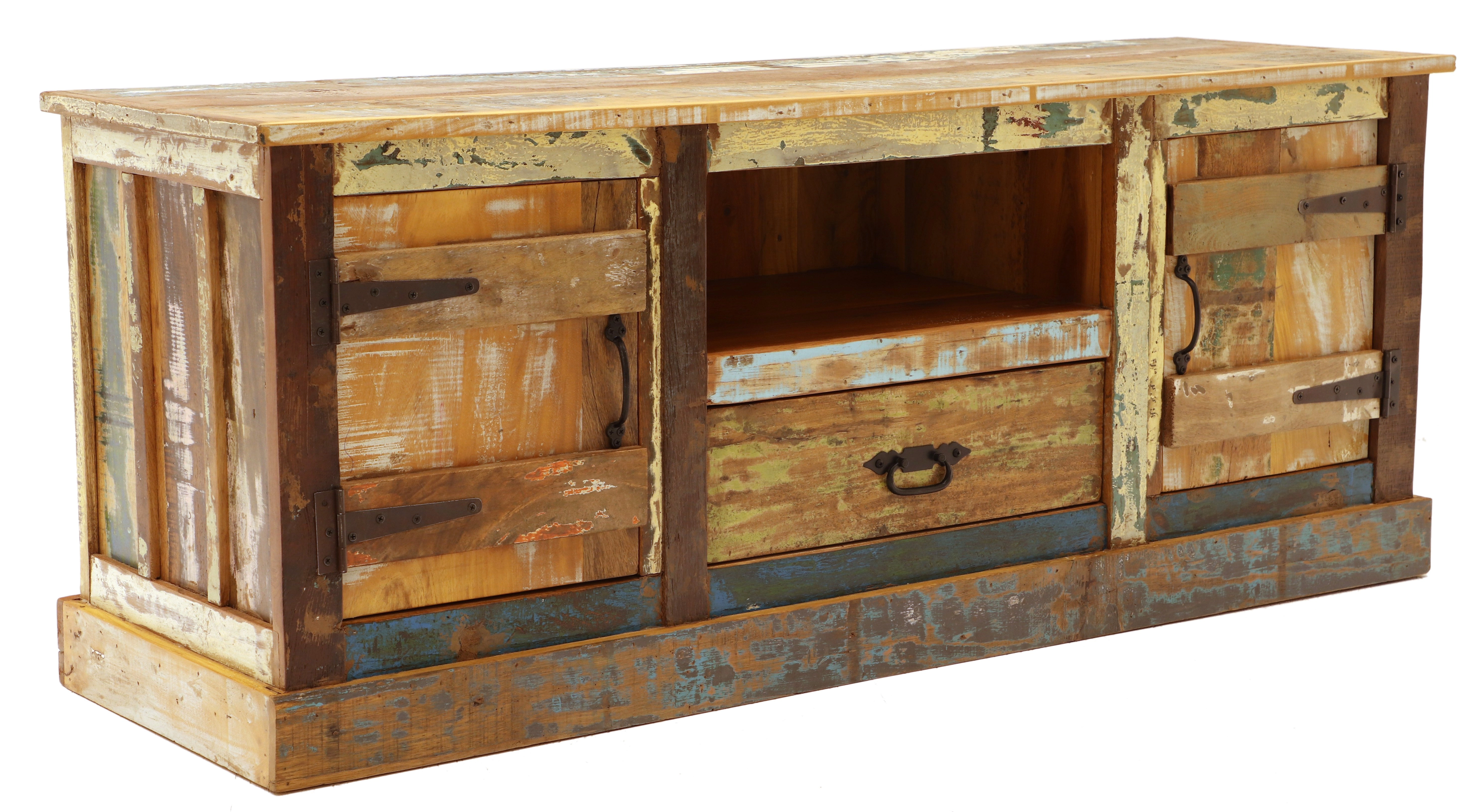 TV stolek rustikální z dřeva mango 150x60x45 představuje harmonické spojení tradičního indického řemesla s moderním designem, což zajišťuje jedinečnou atmosféru ve vašem obývacím pokoji. Tento impozantní rustikální nábytek, pocházející z Indie, je vyroben z masivního recyklovaného mangového dřeva, což mu propůjčuje neotřelý a autentický vzhled. Každý TV stolek je skutečným originálem díky ruční výrobě a unikátnímu barevnému provedení.