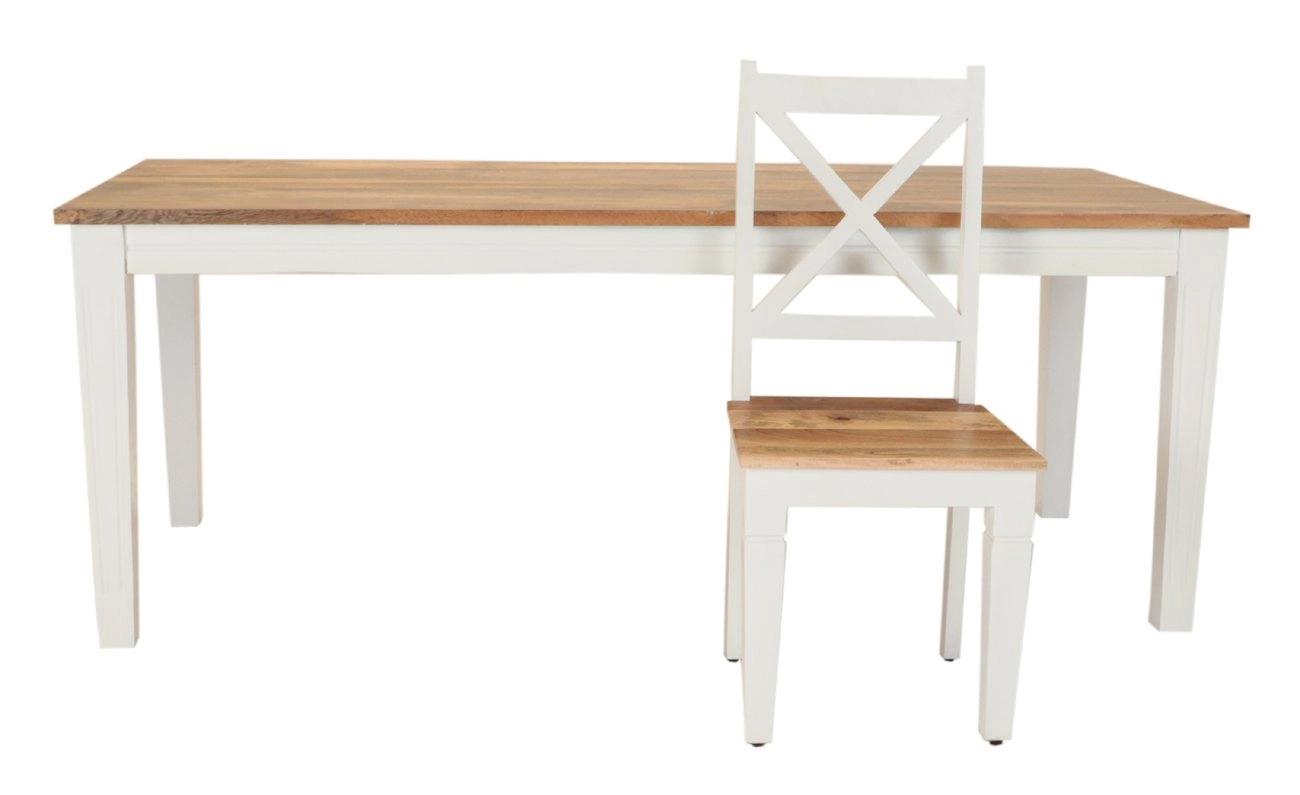 Tento jídelní set se skládá z prostorného stolu a osmi pohodlných židlí, všechny vyrobené z vysoce kvalitního indického manga, což zaručuje jejich pevnost a trvanlivost. Mango je známé svou jedinečnou kresbou dřeva a přitažlivým tónem, což činí každý kus naprosto unikátním. Stůl měří 175 cm na šířku, 90 cm na hloubku a 76 cm na výšku, což poskytuje dostatečný prostor pro pohodlné posezení osmi hostů u jednoho stolu.