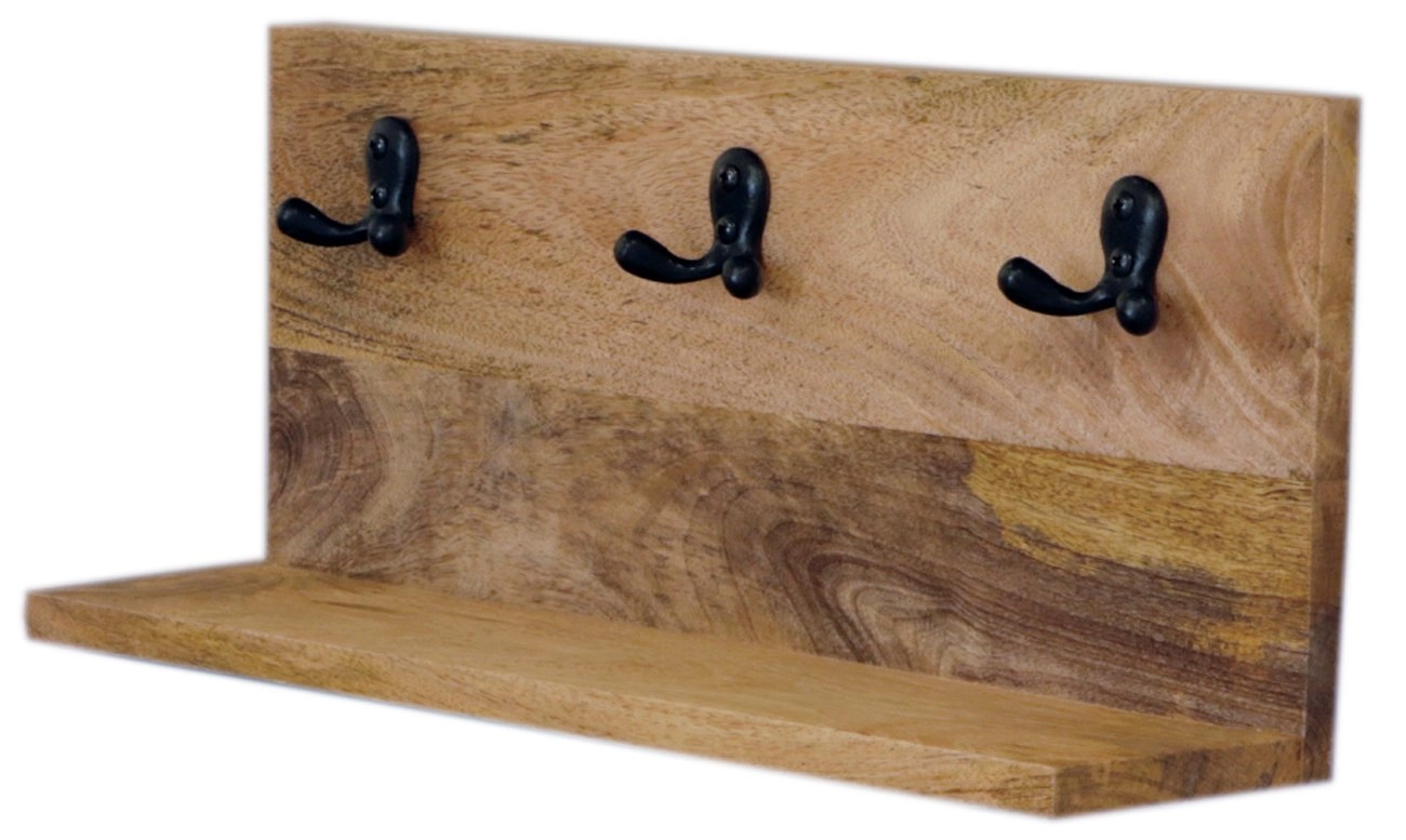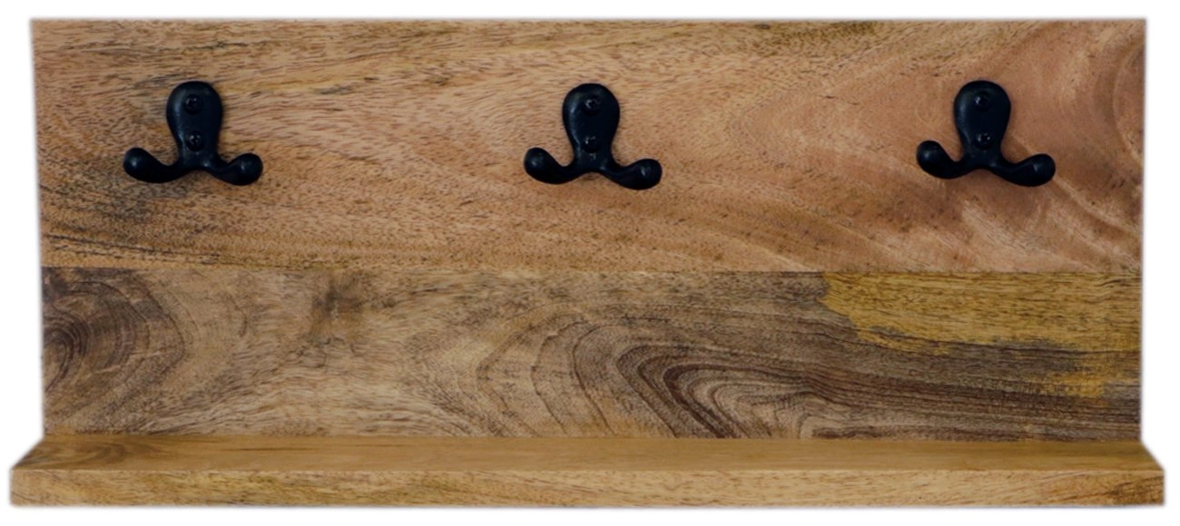Věšák je vybaven třemi robustními háčky, které poskytnou dostatek prostoru pro všechny vaše klíče. Je určen do předsíně a skvěle doplní závěsné police a další typy nábytku. Mangové dřevo je nejen estetické, ale i velmi odolné, což zajišťuje dlouhou životnost a spolehlivost tohoto věšáku.