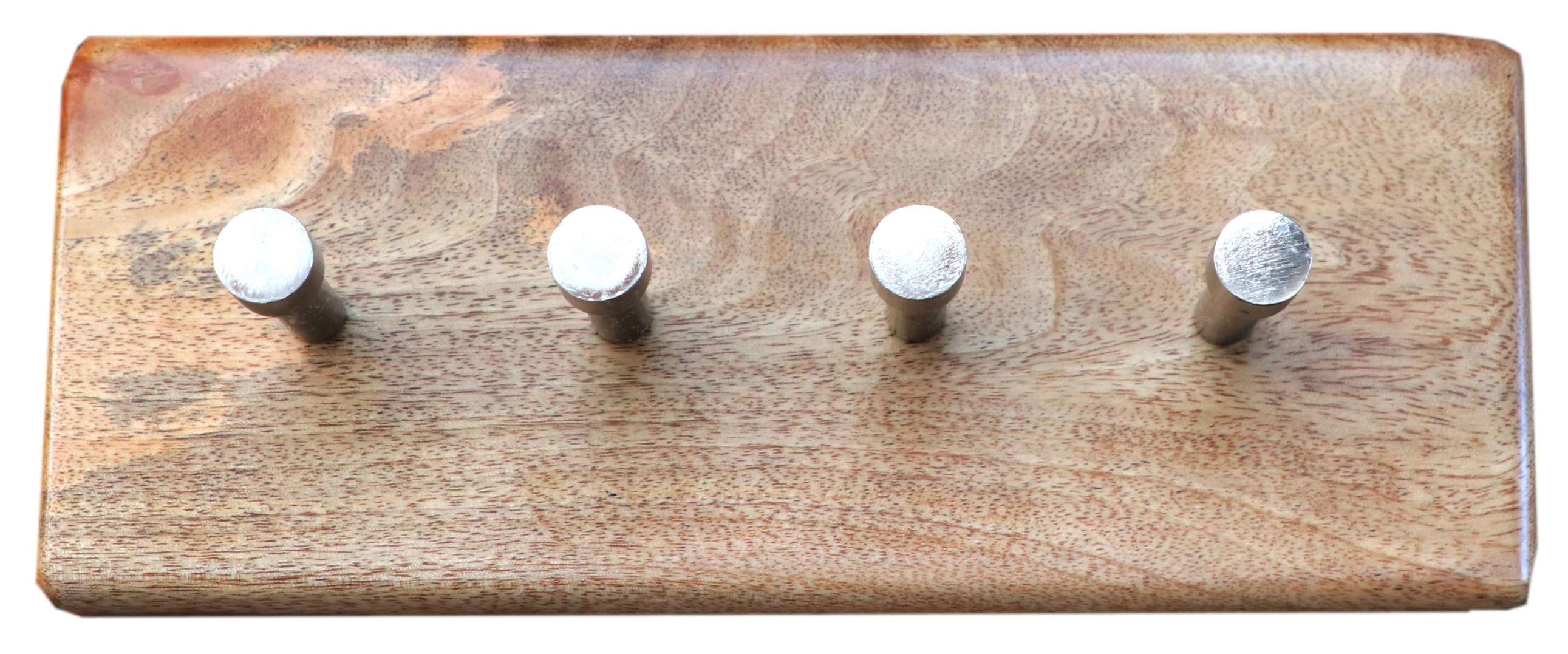 Věšák na klíče z masivu s 4 háčky je vyroben z indického manga. Věšáky na zeď z masivu, které máme skladem, si můžete prohlédnout v našem showroomu. Indický koloniální nábytek mango masiv.