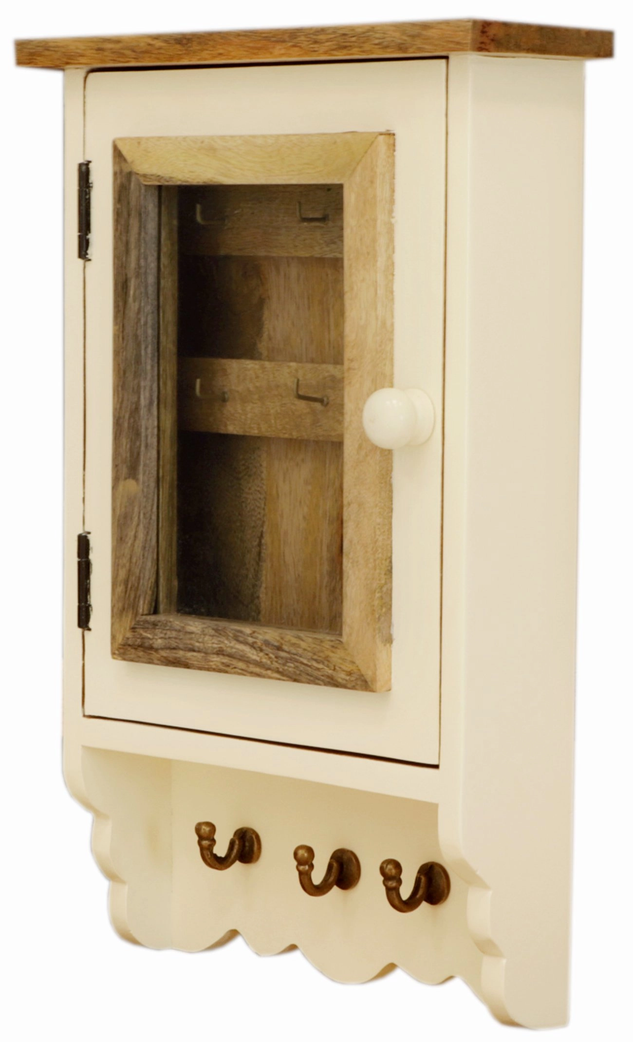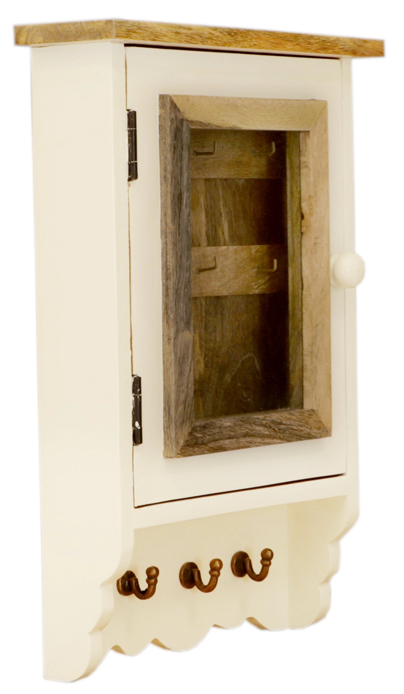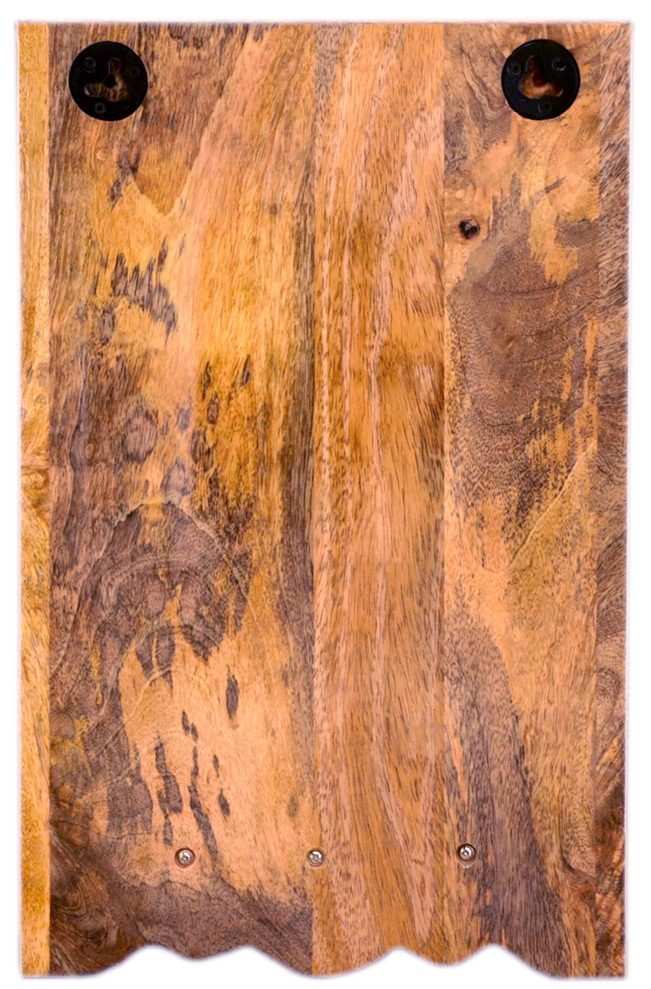Entdecken Sie den Zauber natürlicher Materialien mit unserem einzigartigen Schlüsselschränkchen aus Mangoholz. Dieses Stück Holzmöbel vereint Funktionalität und ästhetisches Design, das perfekt in Ihren Eingangsbereich passt. Das Schlüsselschränkchen mit den Abmessungen 35x50x10 cm ist handgefertigt in Indien aus hochwertigem Mango-Massivholz, was ihm einen einzigartigen Charakter und natürliche Schönheit verleiht. Der Schrank ist mit neun Griffen gestaltet, die es Ihnen ermöglichen, die Schlüssel der ganzen Familie einfach und übersichtlich zu organisieren. Dank des hängenden Designs eignet es sich hervorragend für jedes Interieur und spart Platz im Flur.
