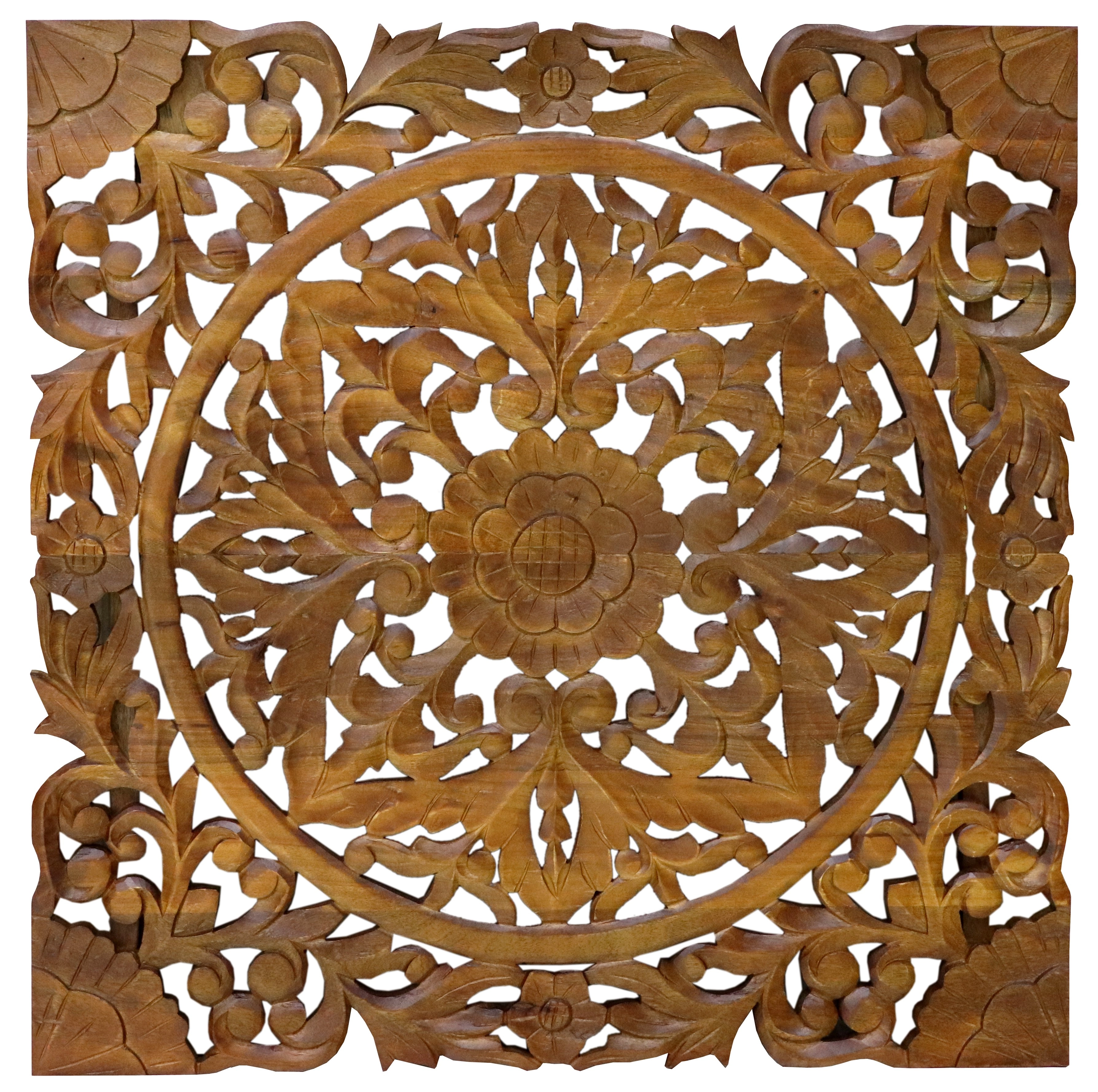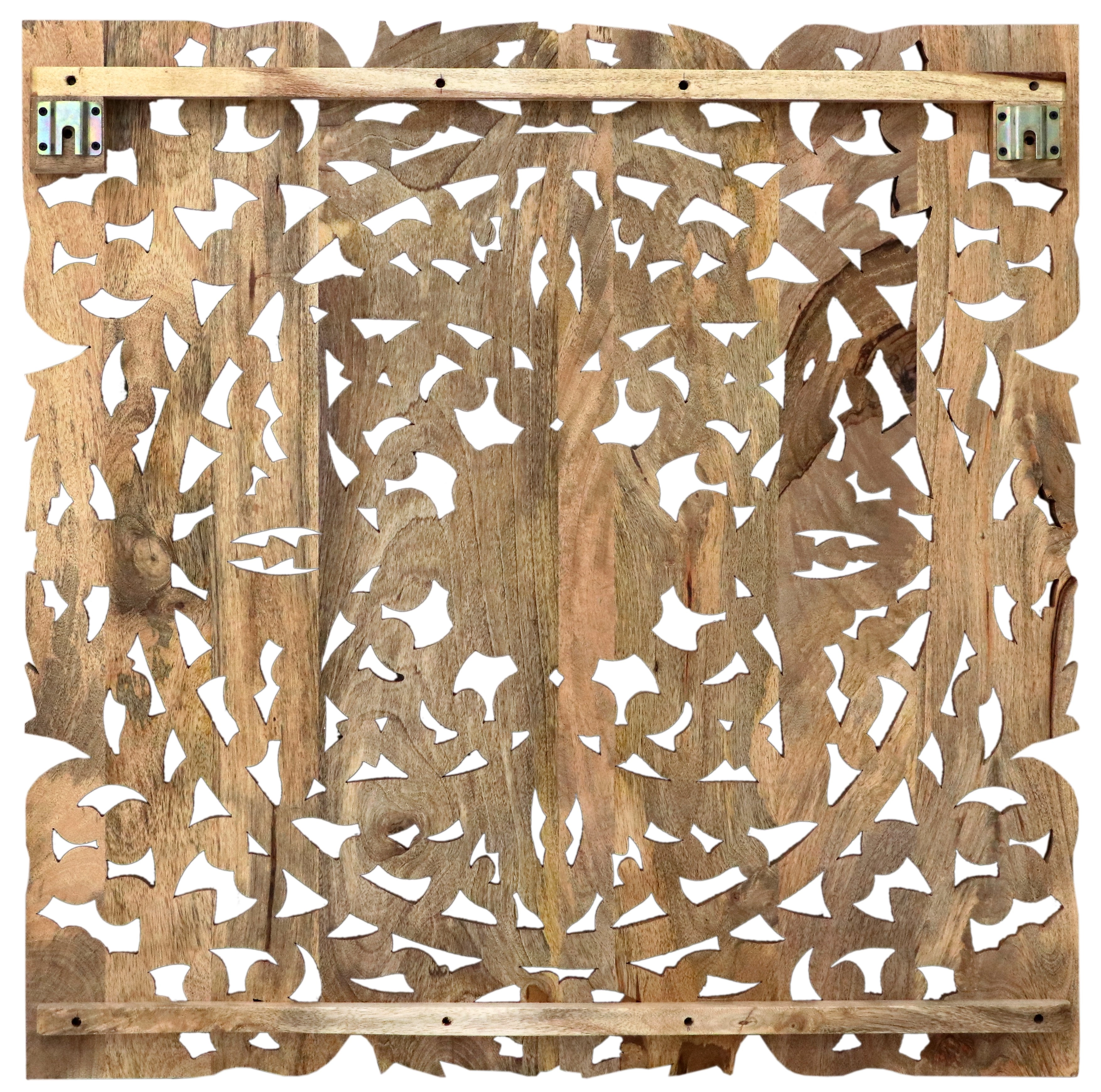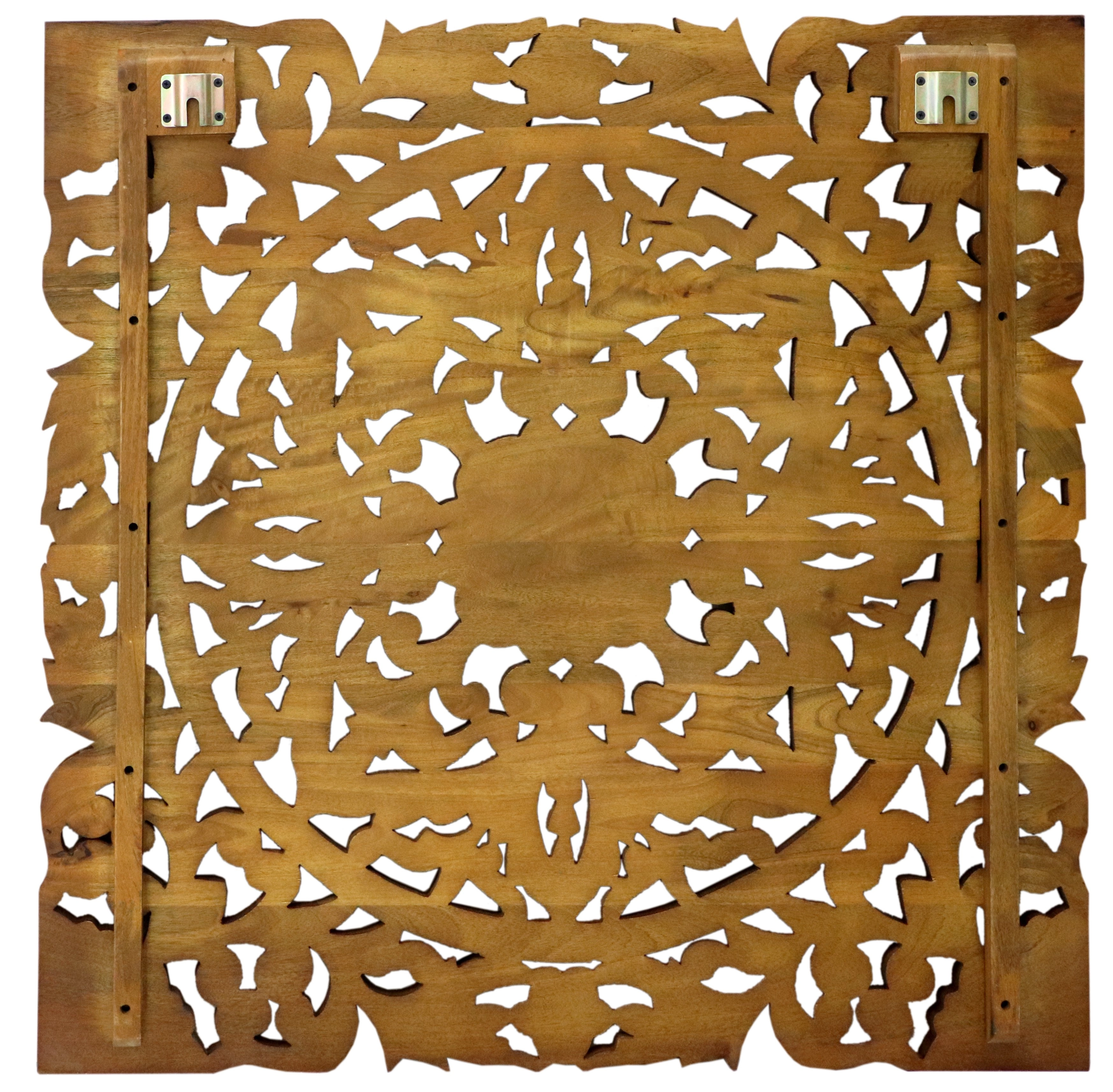Vyřezávaný obraz 100x100 je jedinečným uměleckým dílem, které v sobě snoubí tradiční indické řemeslo s moderním designem. Ručně vyřezávaný z kvalitního mangového dřeva, tento obraz vyniká nejen svou velikostí, ale především detailně propracovanými vzory. Každý kus je unikátní a odráží umělecké mistrovství a preciznost indických řemeslníků, kteří tento skvost vytvořili ve své stolařské dílně.