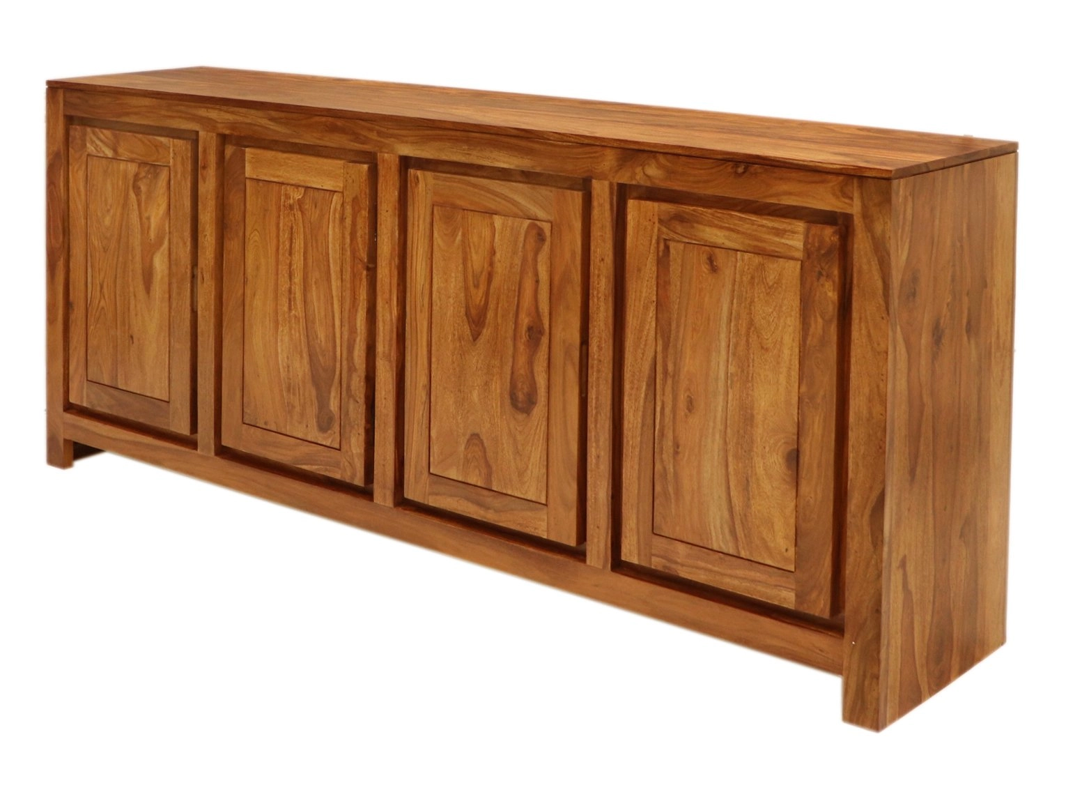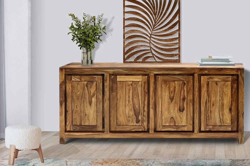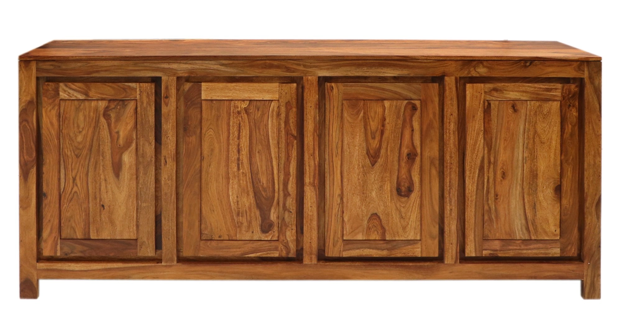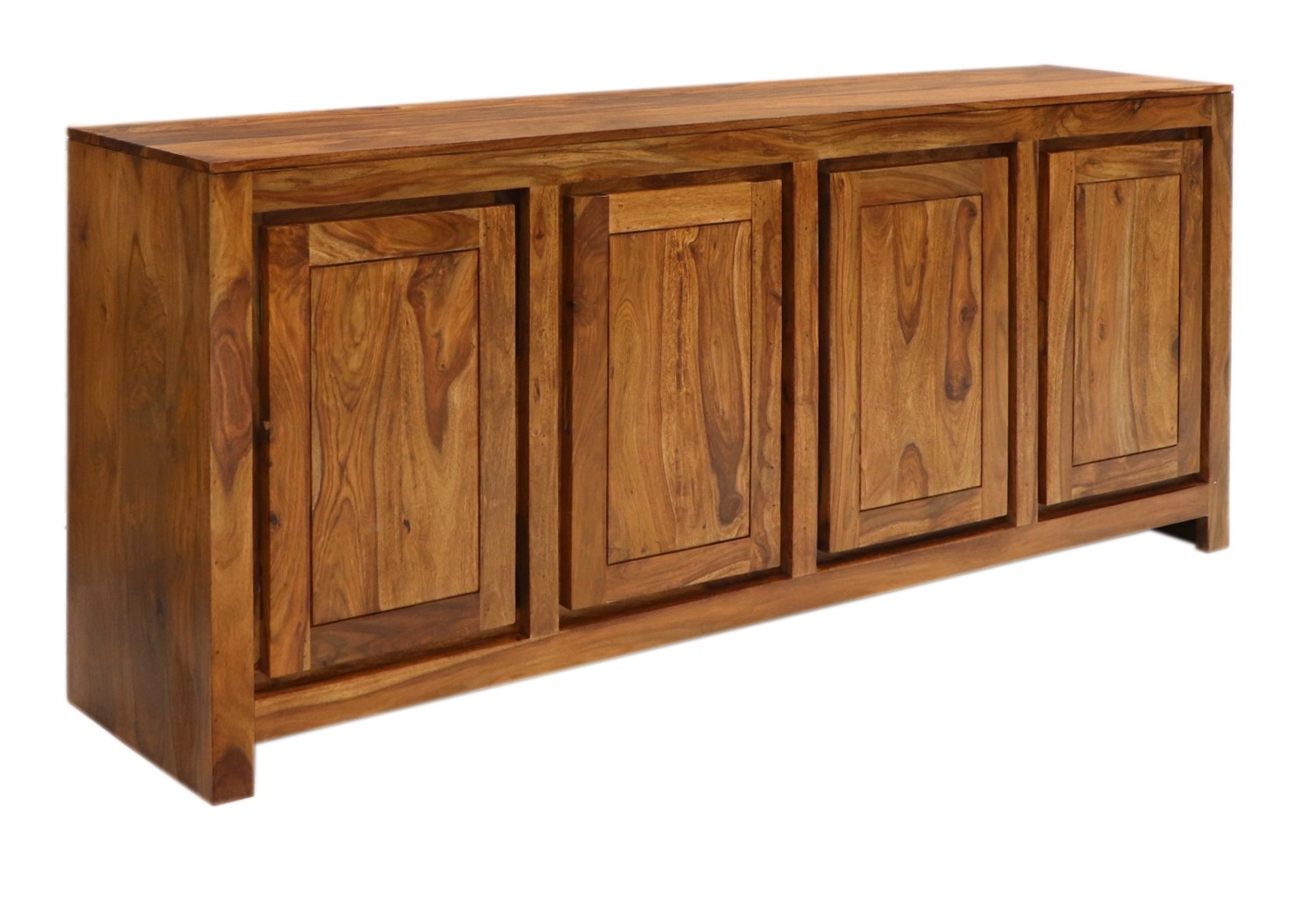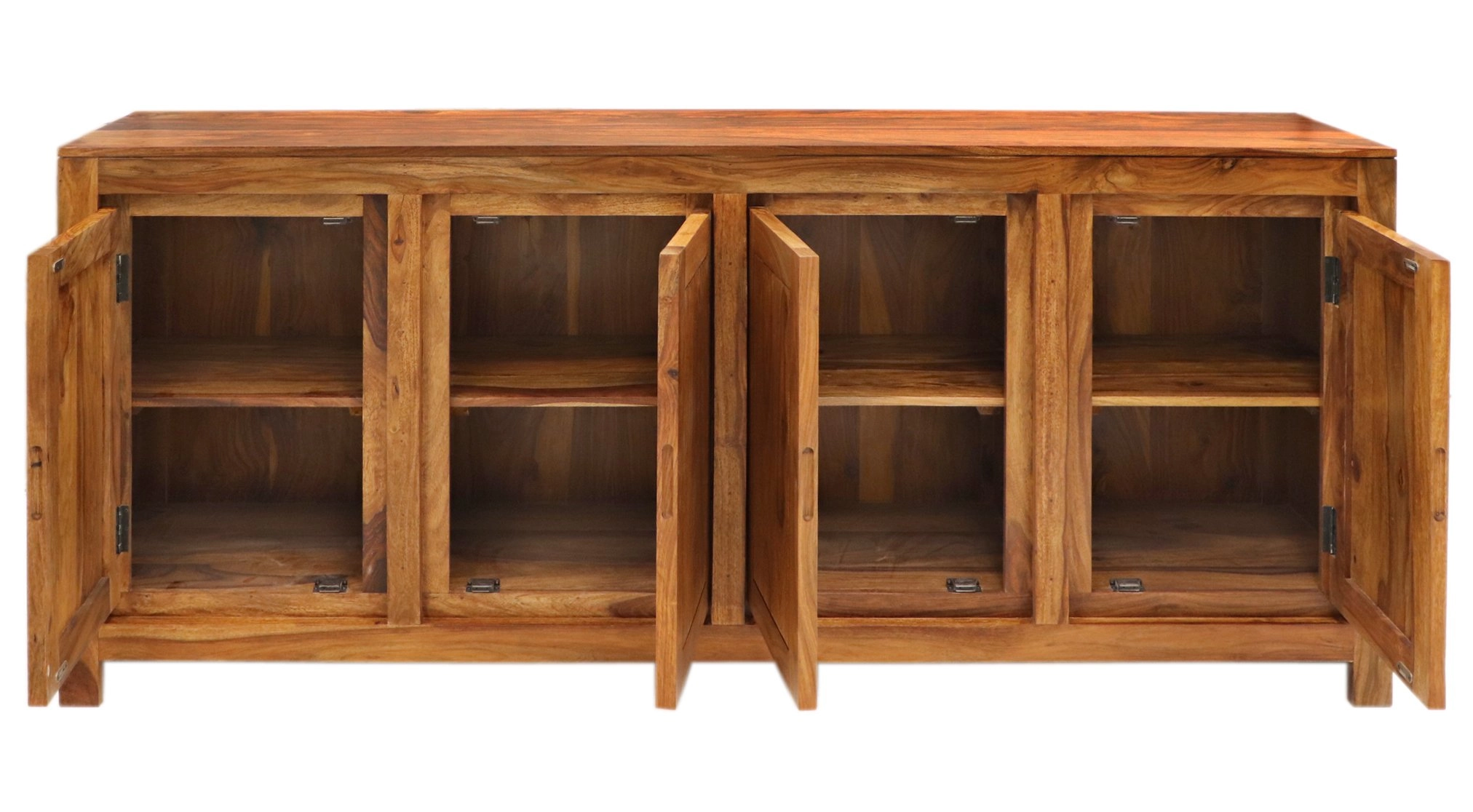 Komoda z masivu je vybavena čtyřmi dvířky, za kterými se skrývají vnitřní police, poskytující velkorysý úložný prostor. Díky tomuto uspořádání můžete snadno organizovat své osobní věci, oblečení či jinou domácí potřebu. Robustní konstrukce a kvalitní zpracování z palisandrového dřeva zajišťují dlouhou životnost a stabilitu tohoto nábytku.