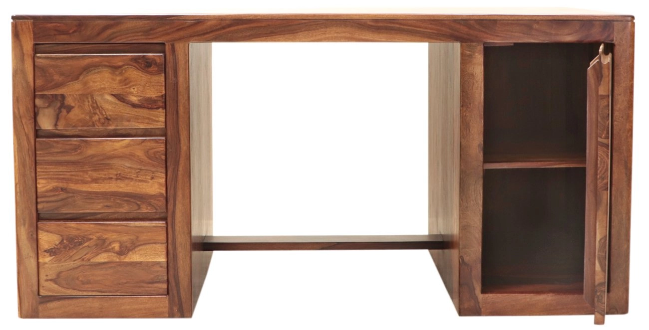 Klíčové vlastnosti tohoto luxusního kancelářského nábytku zahrnují tři praktické zásuvky pro uspořádání vašich dokumentů a jedny dvířka s úložným prostorem, které umožňují efektivní využití prostoru. Psací stůl z masivu palisandr se skvěle hodí do každé kanceláře nebo pracovny, kde oceníte jeho eleganci a praktičnost. Tento stůl je ideálním doplňkem pro ty, kteří vyhledávají nadčasový design a prvotřídní zpracování.