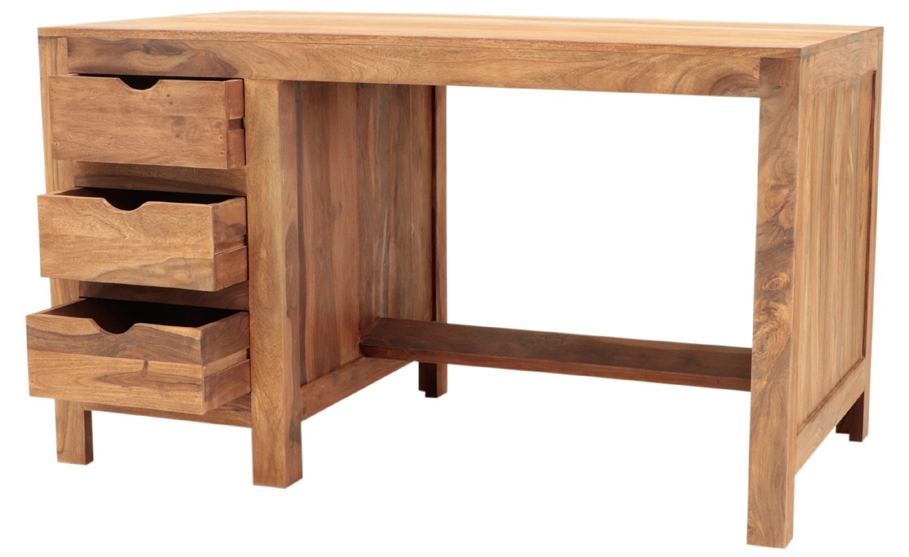 Objevte krásu a eleganci pracovního stolu z masivního dřeva palisandr, který se stane skvělým doplňkem vaší kanceláře nebo pracovny. Tento nádherný stůl, o rozměrech 130 cm na šířku, 70 cm na hloubku a 76 cm na výšku, je vyroben z prémiového indického palisandru, známého pro svou jedinečnou texturu a trvanlivost. Tento pracovní stůl masiv se vyznačuje třemi praktickými zásuvkami, které nabízejí dostatek úložného prostoru pro vaše pracovní potřeby. Díky robustní konstrukci a preciznímu řemeslnému zpracování bude tento kus nábytku sloužit po mnoho let.