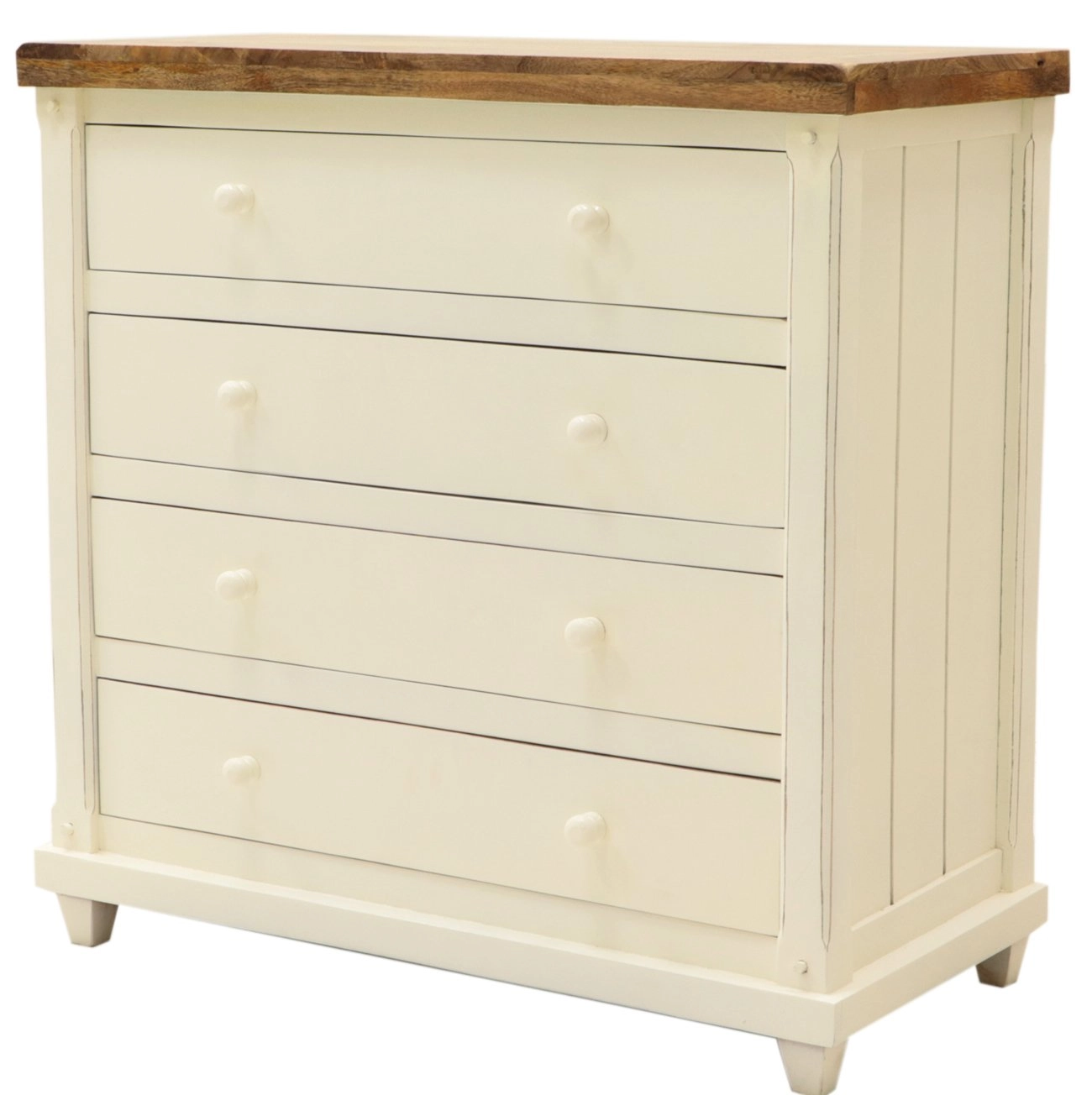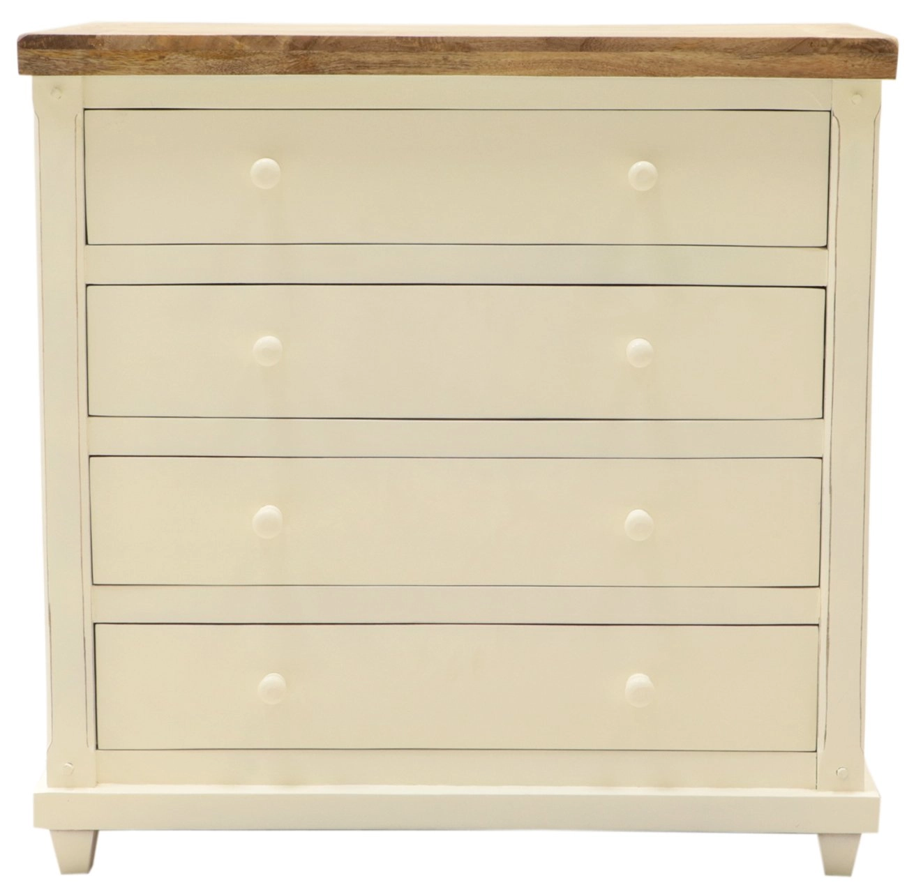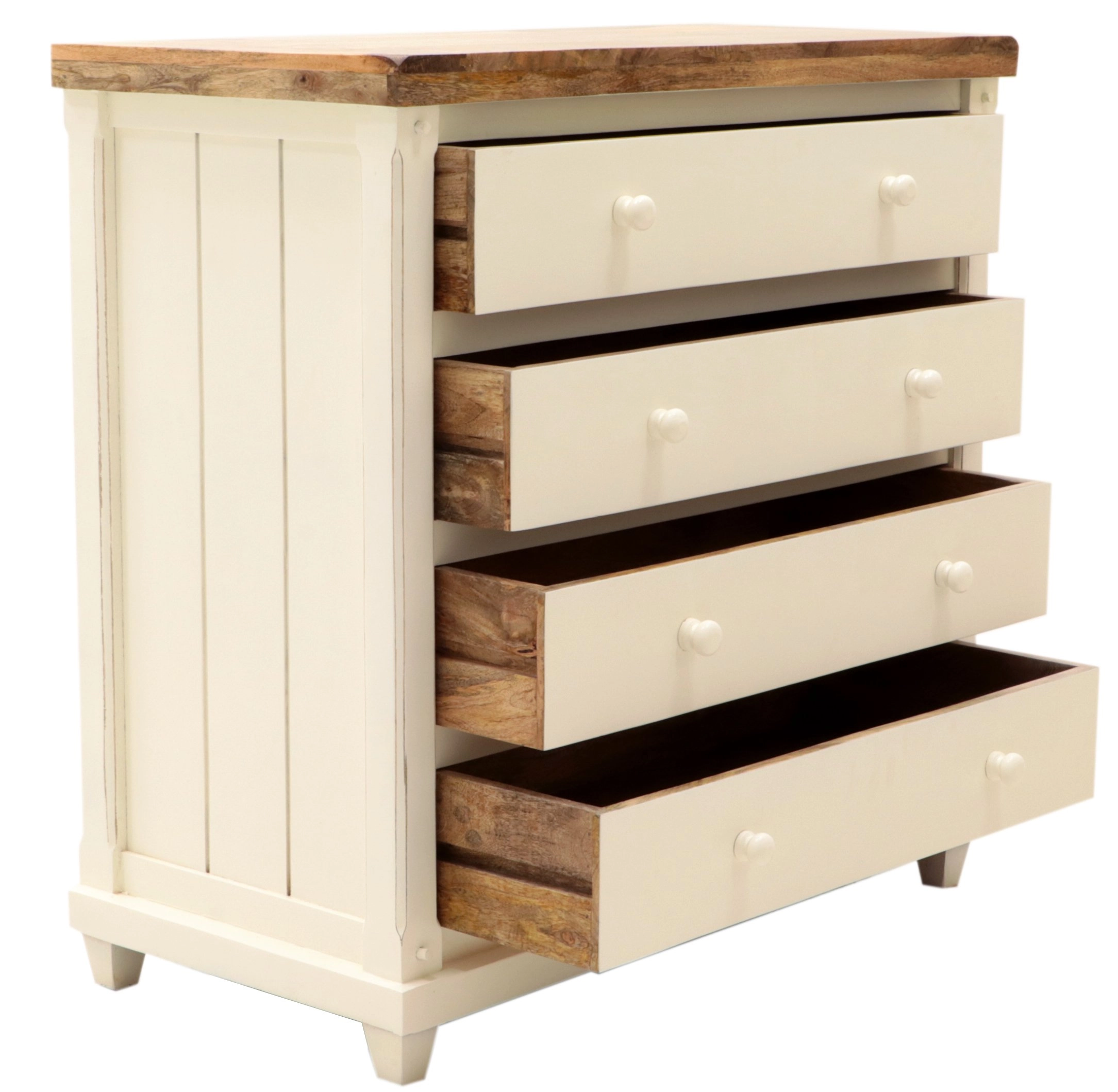 Die Kommode aus massivem Mango-Holz, ursprünglich aus Indien, ist die ideale Aufbewahrungslösung für Ihr Schlafzimmer. Mit vier geräumigen Schubladen bietet sie ausreichend Platz und sorgt dank des massiven Mangoholzmöbels für eine lange Lebensdauer.