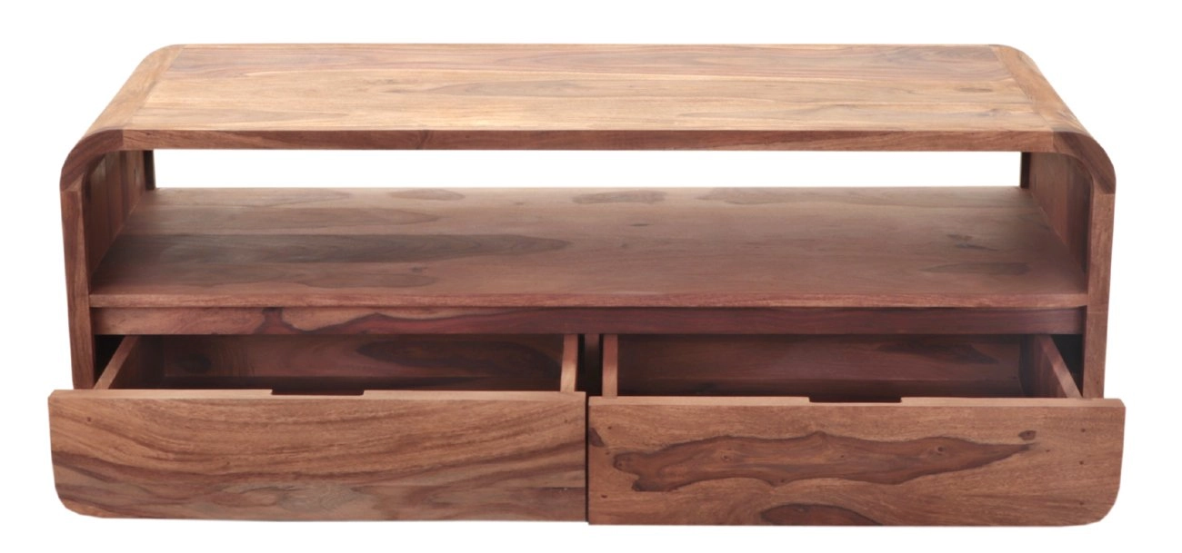 Pevná a robustní konstrukce zajišťuje, že náš Sheesham TV stolek vydrží dlouhá léta. Disponuje praktickým horním úložným prostorem o rozměrech 16x114 cm, kam můžete umístit drobnou elektroniku nebo dekorační prvky. Dvě prostorné zásuvky navíc poskytují spoustu místa pro uskladnění dálkových ovladačů, médií nebo jiných potřebných věcí. Díky svému designu a vysoce kvalitnímu zpracování je tento sheesham nábytek snadným způsobem, jak obohatit svůj domov o pocit exotiky a funkčnosti.