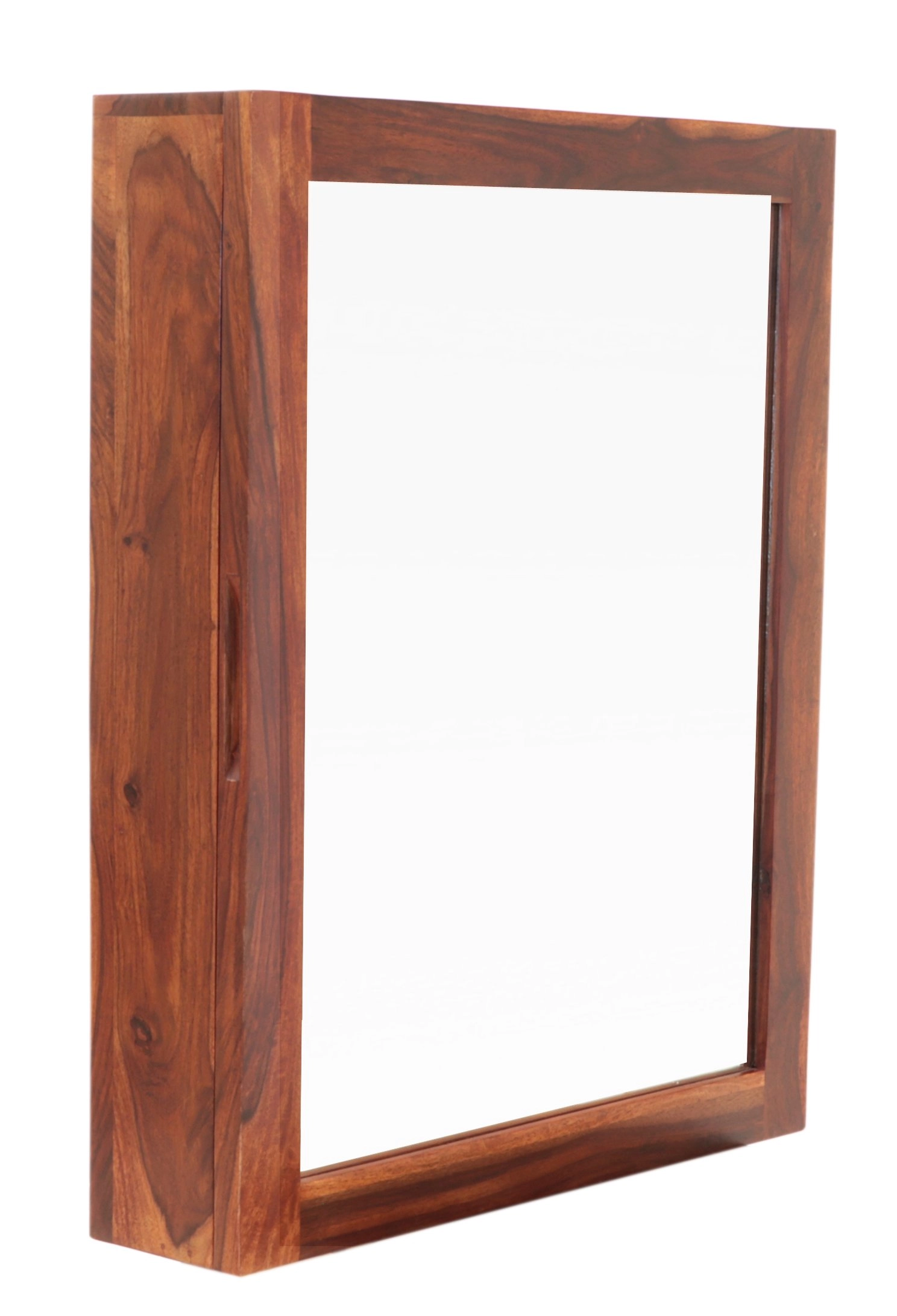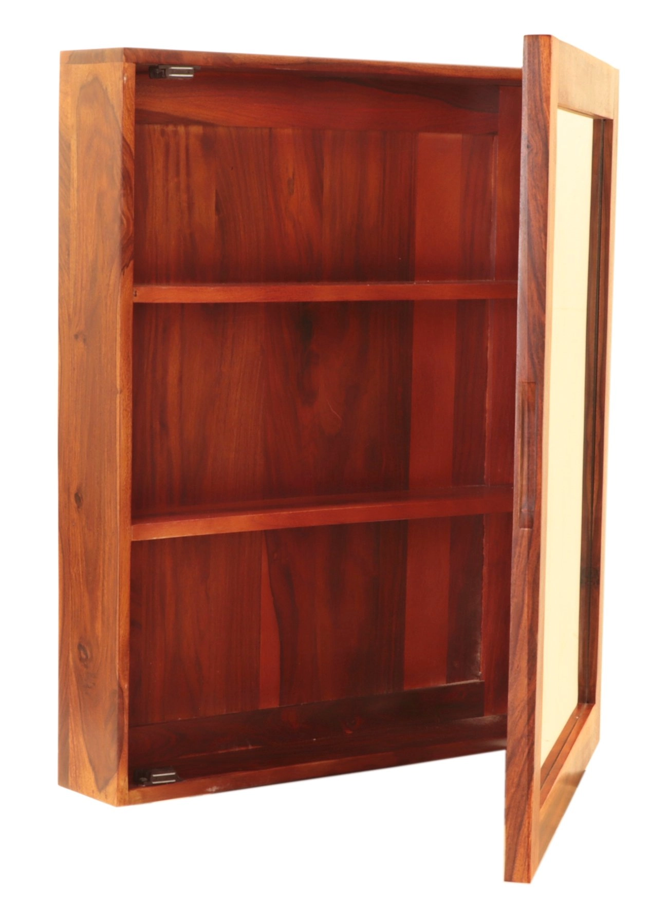 Zrcadlová skřínka do koupelny 65x80x15 z dřeva palisandr je dokonalým spojením elegance, funkčnosti a exotického půvabu. Tento kus nábytku, pečlivě vyrobený z kvalitního indického palisandru, přináší do vaší koupelny či předsíně přírodní šarm a teplo. Ať už hledáte zrcadla do koupelny nebo stylové úložné řešení pro váš domov, tato zrcadlová skřínka vám poskytne obojí.