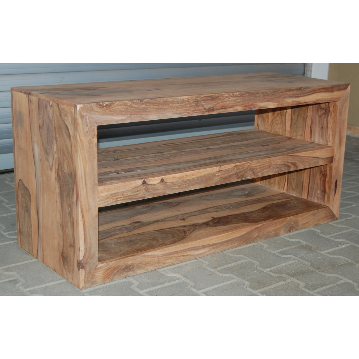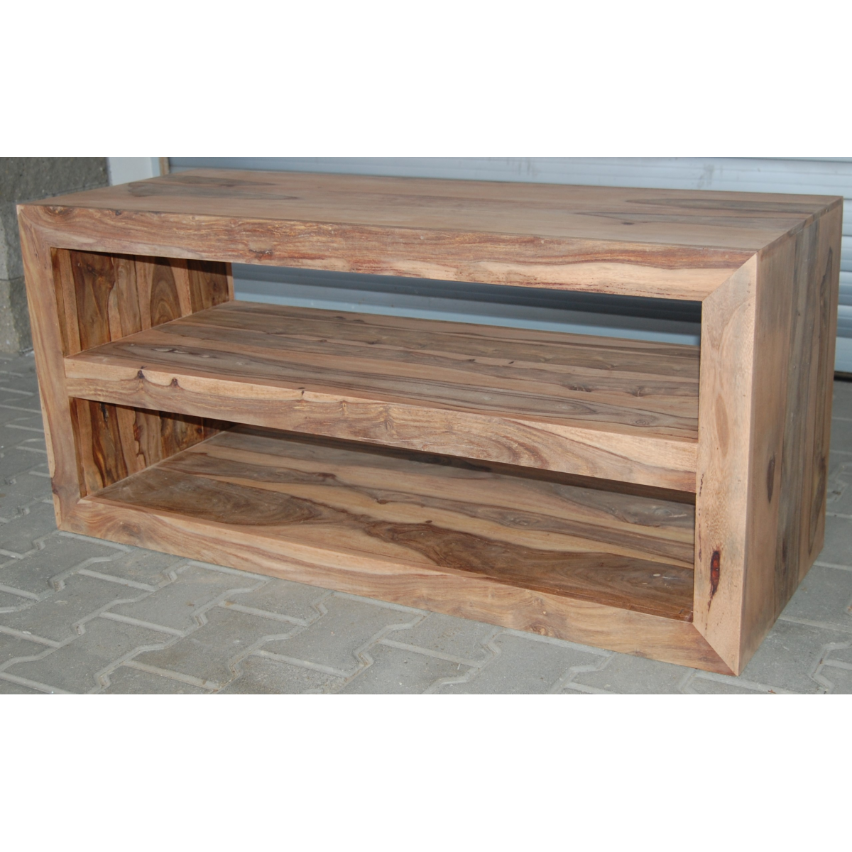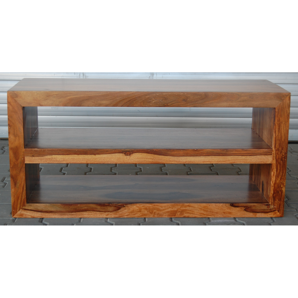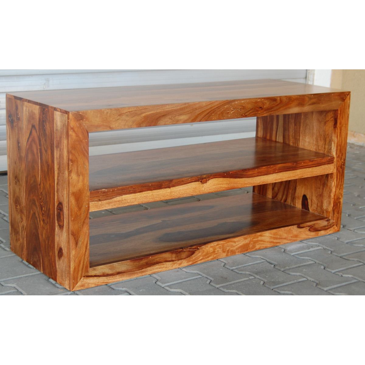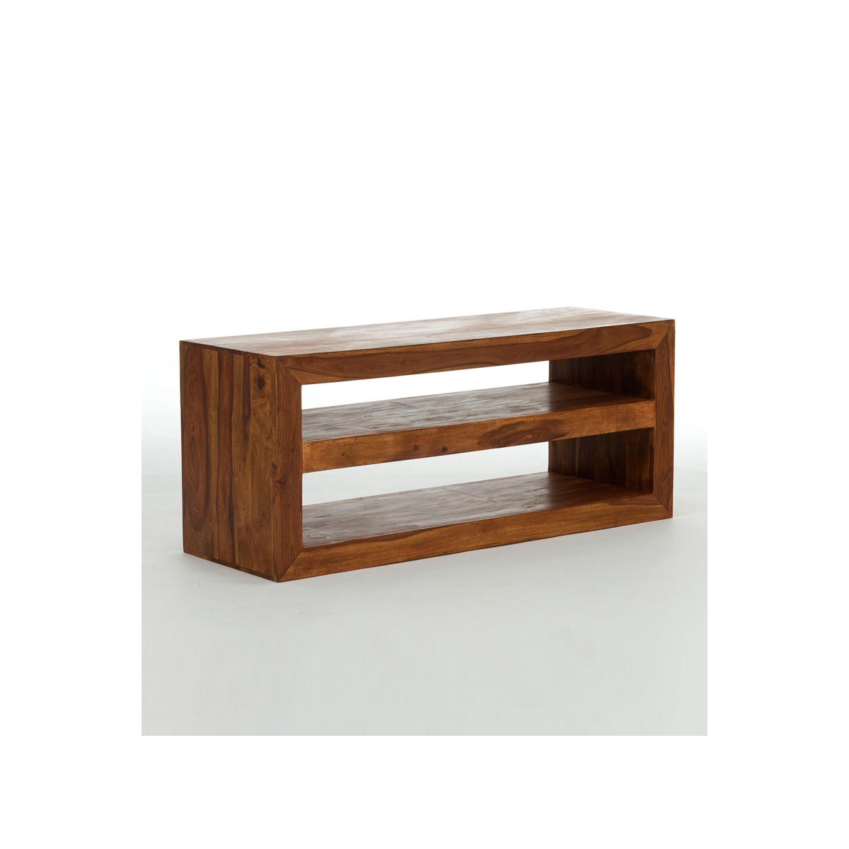 TV stolek ú police masiv s prostory na elektroniku horní 16x105cm (světlá výška 20cm) a dolní horní 20x105cm (světlá výška 25cm) je vyroben z kvalitního masivního palisandrového dřeva. TV stolky které máme skladem dá se prohlédnout osobně nebo objednat na zakázku v kterémkoliv z našich nabízených odstínů! Indický koloniální nábytek palisandr masiv.
