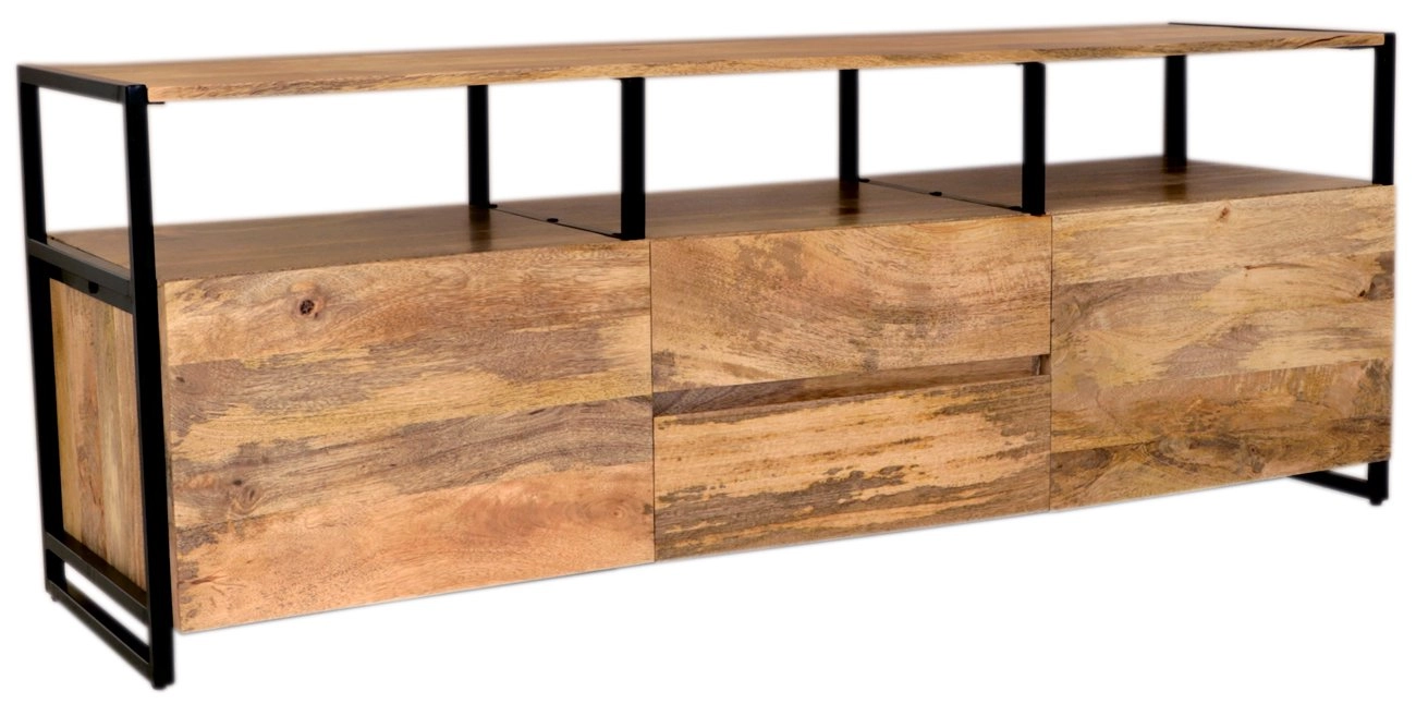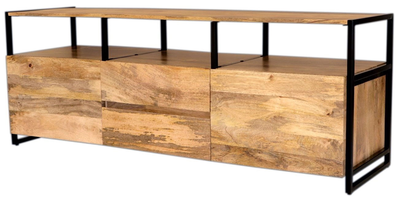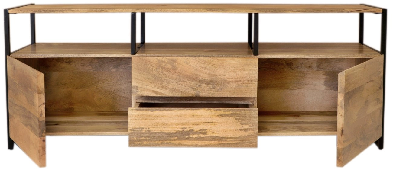 TV stolek masiv kov a dřeva mango o rozměrech 160x60x45 cm je ideálním doplňkem pro váš moderní interiér. S elegantní kombinací mangového dřeva a kovové konstrukce nabízí funkční a stylové úložiště pro vaši domácí zábavu. Původem z Indie, tento masivní nábytek skvěle zapadne do každého obývacího pokoje.