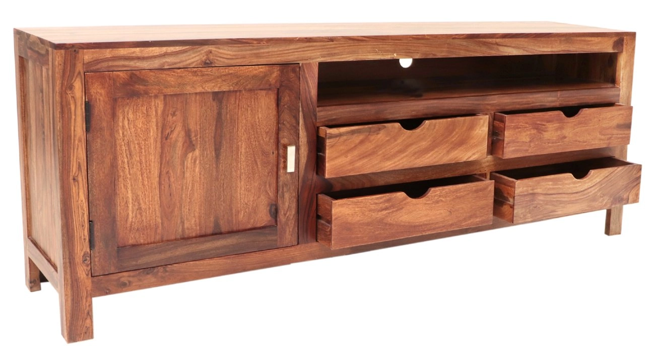Představujeme vám unikátní TV stolek masiv z dřeva palisandr, rozměrů 180x70x45 cm, který je součástí našeho exkluzivního sortimentu Kolekce AMBA. Tento masivní nábytek pochází z Indie, což dodává produktu exotický a autentický nádech. Palisandr, známý pro svou odolnost a překrásnou texturu, zajišťuje dlouhou životnost a eleganci, která zaujme na první pohled.
